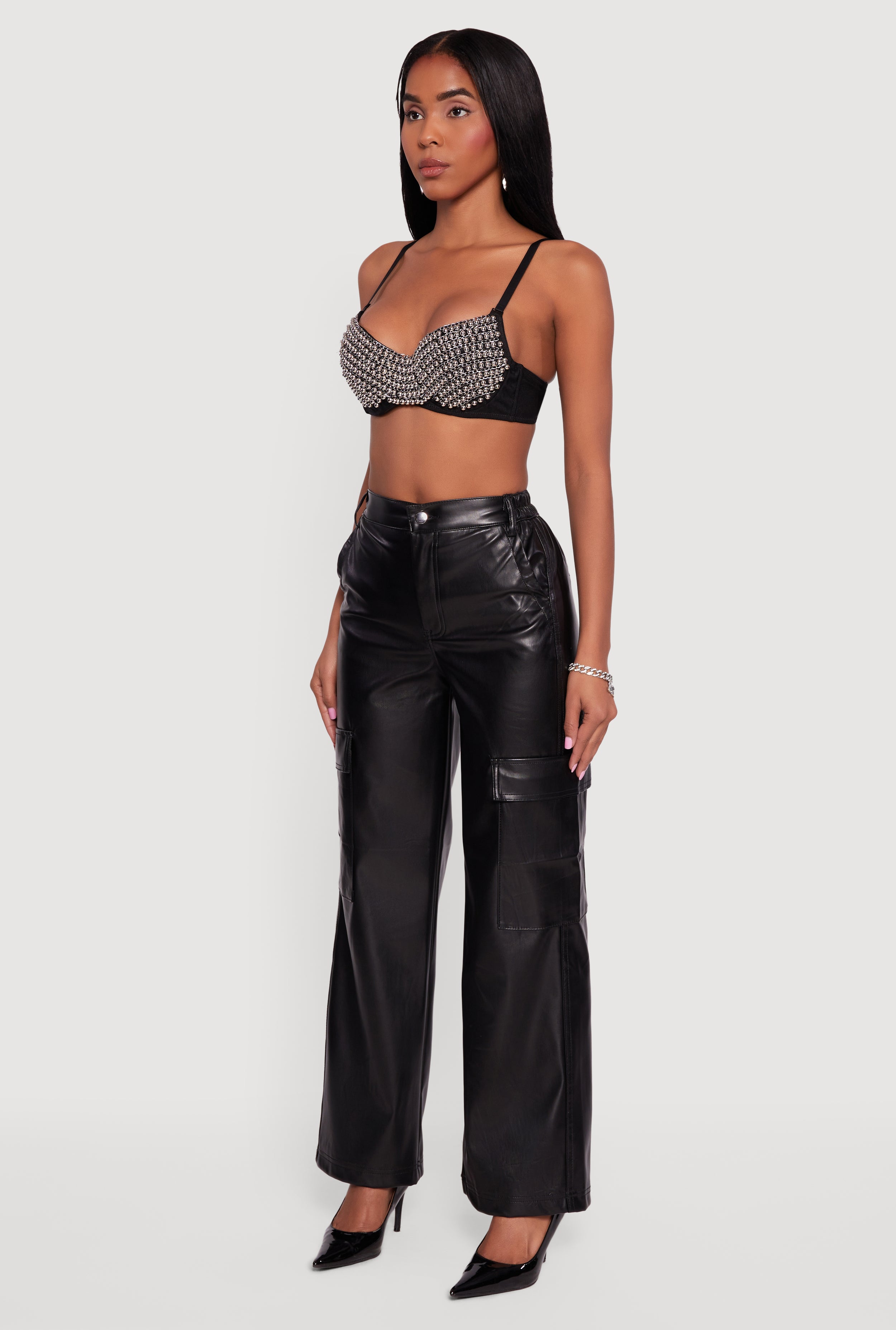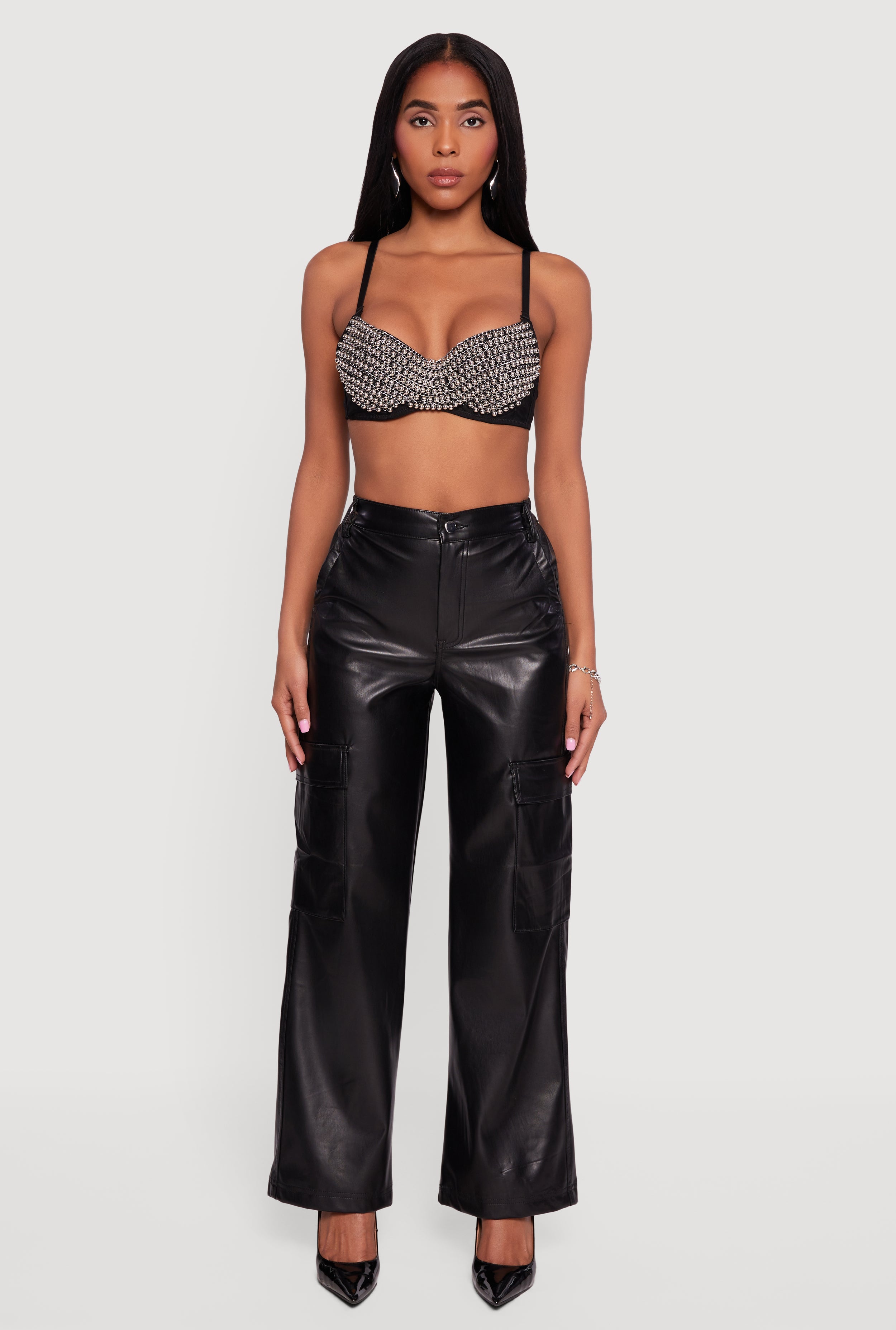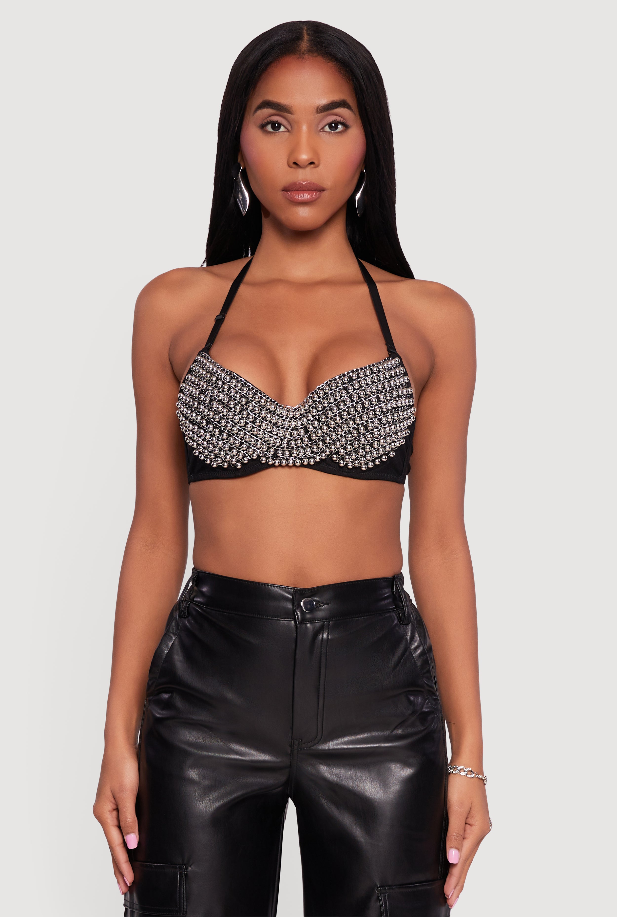 Turn heads and own the night with this Metallic Beaded Bustier Crop Top. Designed to hug your curves and sparkle under the lights, it features padded cups and underwire support for a flattering shape and confidence boost. The sweetheart neckline and spaghetti straps add a flirty vibe, while the open back keeps things daring and cool. Perfect for festivals, parties, or any night out where you want to shine.