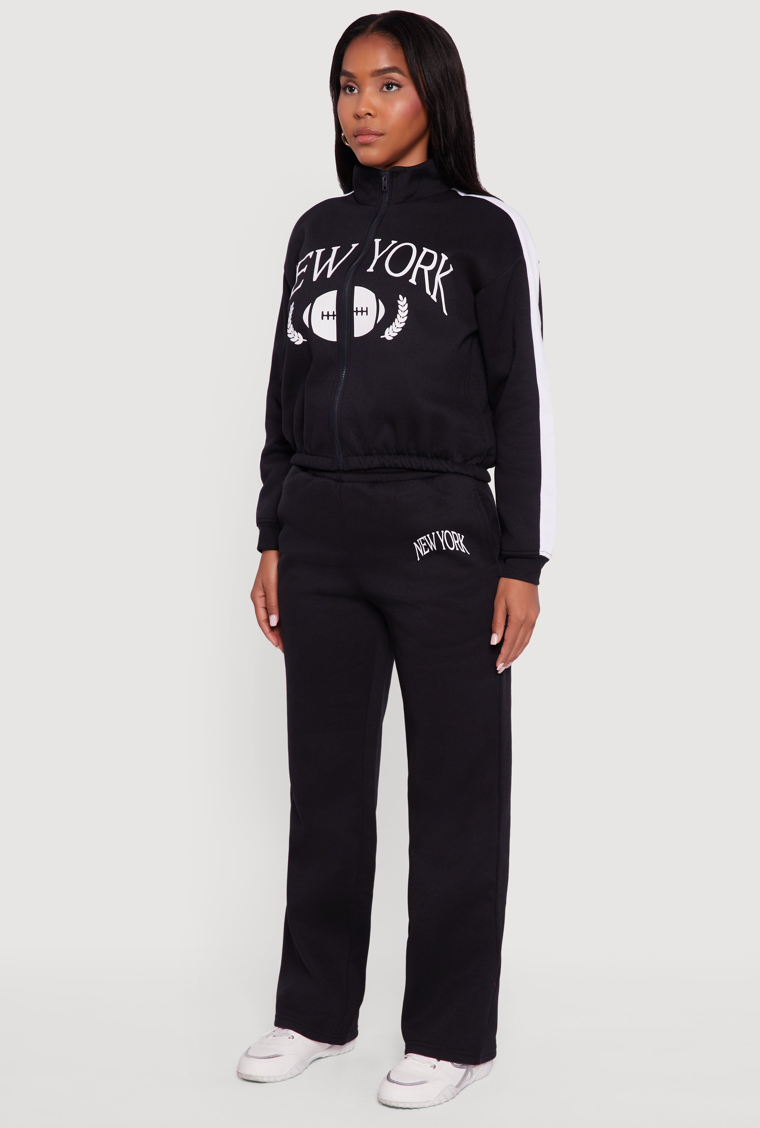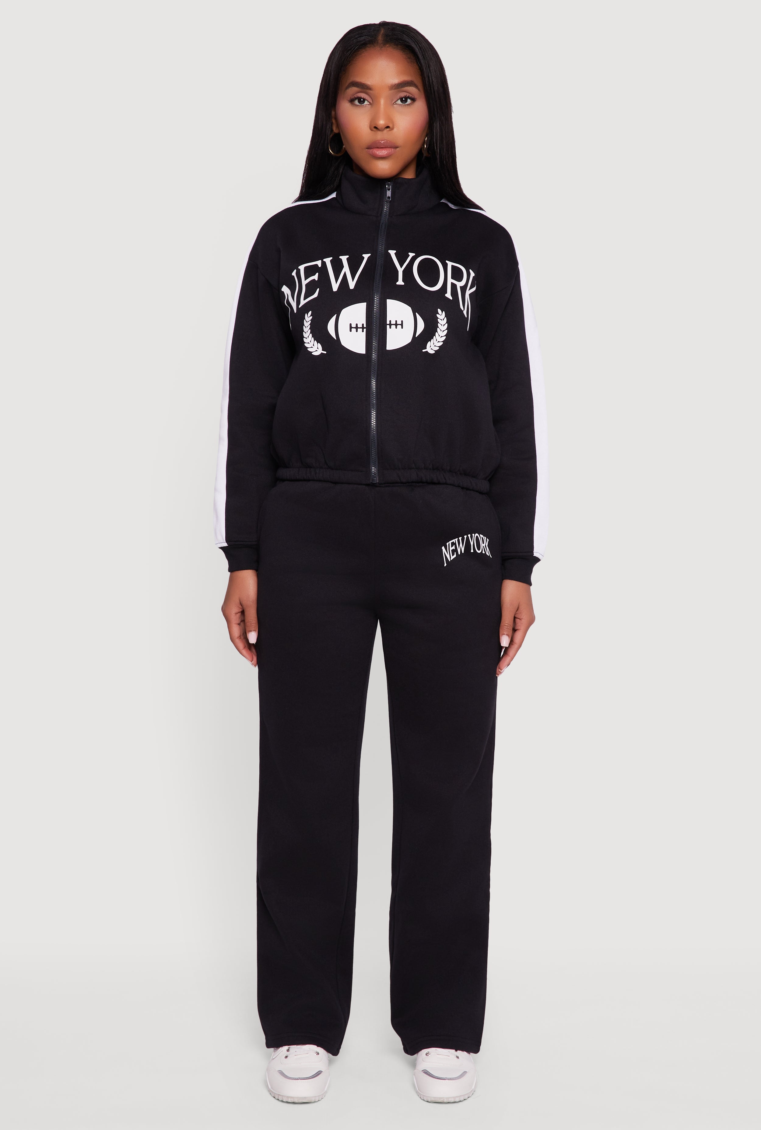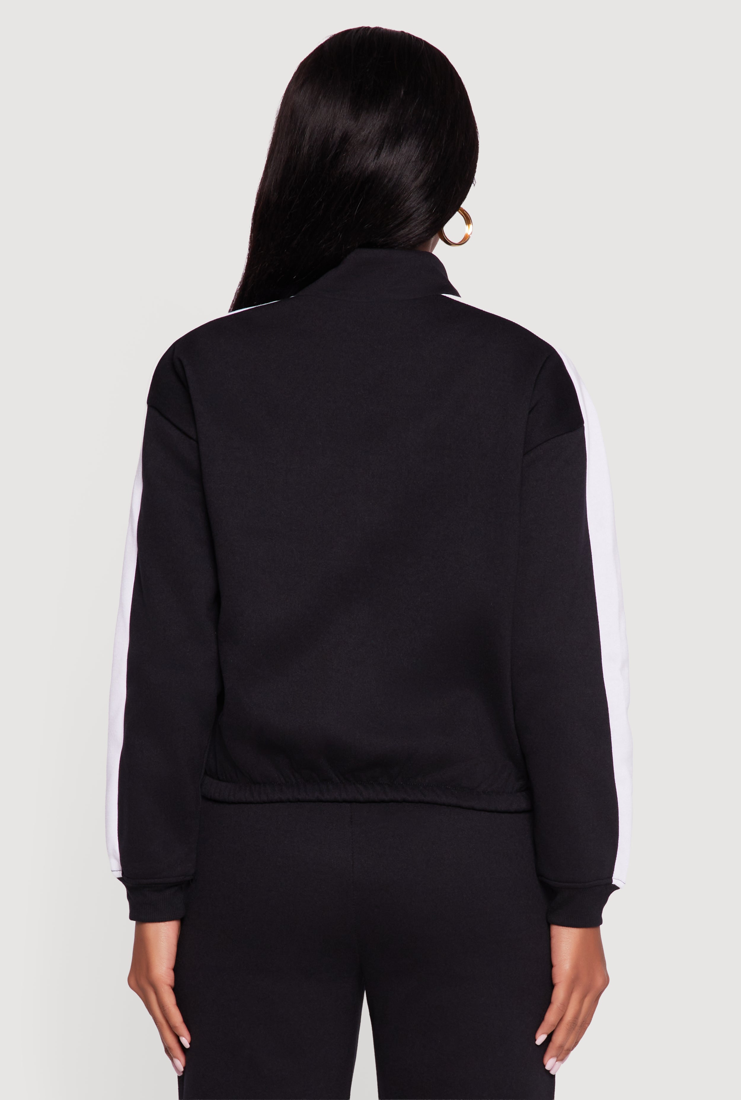 Stay cozy and cool in the Side Stripe Zip Front Graphic Sweatshirt, where classic vibes meet street-ready style. Featuring a sleek zip front and eye-catching side stripes, this fleece sweatshirt is your new go-to for casual days and athleisure looks. The mock neck and balloon sleeves add a trendy twist while keeping you comfy all day long. Whether you're running errands or chilling with friends, this sweatshirt has your back with effortless style and a timeless fit.
