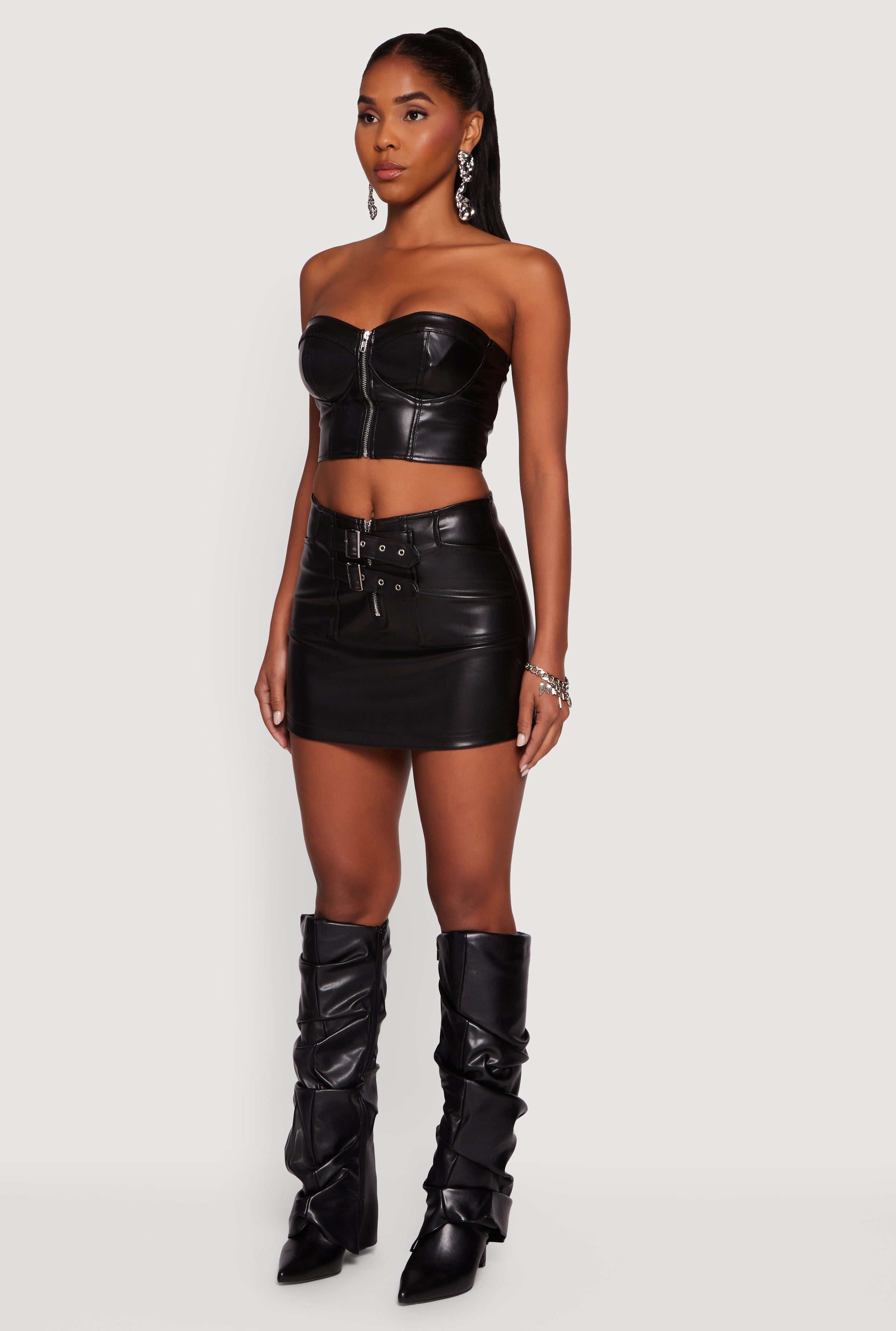 Turn heads and own the night with this Strapless Faux Leather Cropped Bustier Corset Top. Designed for those who love to mix edgy vibes with timeless style, this classic fit bustier hugs your silhouette perfectly while keeping things cool and confident. The smooth faux leather finish adds a bold touch, and the open back with zipper closure brings just the right amount of sass. Whether you're dressing up for a night out or adding a statement piece to your casual look, this crop top is your new go-to for effortless attitude and style.