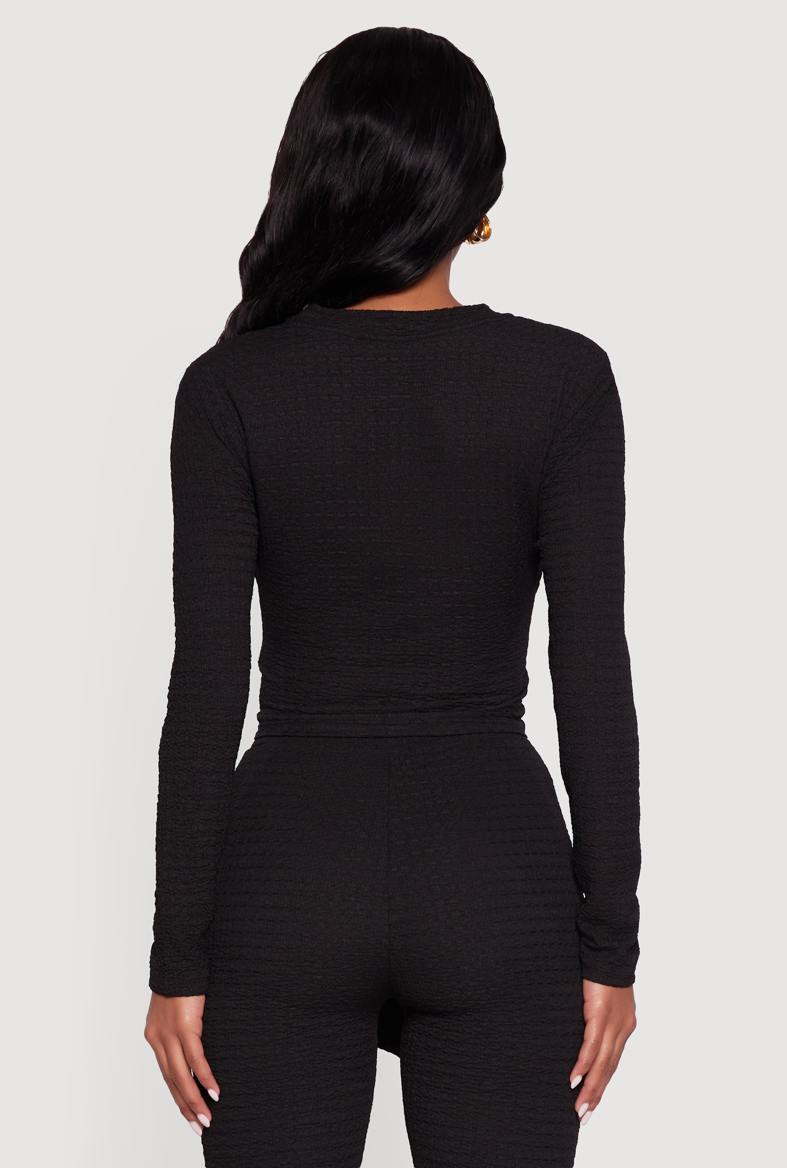 - Soft textured knit fabric for comfort and style