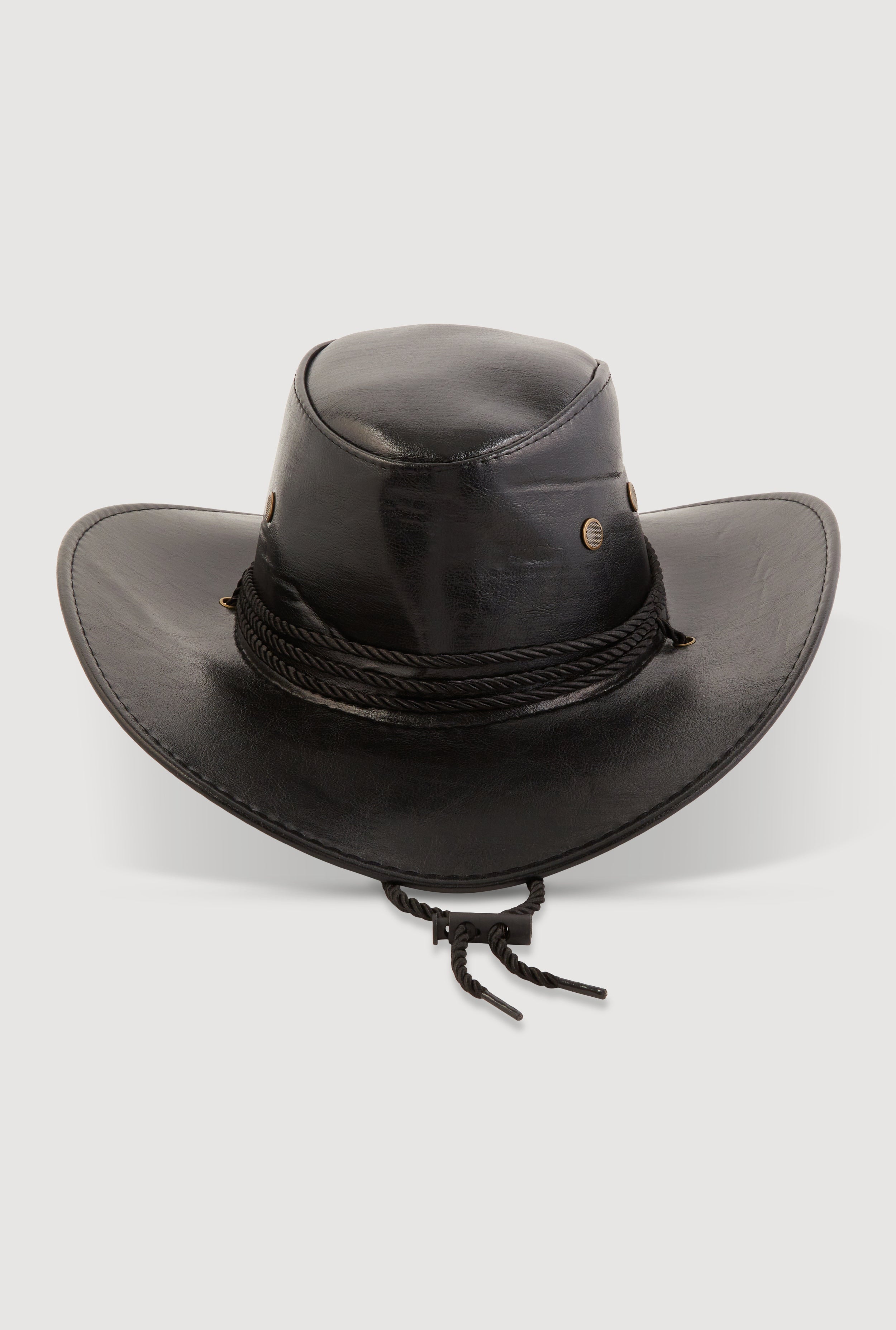 Toggle Drawstring Faux Leather Hat