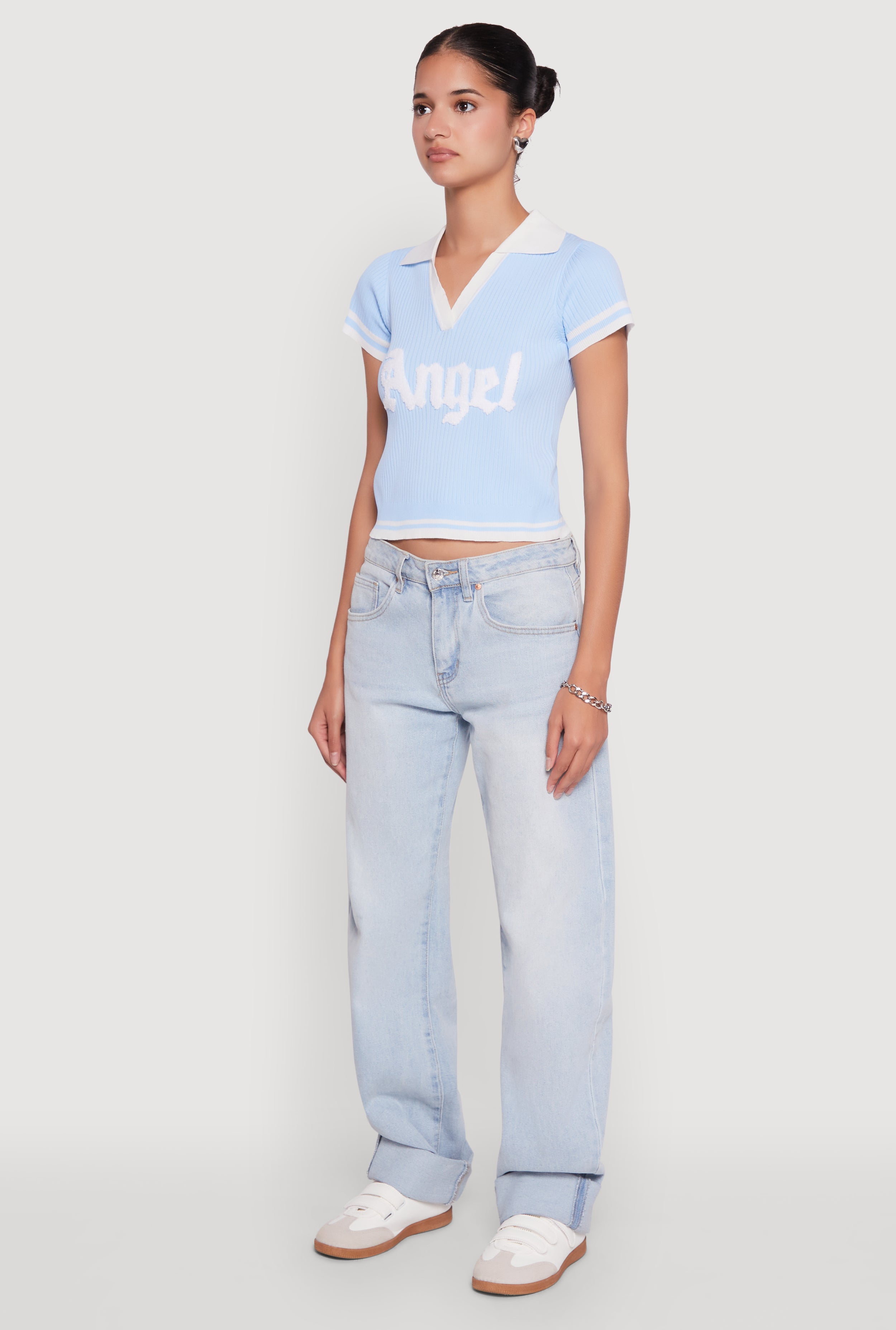 Looking for a stylish yet effortless way to elevate your casual wardrobe? The Angel Graphic Varsity Stripe Polo Shirt is your new go-to piece. With its classic fit and timeless silhouette, this polo combines sporty vibes with a touch of cute charm. Featuring a playful angel graphic and varsity stripe details, it’s perfect for adding a pop of personality to any outfit. Whether you're hanging out with friends or running errands, this cropped hem polo keeps you looking fresh and feeling comfy all day long.