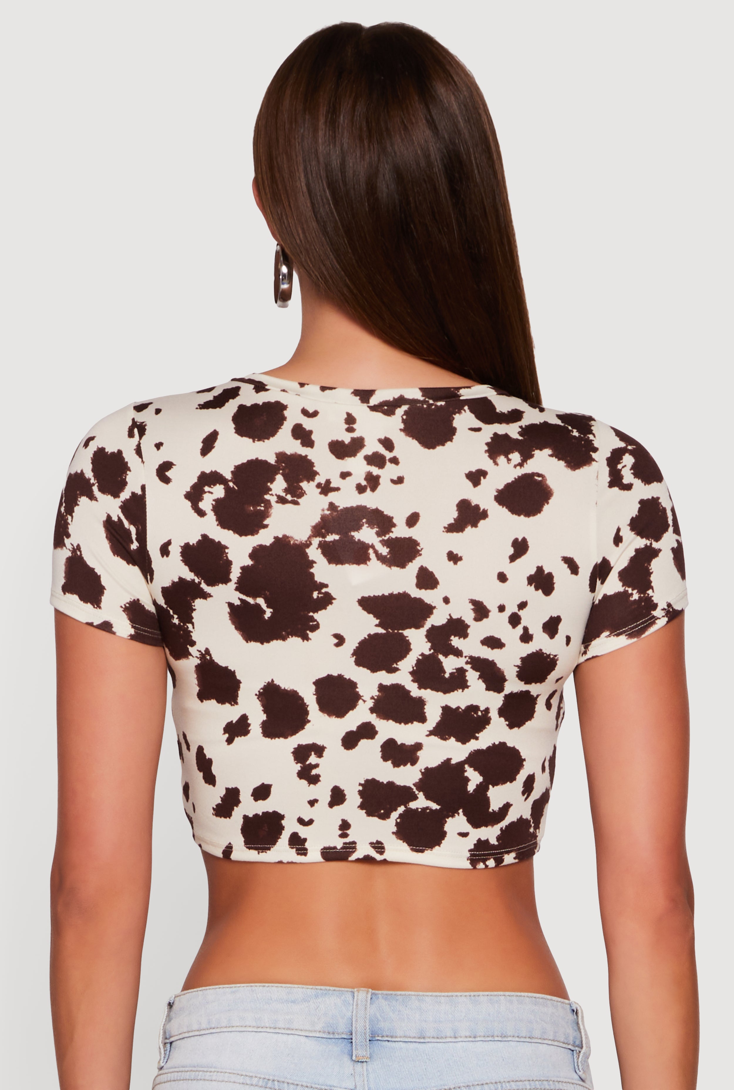 Step up your casual look with this Cow Print Short Sleeve Crop Top that’s as fun as it is flattering. Featuring a classic crew neck and a timeless silhouette, this crop top brings playful animal print vibes to your everyday style. Perfect for pairing with high-waisted jeans or skirts, it’s your new go-to for effortless cool and easy comfort. Whether you’re hanging out with friends or running errands, this top keeps your look fresh and on trend without breaking the bank.