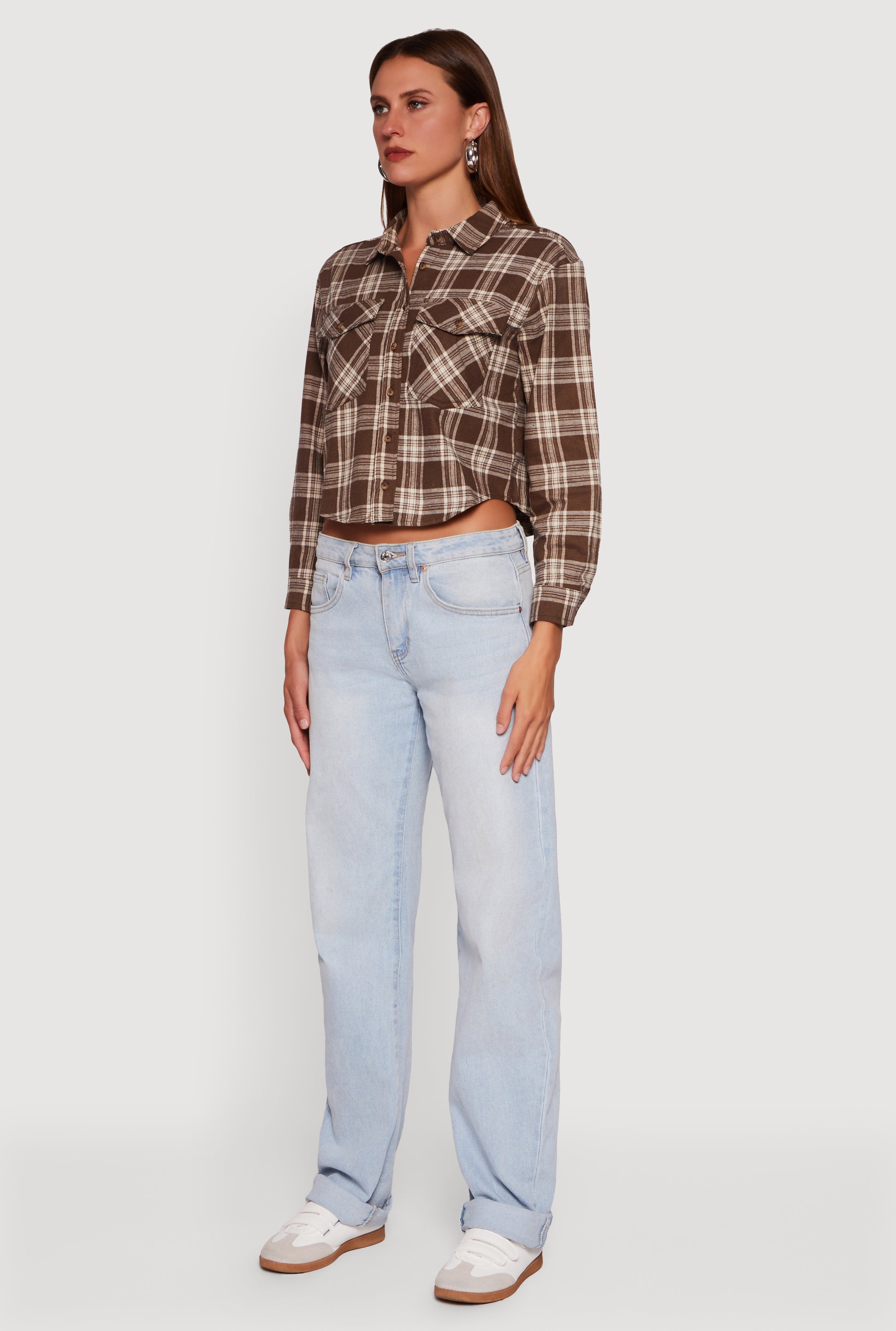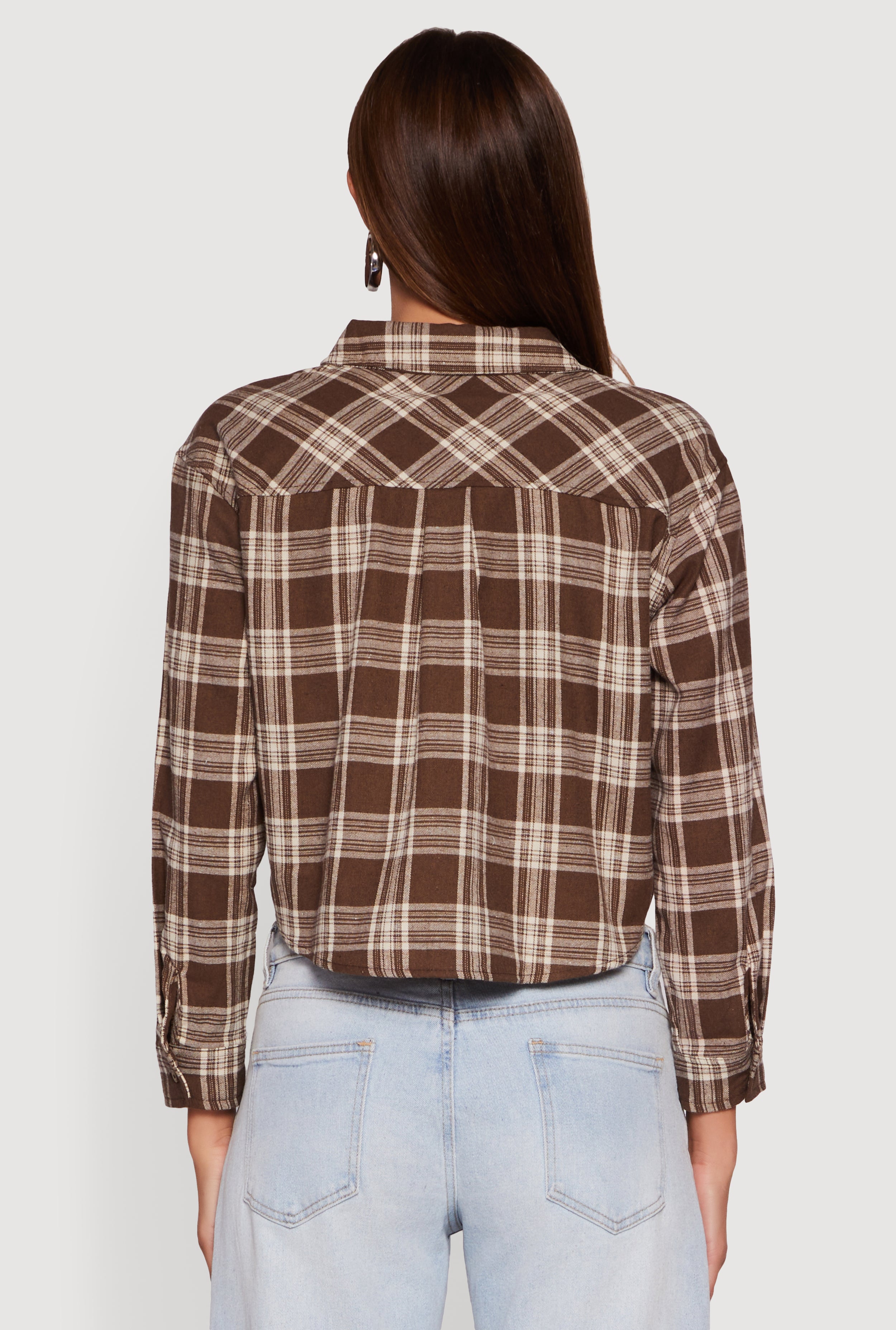 Step up your casual game with this Plaid Flap Pocket Cropped Button Front Shirt. Featuring a classic fit and timeless silhouette, it blends laid-back vibes with a touch of edgy style. The crisp shirt collar and long sleeves make it perfect for layering or wearing solo on those cool days. Flap pockets add a fun, functional detail that keeps your essentials close while boosting your outfit’s street-chic factor. Whether you’re pairing it with high-waisted jeans or your favorite skirt, this cropped plaid shirt is your new go-to for effortless cool.