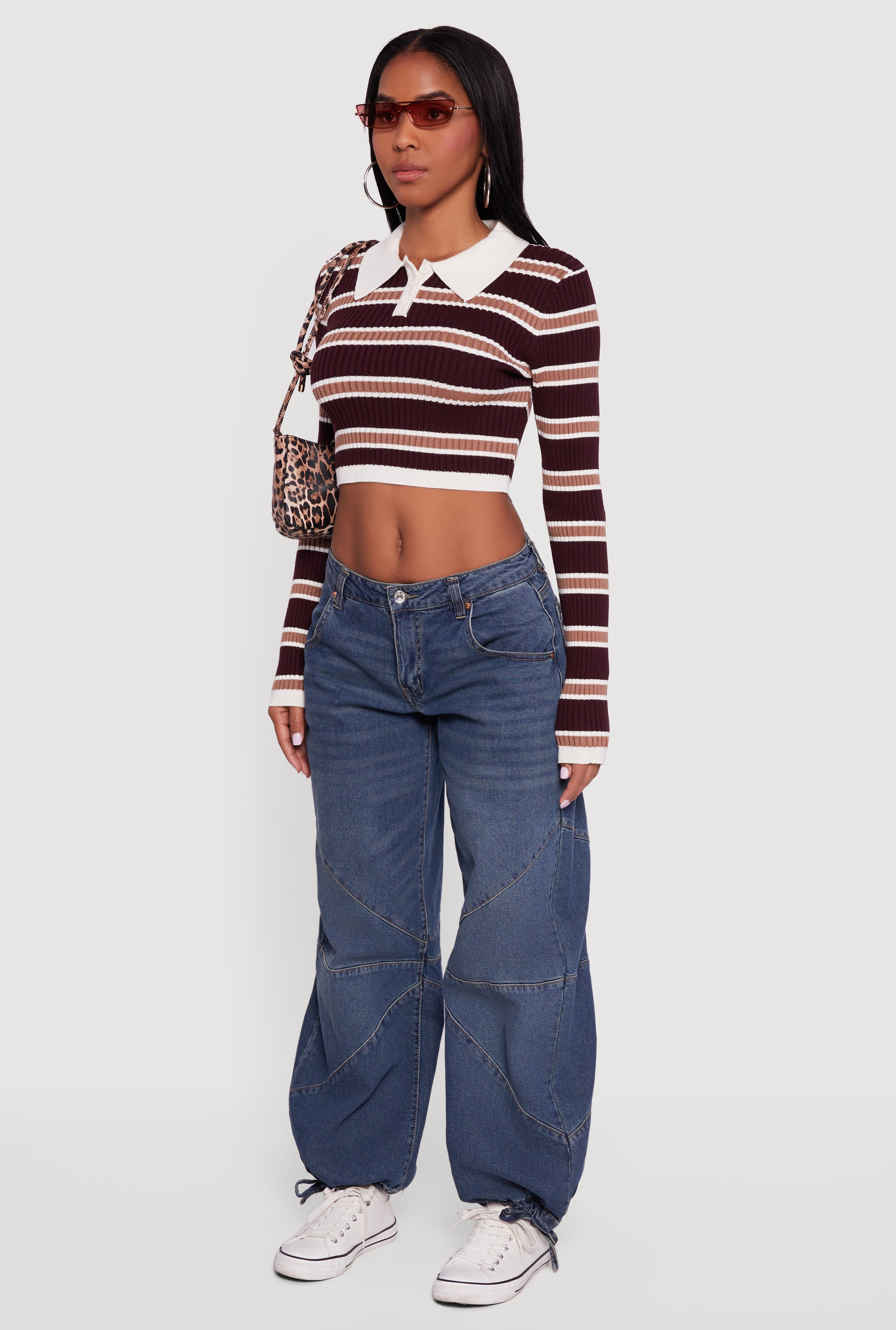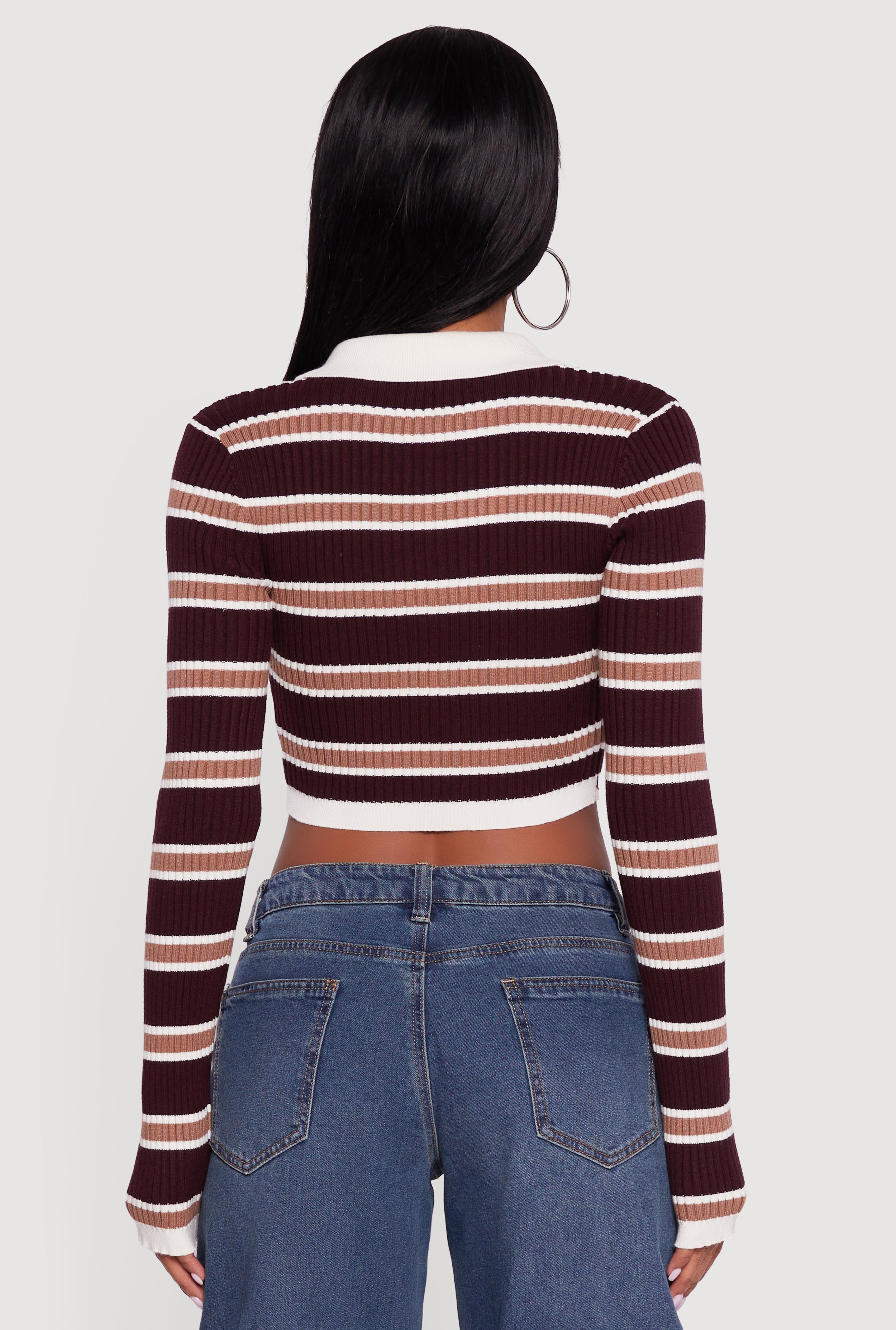Step up your style game with this Striped Ribbed Knit Cropped Polo Sweater. Perfect for casual days or a night out, this classic fit sweater features a timeless polo collar and long sleeves that bring a fresh twist to your everyday wardrobe. The ribbed knit fabric adds texture and comfort, while the cropped length keeps your look trendy and fun. Whether you’re headed back to school or meeting friends, this sweater is your go-to piece for effortless cool vibes.