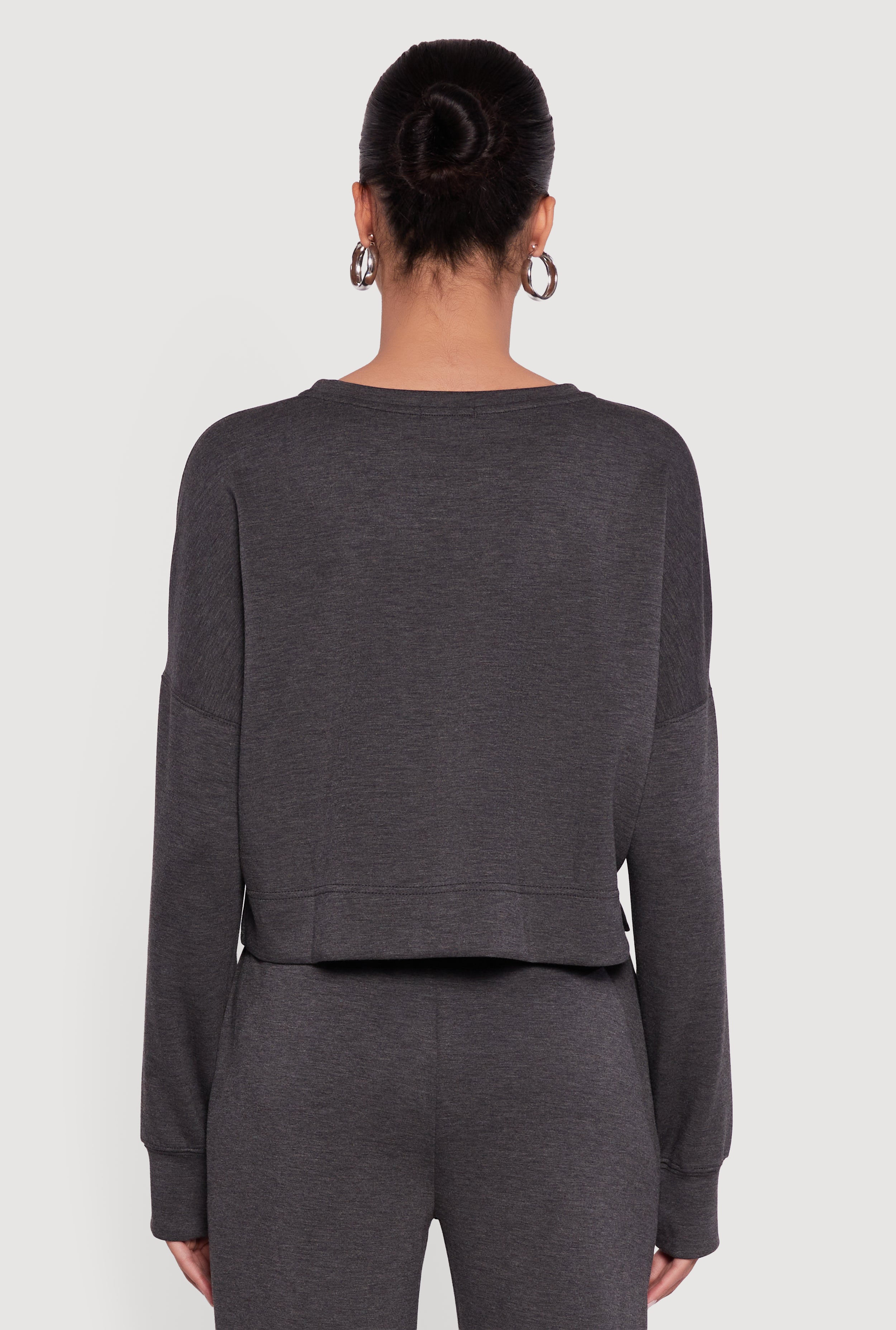 Step up your casual game with this Crew Neck Pullover Crop Top featuring thumb holes for that extra cozy vibe. Designed with a relaxed fit and drop shoulders, it brings effortless athleisure style to your everyday look. Side slits add a subtle edge while keeping comfort front and center. Perfect for lounging or running errands, this crop top is your new go-to for laid-back cool.