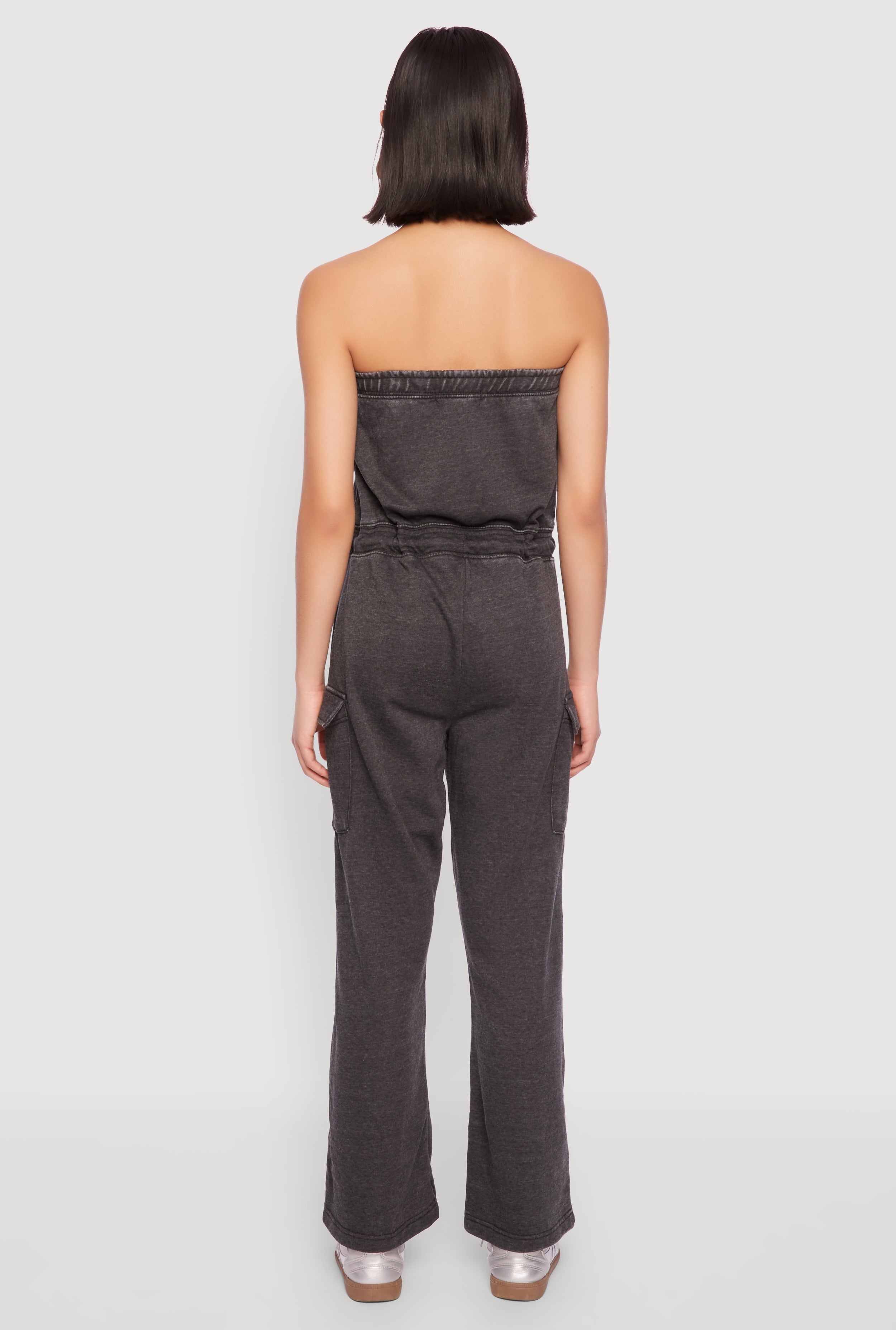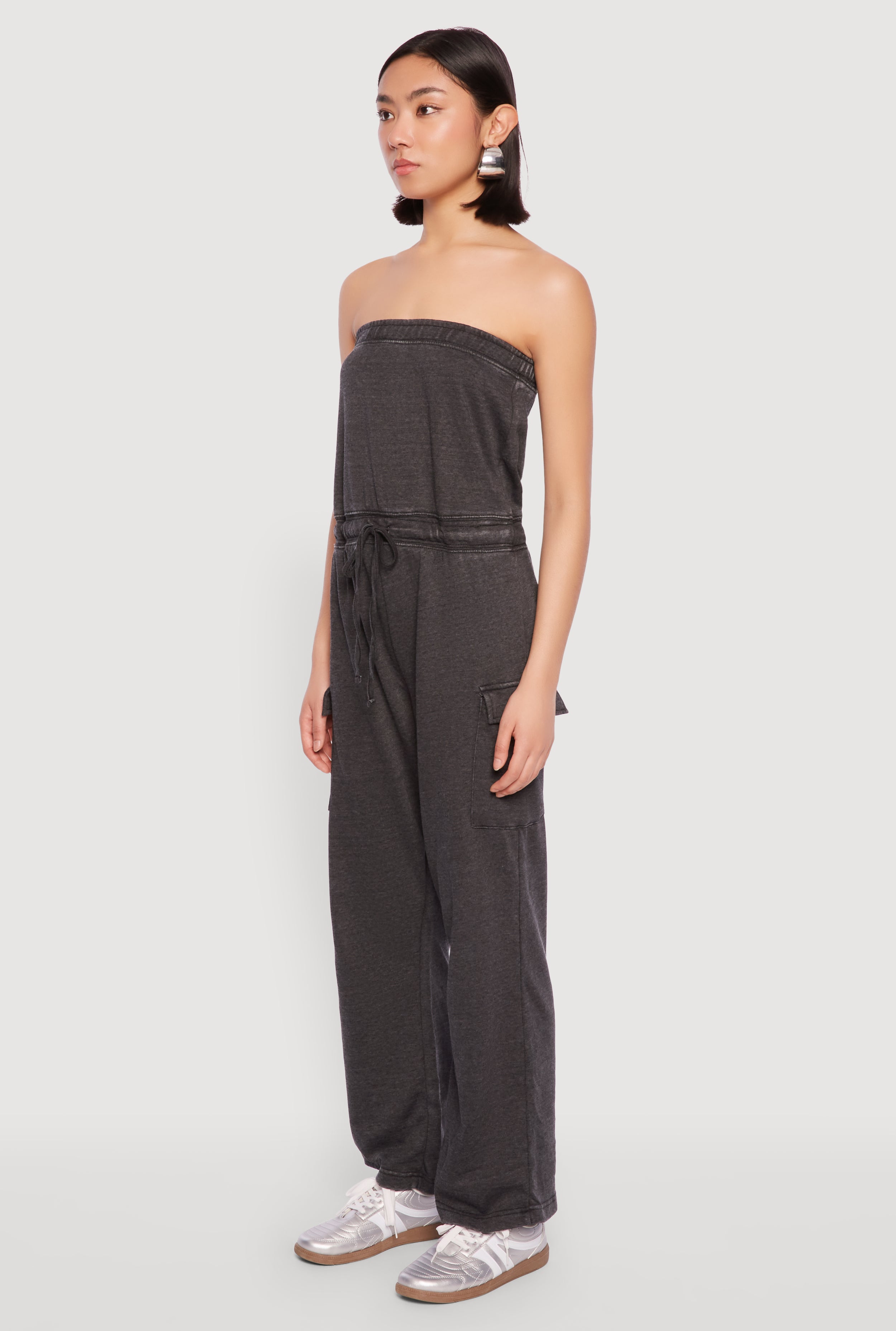 Discover effortless style with our Mineral Wash Cargo Pocket Tube Jumpsuit. Perfect for those sunny days or casual outings, this jumpsuit combines comfort and trendiness in one sleek package. The strapless design and sleeveless cut keep you cool and looking fresh, while the drawstring waist lets you customize the fit for all-day comfort. Featuring practical cargo pockets and a straight-leg silhouette, this piece is your new go-to for a laid-back yet chic vibe.