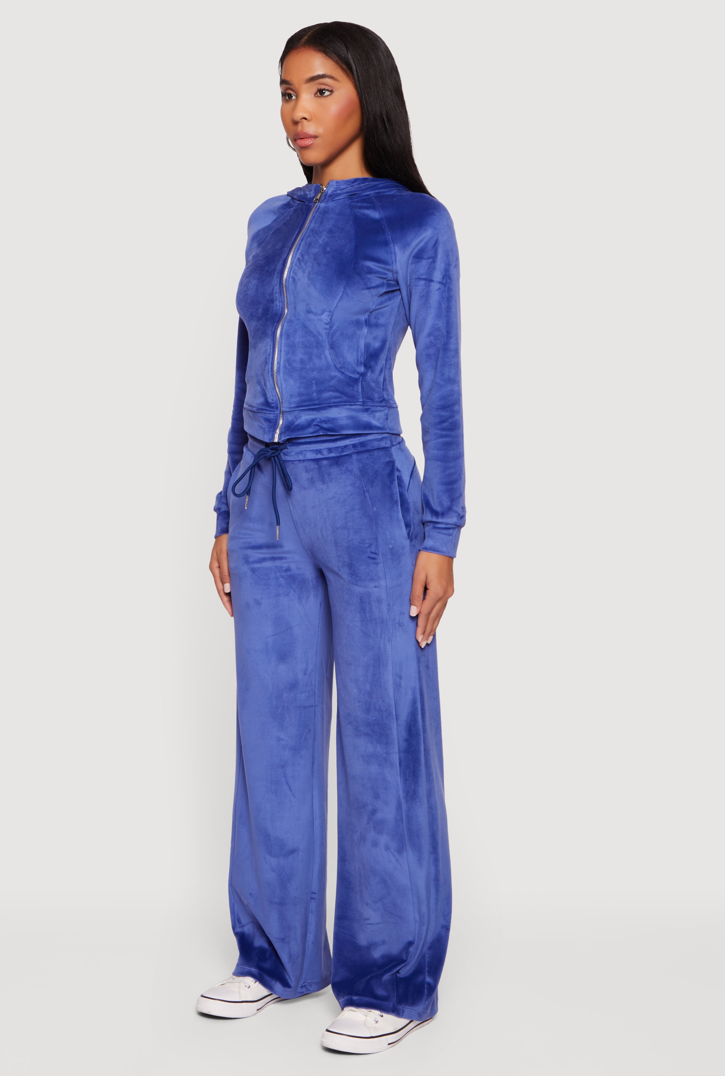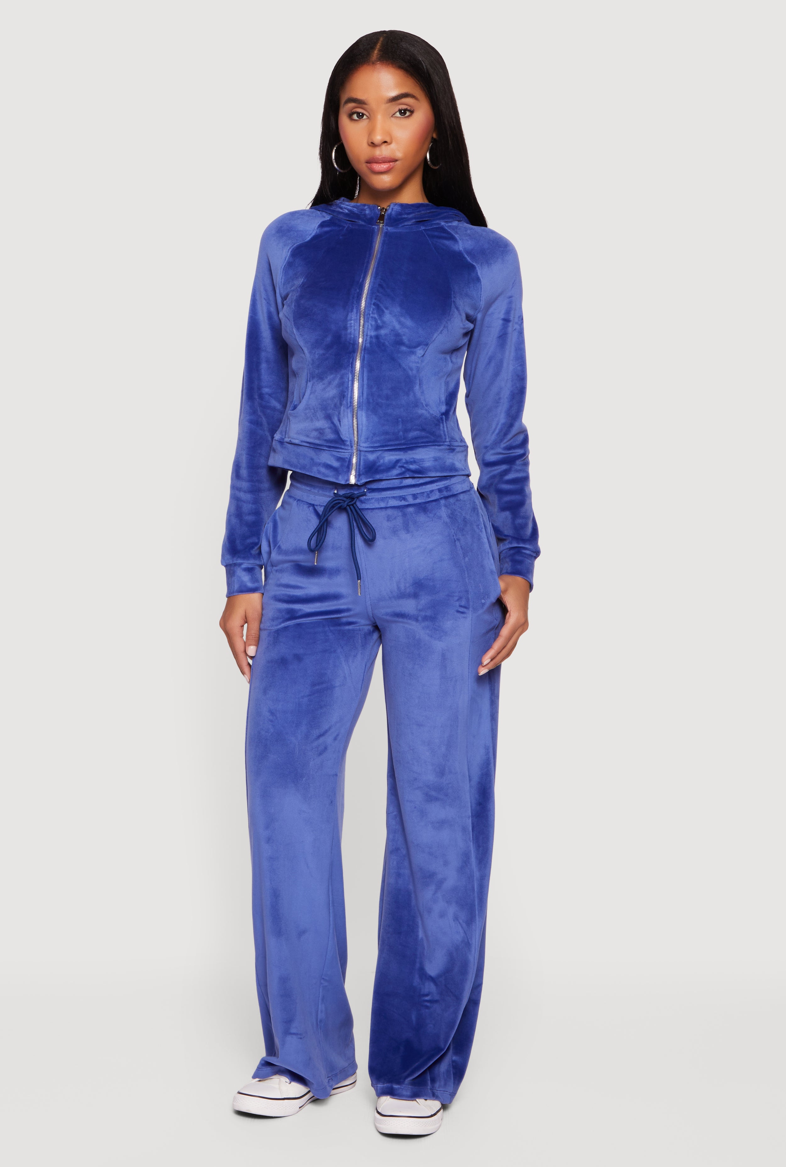 Slip into cozy vibes with the Velour Long Sleeve Solid Zip Front Hoodie by Iris. This classic fit hoodie blends soft velour fabric with a sleek zip front and hooded neckline, making it your go-to for casual days or athleisure looks. Whether you are chilling at home or stepping out for a laid-back hangout, this hoodie keeps you comfortable and effortlessly stylish.