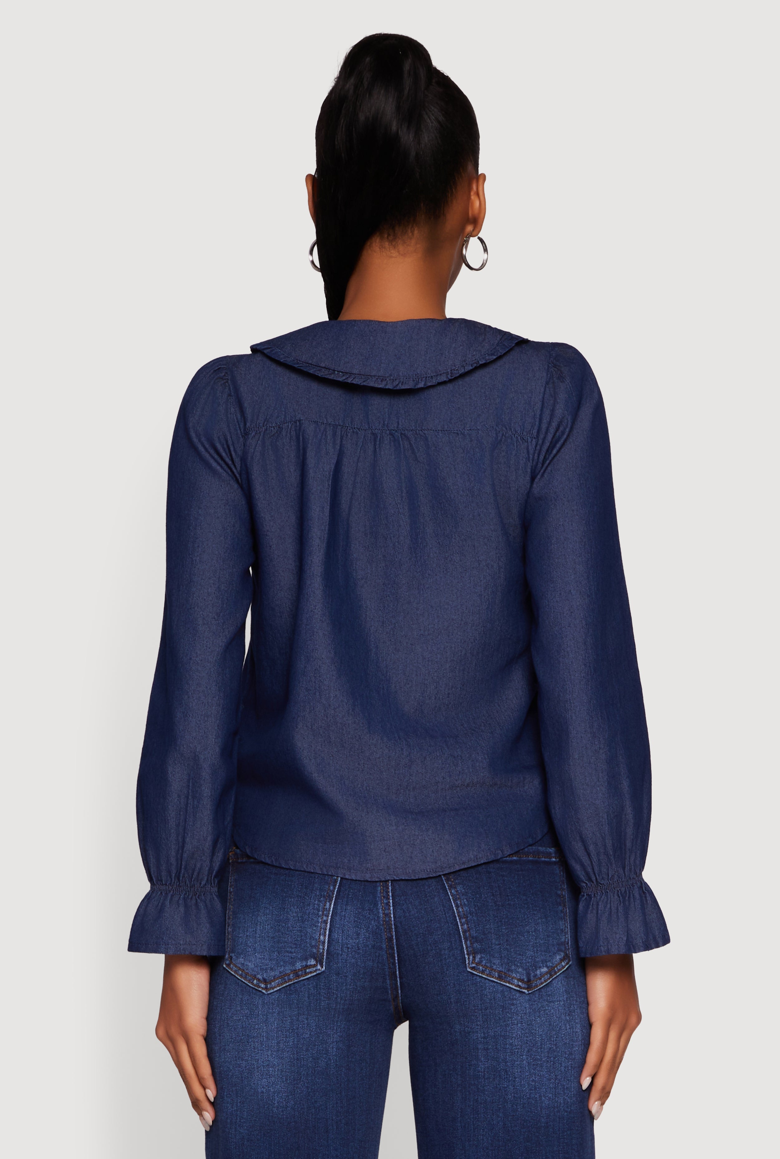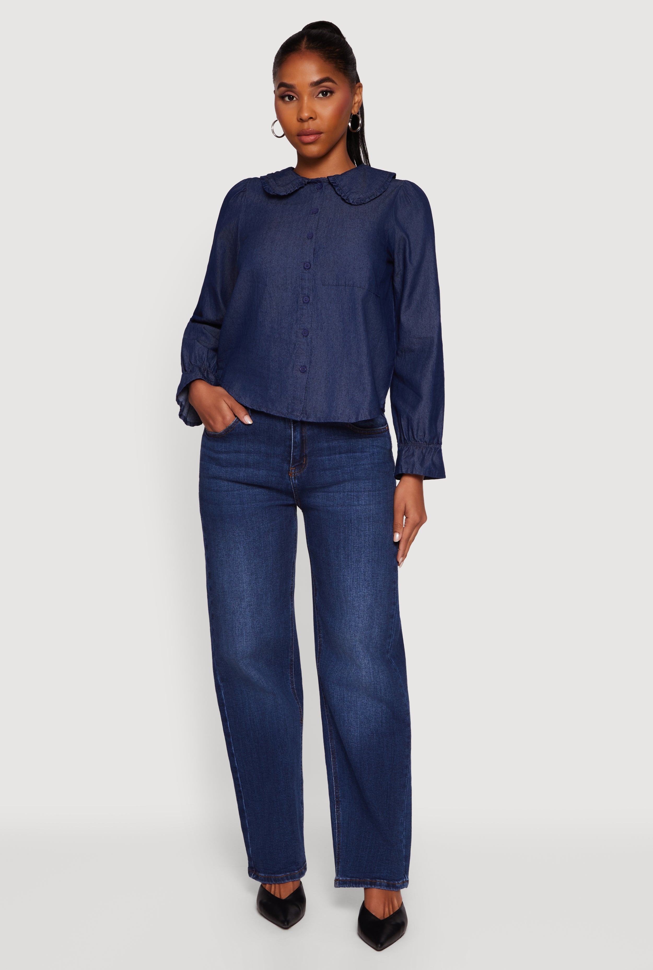 Step up your casual game with this Chambray Button Front Peter Pan Collar Shirt. Featuring a timeless classic fit and charming puff sleeves, it’s the perfect mix of sweet and stylish. The soft chambray fabric and delicate Peter Pan collar add a playful touch that’s ideal for everyday adventures or relaxed hangouts. Easy to pair and even easier to love, this shirt is a must-have for your laid-back wardrobe staples.