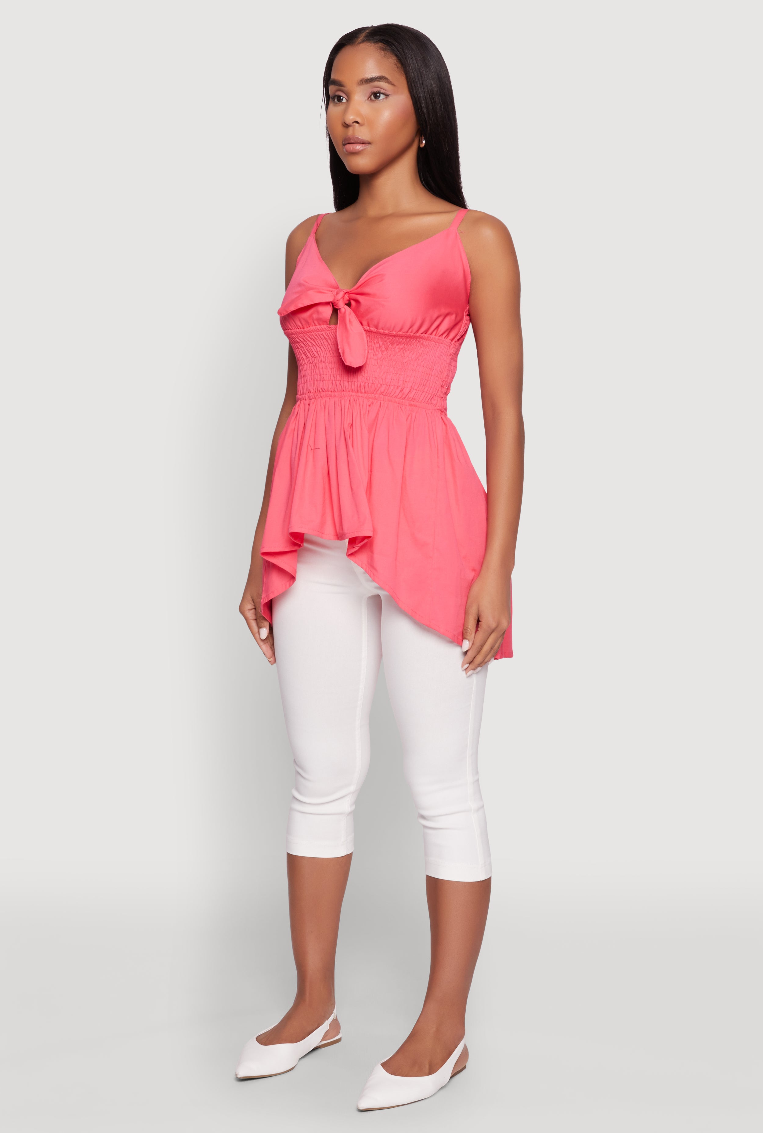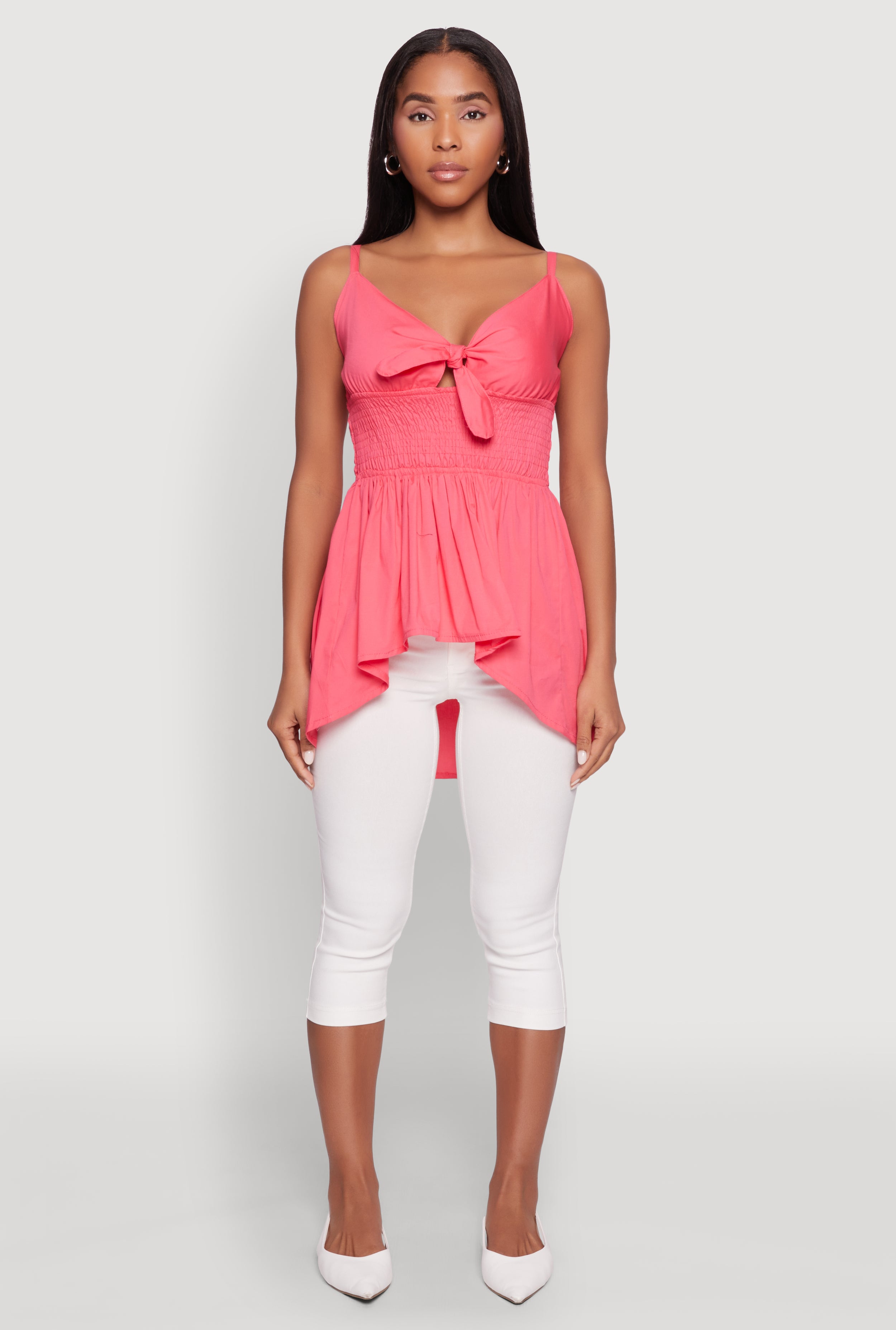 Upgrade your wardrobe with the Tie Front High Low Peplum Cami, a must-have for effortless style and comfort. Its classic fit and timeless silhouette make it perfect for any occasion, whether you're heading out with friends or enjoying a casual day. The sleeveless design and V-neck add a flirty touch, while the tie front and high low hem bring a fun, trendy vibe. Pair it with your favorite jeans or skirts for an instantly chic look that keeps you feeling confident and cool.