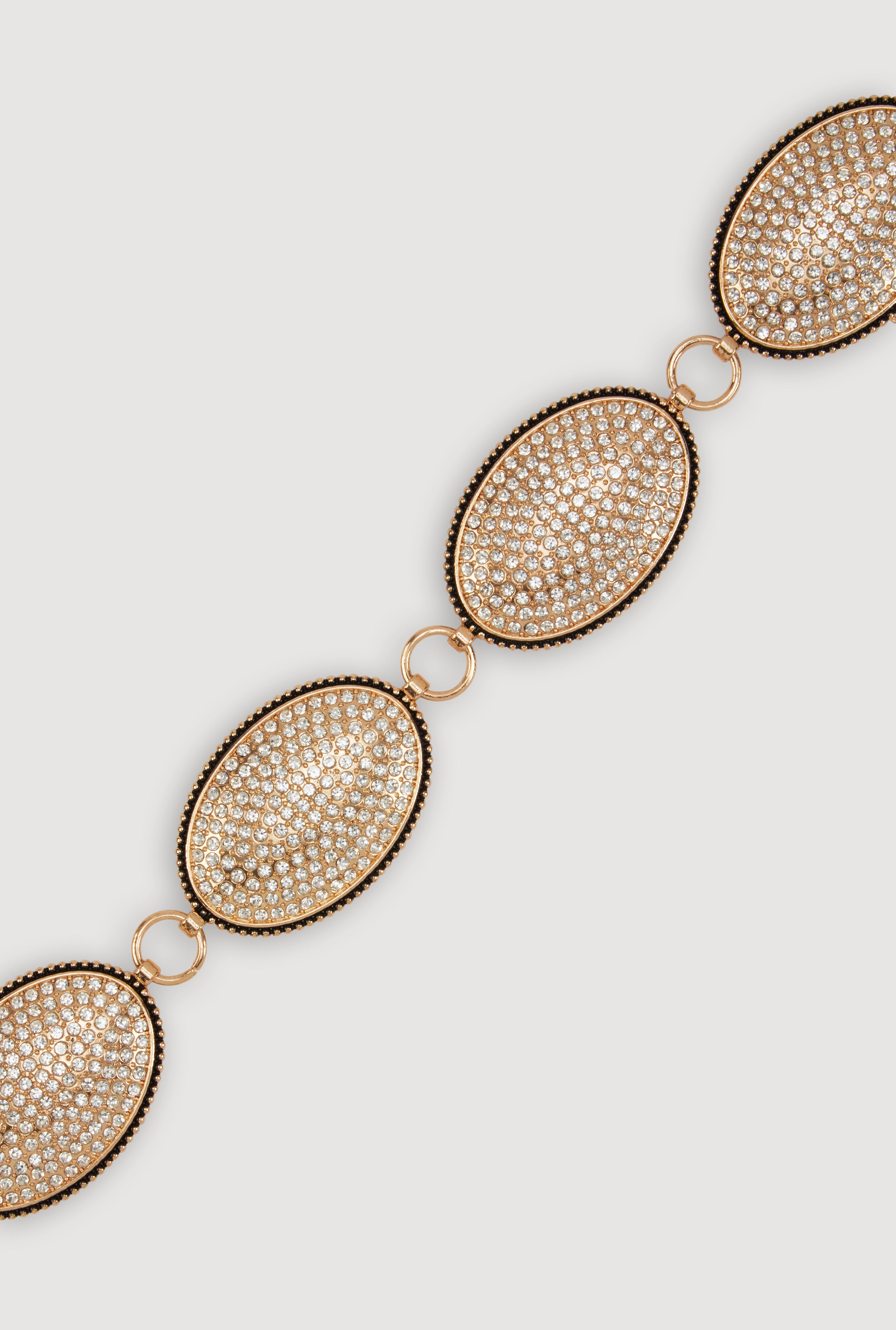 • Plus Size Metallic Oval Rhinestone Medallion Chain Belt