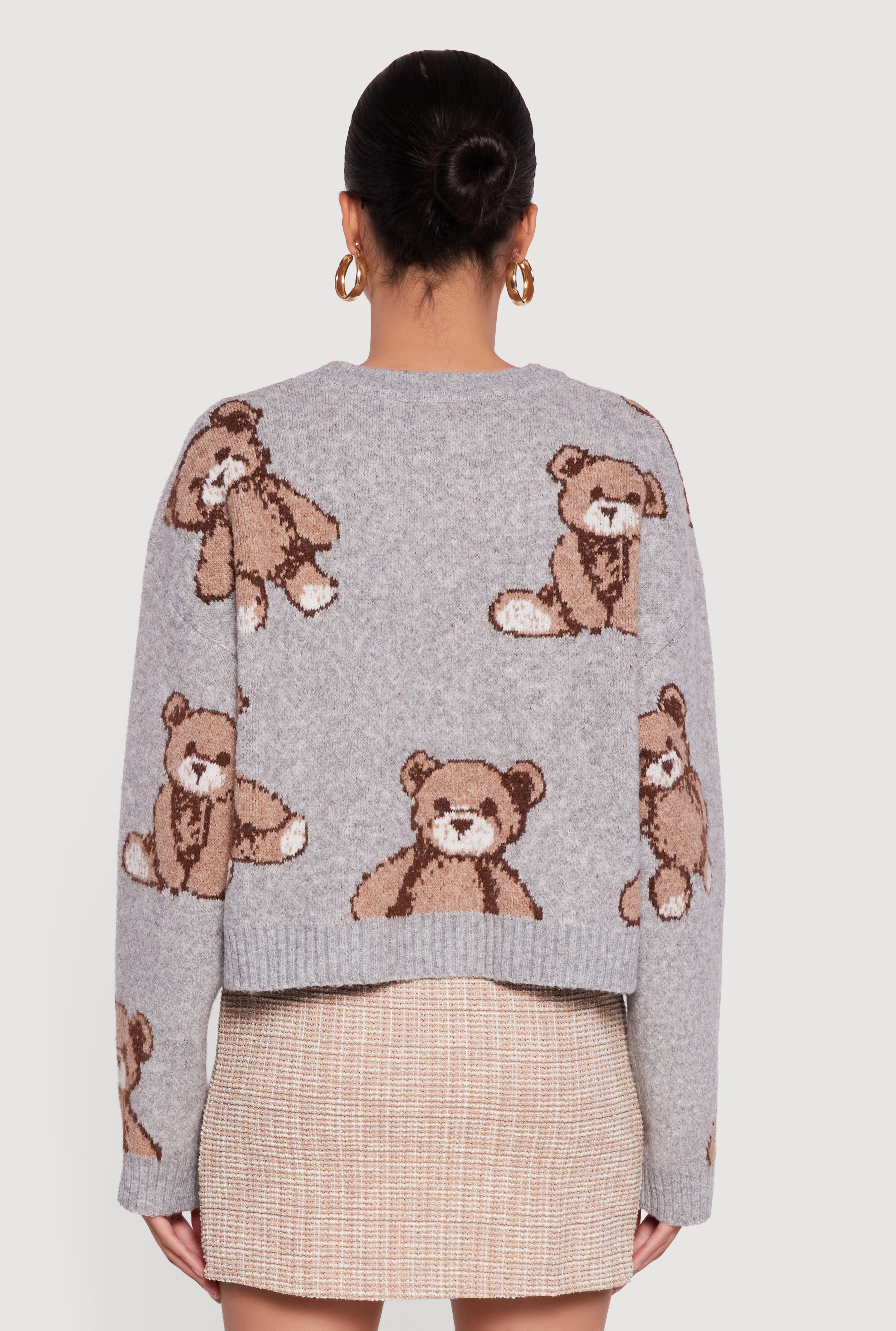 Get cozy and cute with this Brushed Knit Teddy Bear Print Long Sleeve Crew Neck Sweater. Featuring a classic crew neck and long sleeves, it’s perfect for your casual days when you want to stay warm without sacrificing style. The soft brushed knit fabric feels like a hug, while the playful teddy bear print adds a fun, youthful vibe that’s sure to turn heads. Whether you’re lounging at home or out with friends, this sweater combines comfort and charm effortlessly.