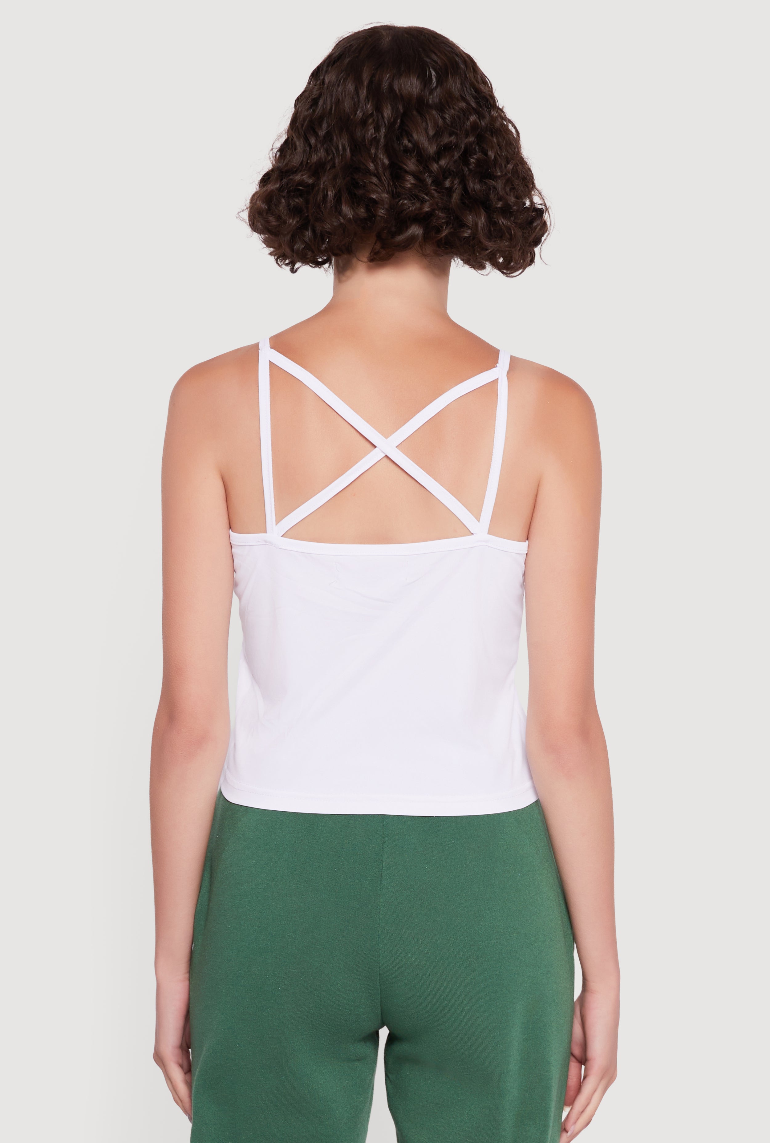 • Cami features a trendy caged back design adding a playful, flirty edge