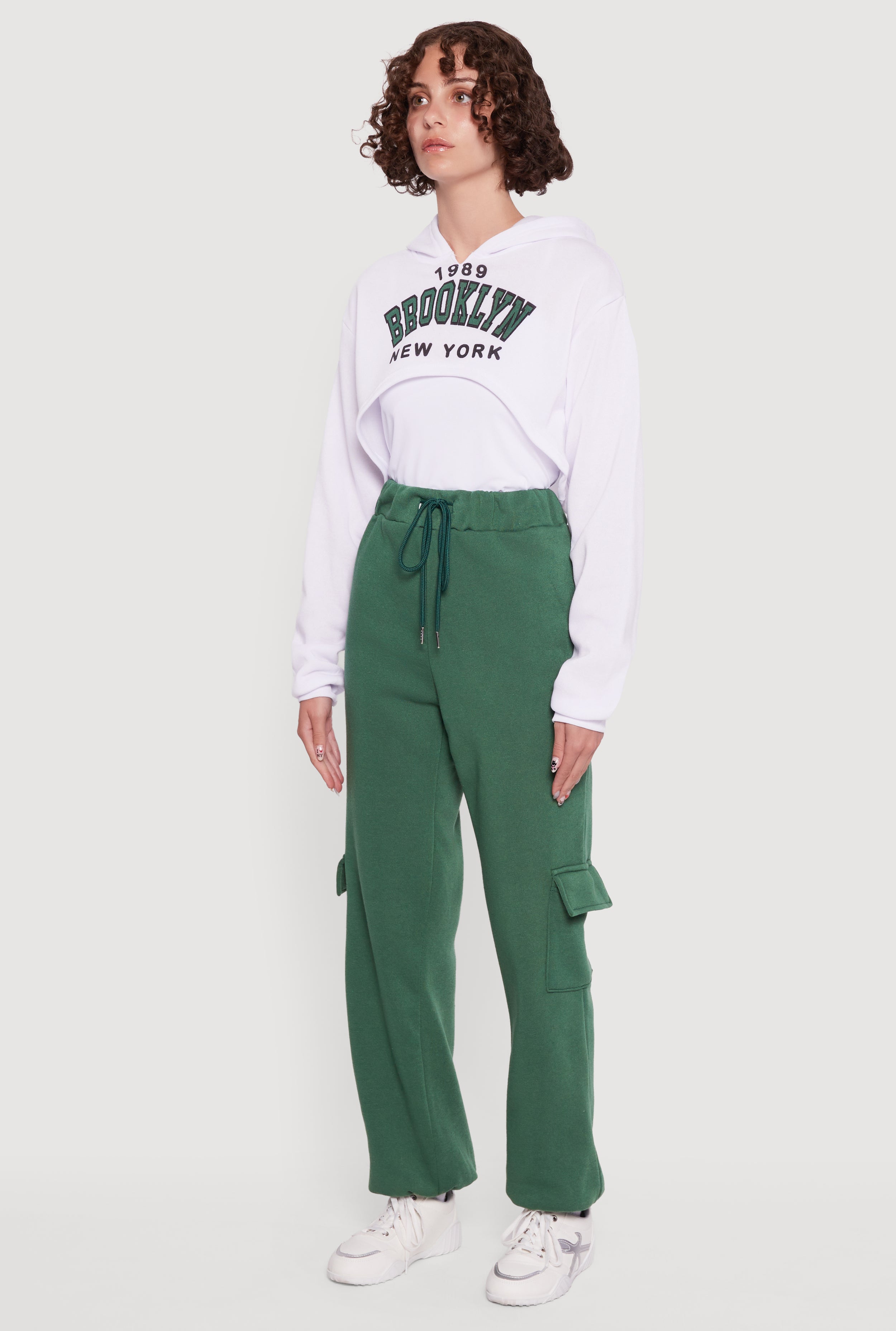 Step up your casual game with the 1989 Brooklyn Hooded Shrug Sweatshirt and Caged Back Cami set. This effortlessly cool duo blends cozy fleece comfort with edgy graphic vibes, perfect for those laid-back days when you want to look cute without trying too hard. Whether you're chilling at home or hitting the streets, the classic fit sweatshirt with its hood adds a timeless touch, while the caged back cami brings a flirty twist that keeps things fresh and fun. Ready to make your athleisure style pop? This set has got you covered.