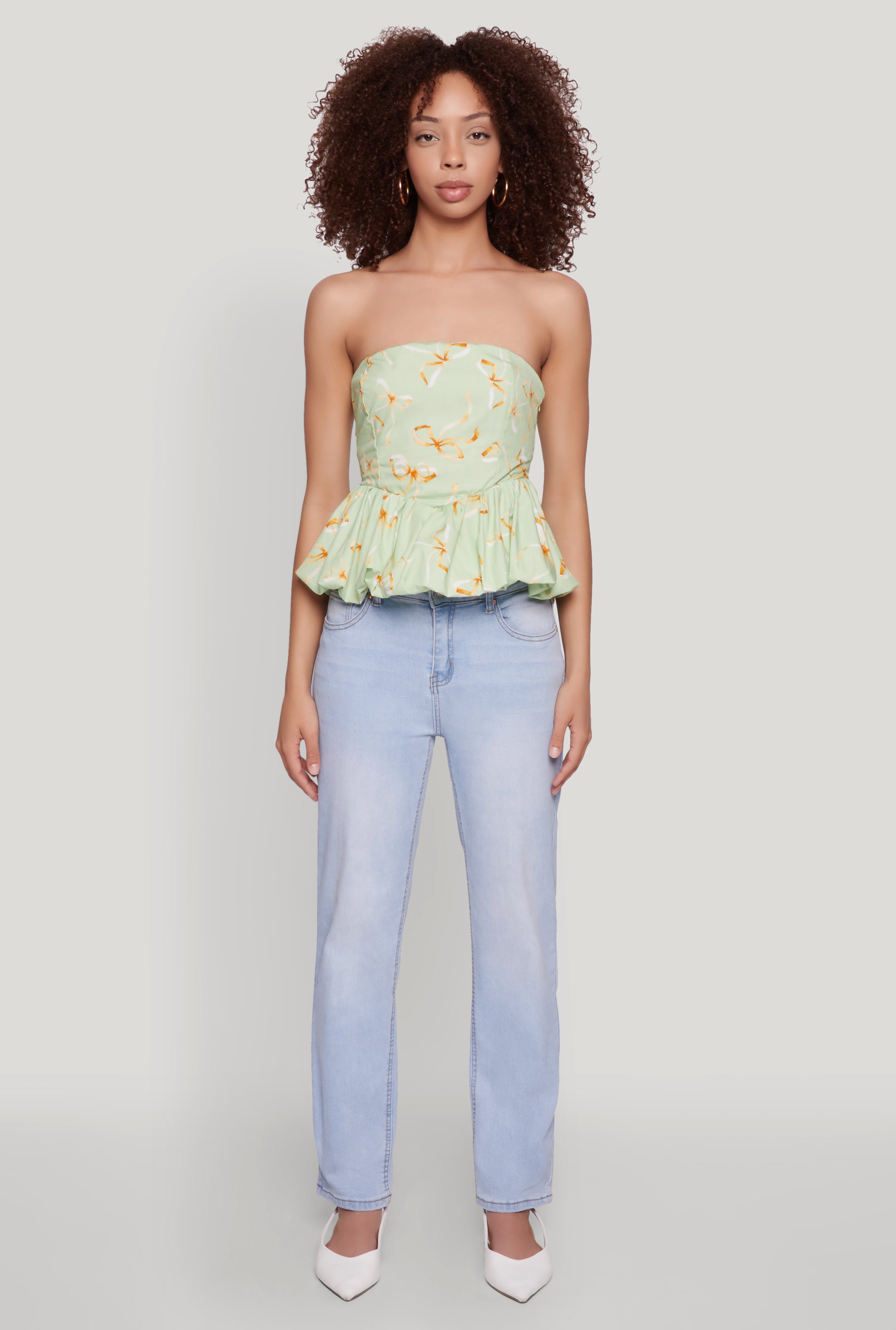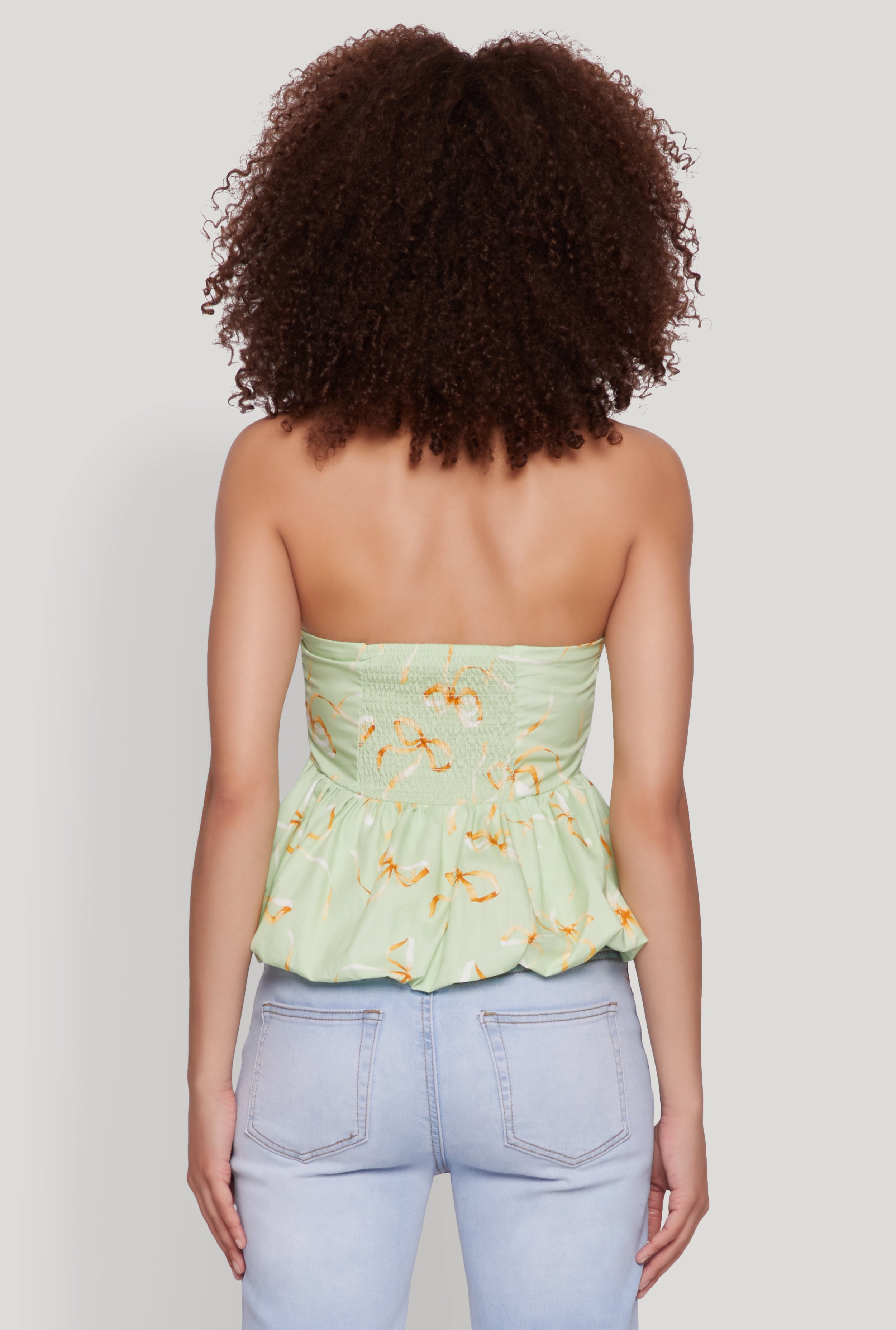 Get ready to turn heads with the Bow Print Bubble Hem Blouse from Blâshe. This charming top combines a classic fit with a playful bubble hem that adds a flirty touch to any outfit. The strapless design makes it perfect for warm days or nights out, while its timeless silhouette ensures you'll love it season after season. Whether you're dressing up or keeping it casual, this blouse is your new go-to for effortless style and comfort.