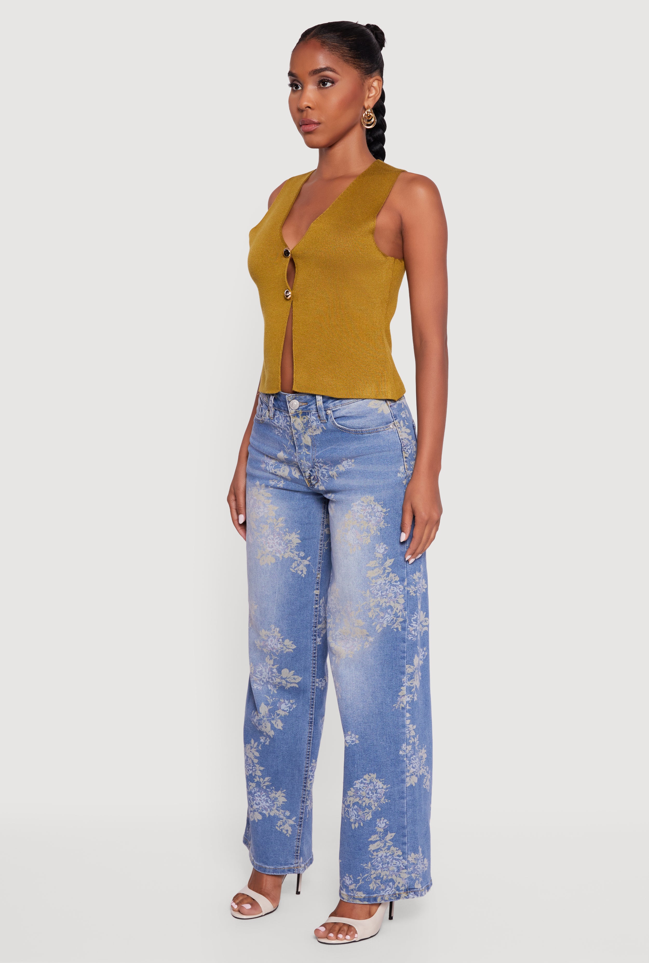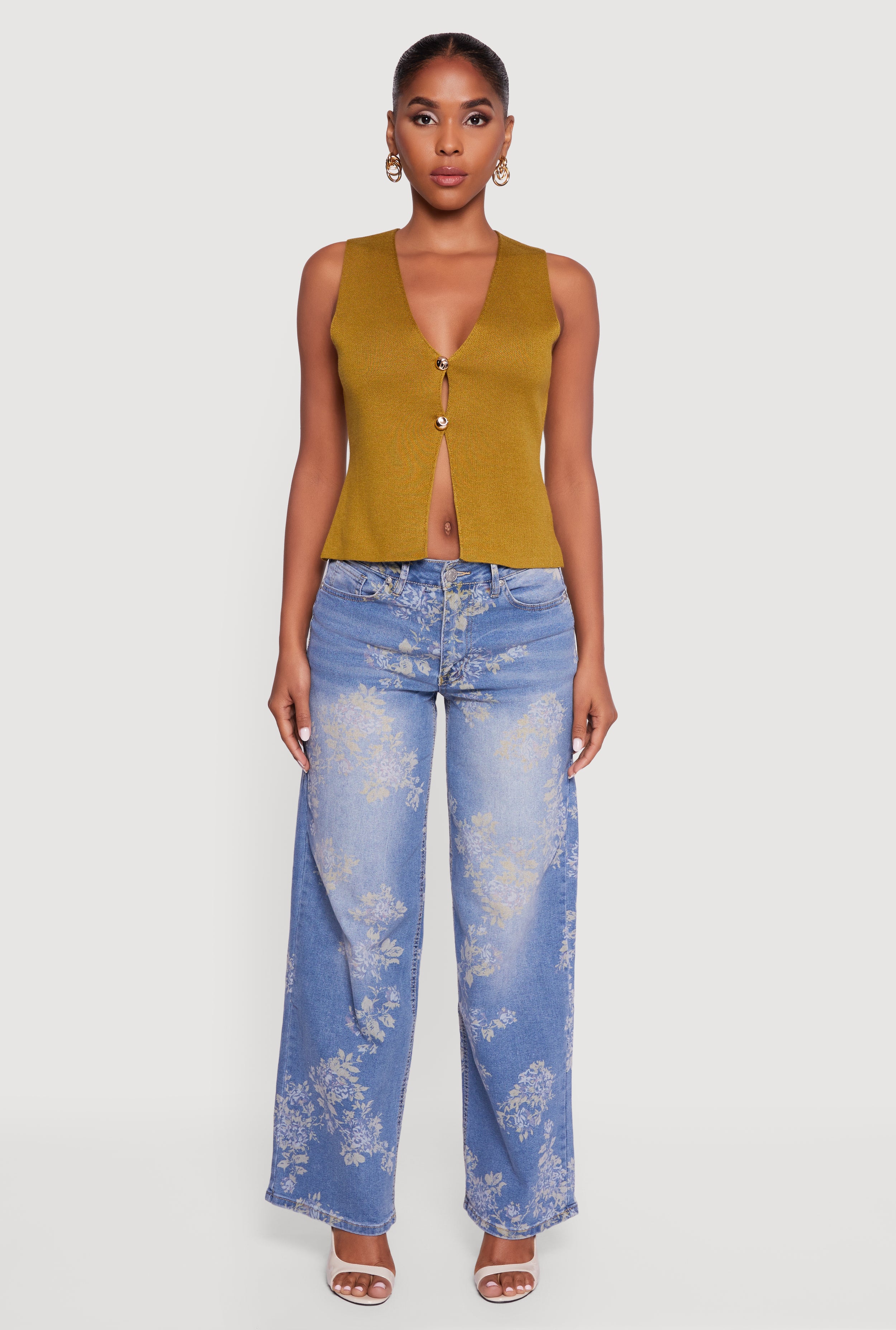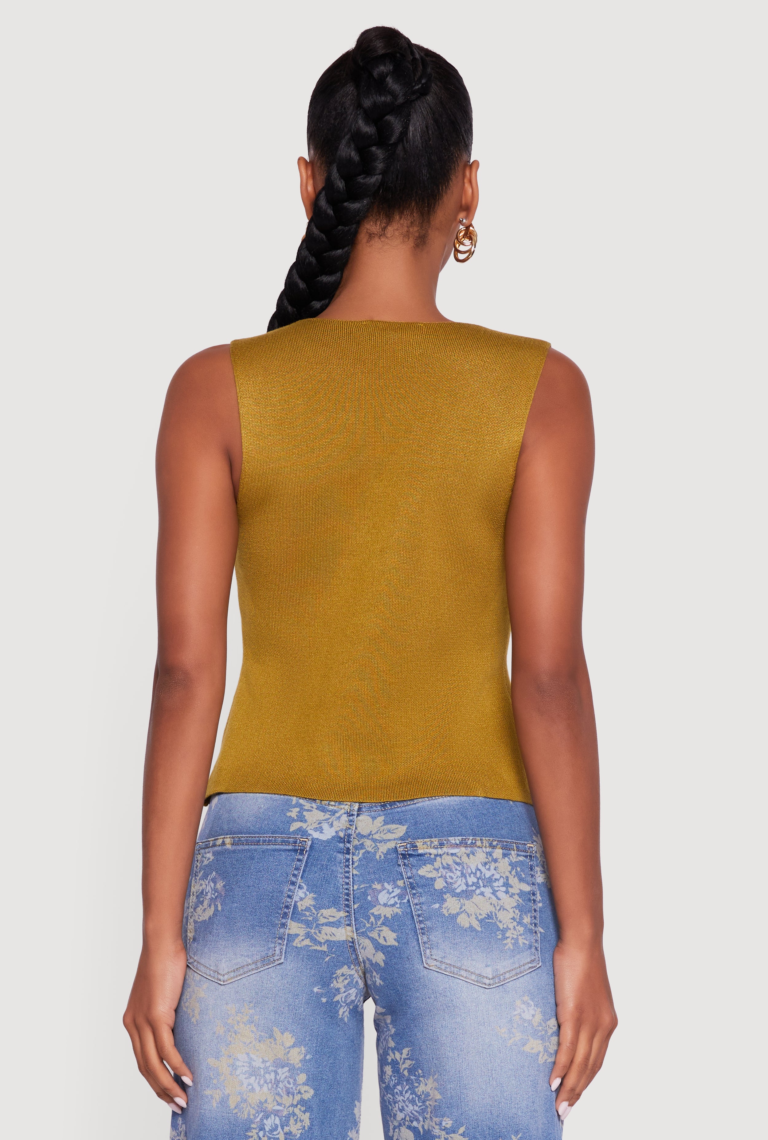 Elevate your casual wardrobe with this Metallic Button Front Split Hem Sweater Vest. Designed for effortless style, its classic fit and sleeveless cut make it perfect for layering or wearing solo. The subtle metallic sheen adds a touch of glam while the V-neck and split hem bring a modern twist to a timeless silhouette. Made from soft brushed knit, this vest keeps you comfy and chic all day long.