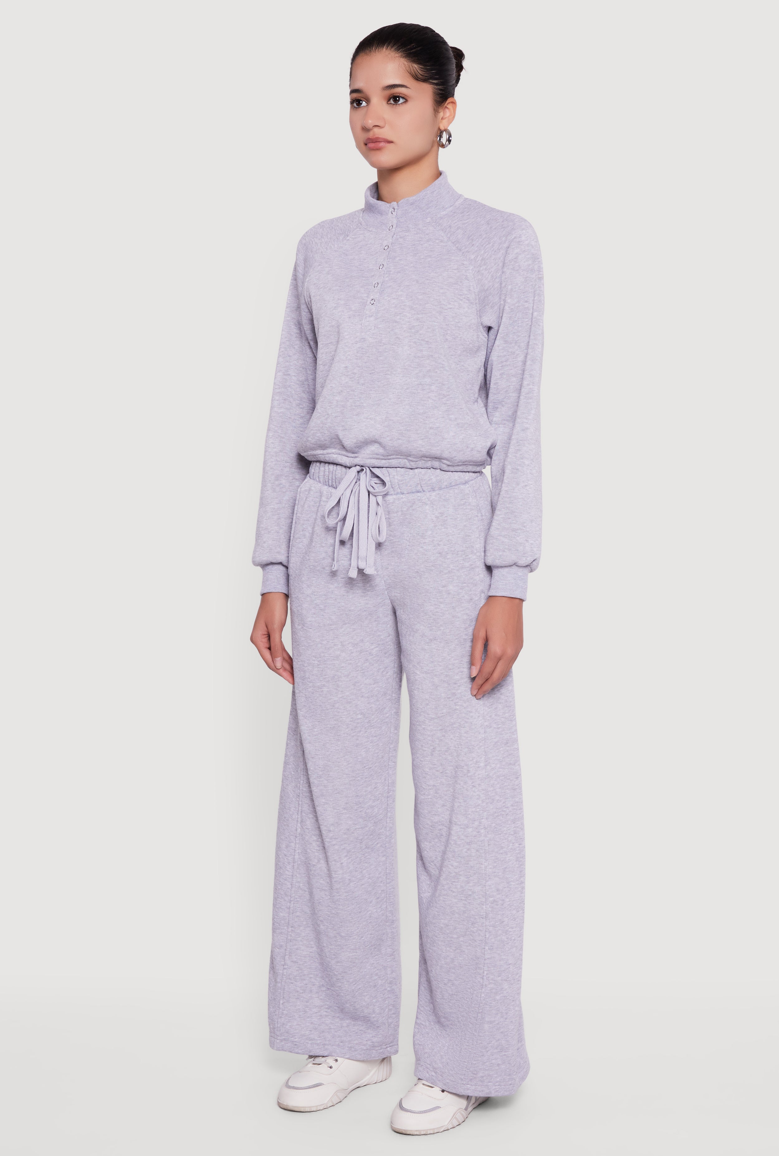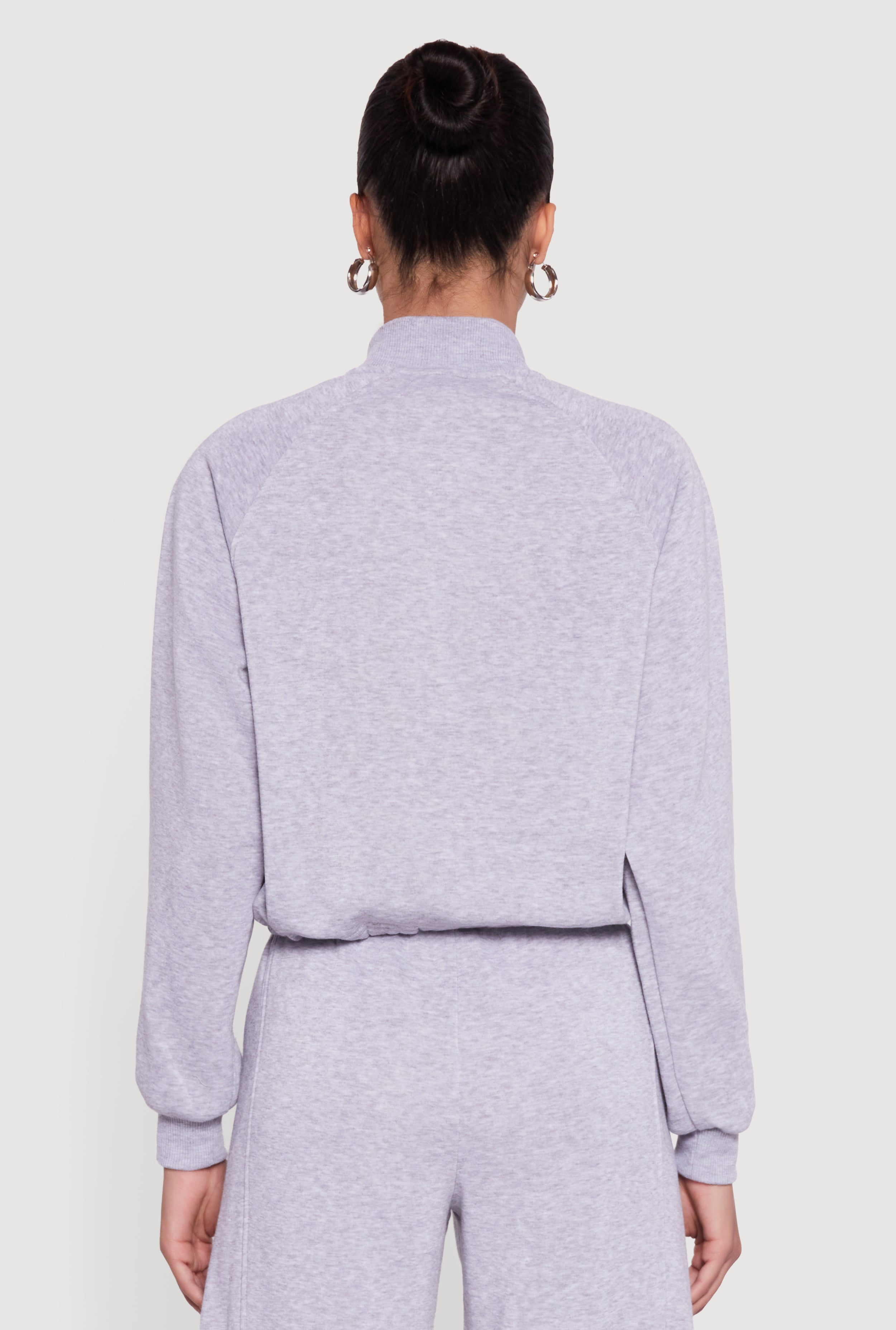 Step up your casual game with the Almost Famous Drawstring Hem Cropped Raglan Sweatshirt. This cozy fleece sweatshirt features a trendy cropped fit with a drawstring hem that lets you customize your look. The half snap button front and mock neck add a fresh twist to classic athleisure style, making it perfect for lounging or running errands in effortless comfort.
