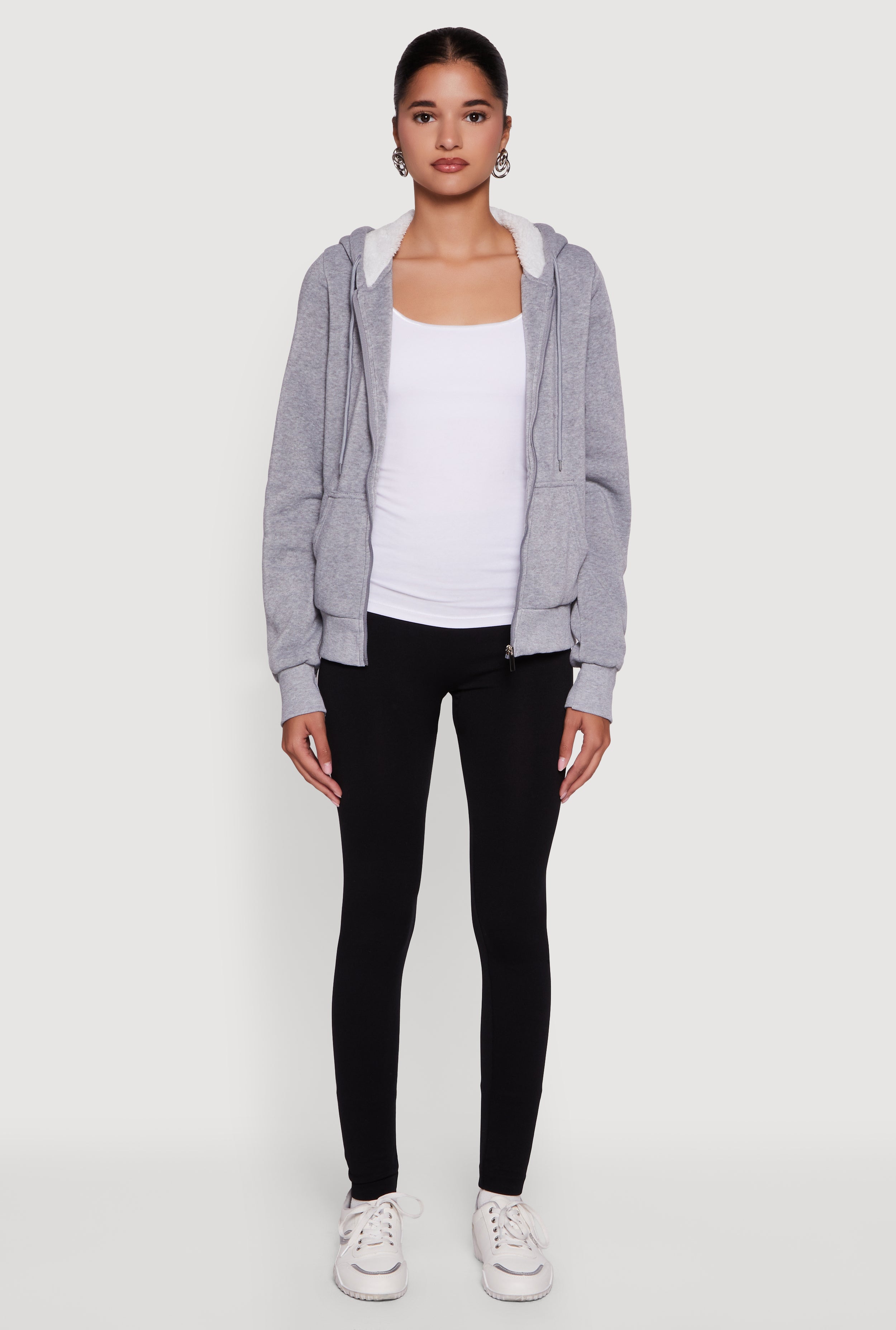 Cozy Sherpa Lined Hooded Zip Front Sweatshirt