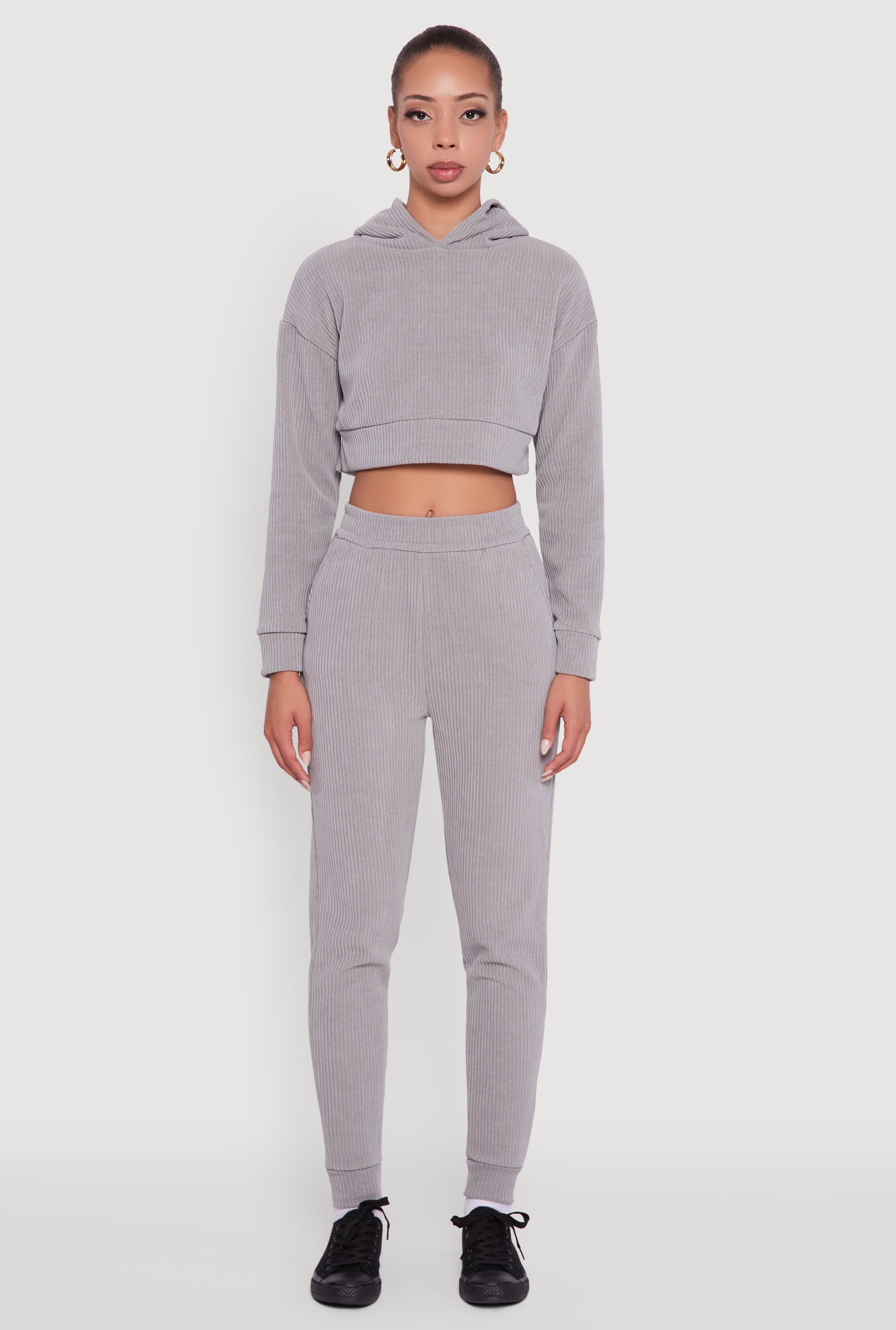 Ribbed Knit Long Sleeve Hooded Crop Top