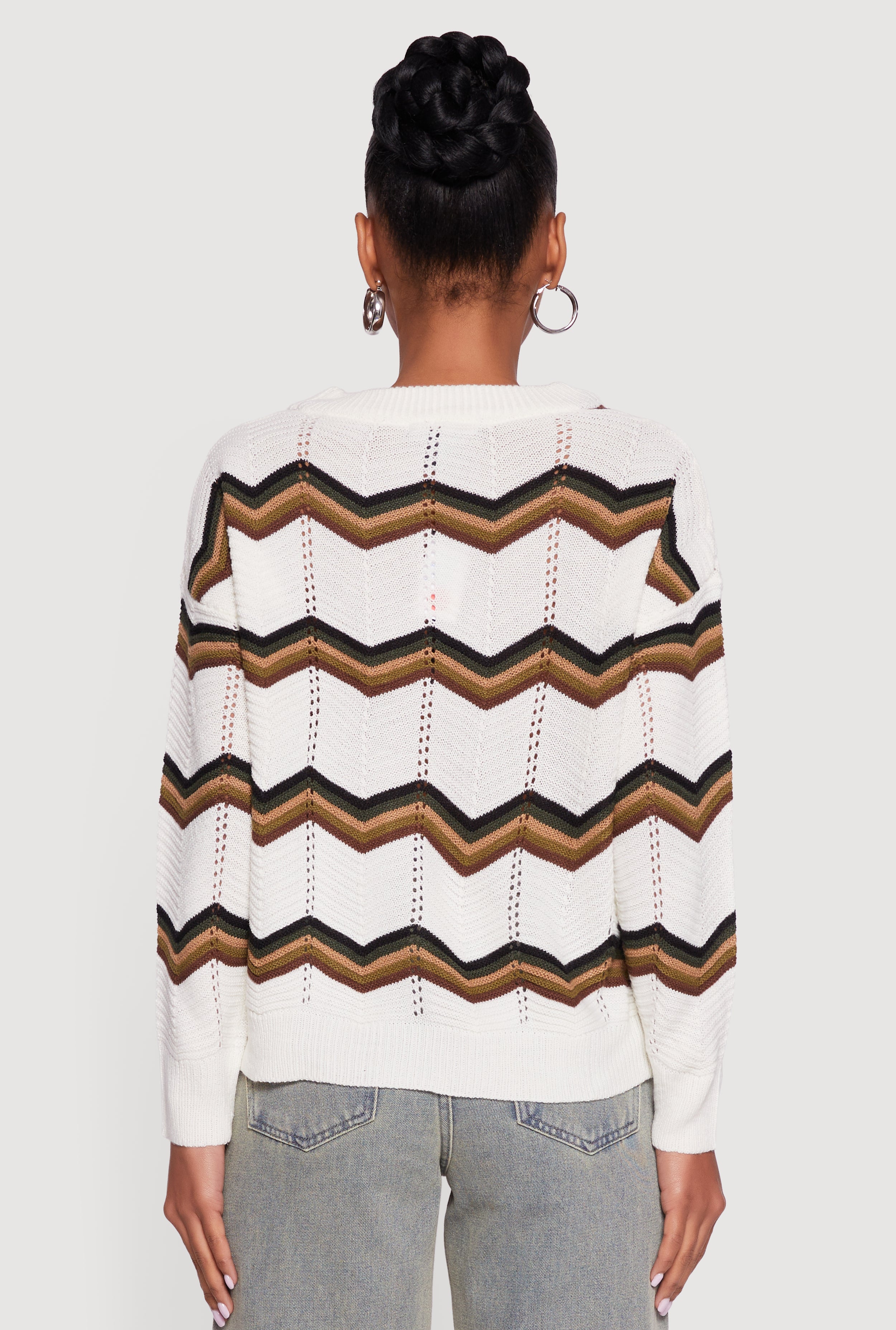 • Pointelle Chevron Stripe Button Front Cardigan