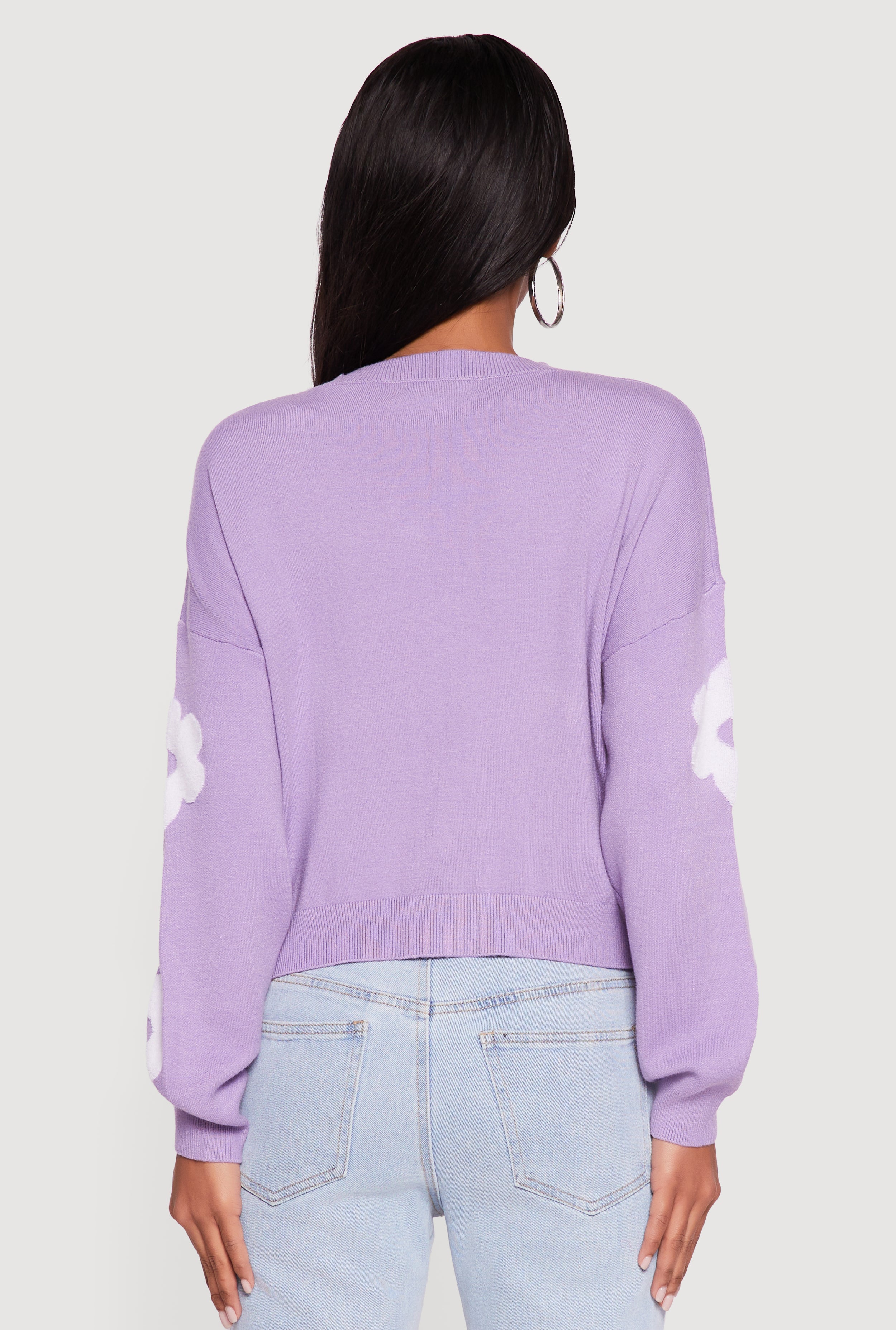 Step into cozy vibes with the Daisy Flower Crew Neck Cropped Sweater. This classic-fit crop top brings together soft boucle fabric and charming tufted daisy details for a fresh, playful look. Perfect for layering or rocking solo, it’s your go-to for casual days when you want to feel comfy and cute without trying too hard.