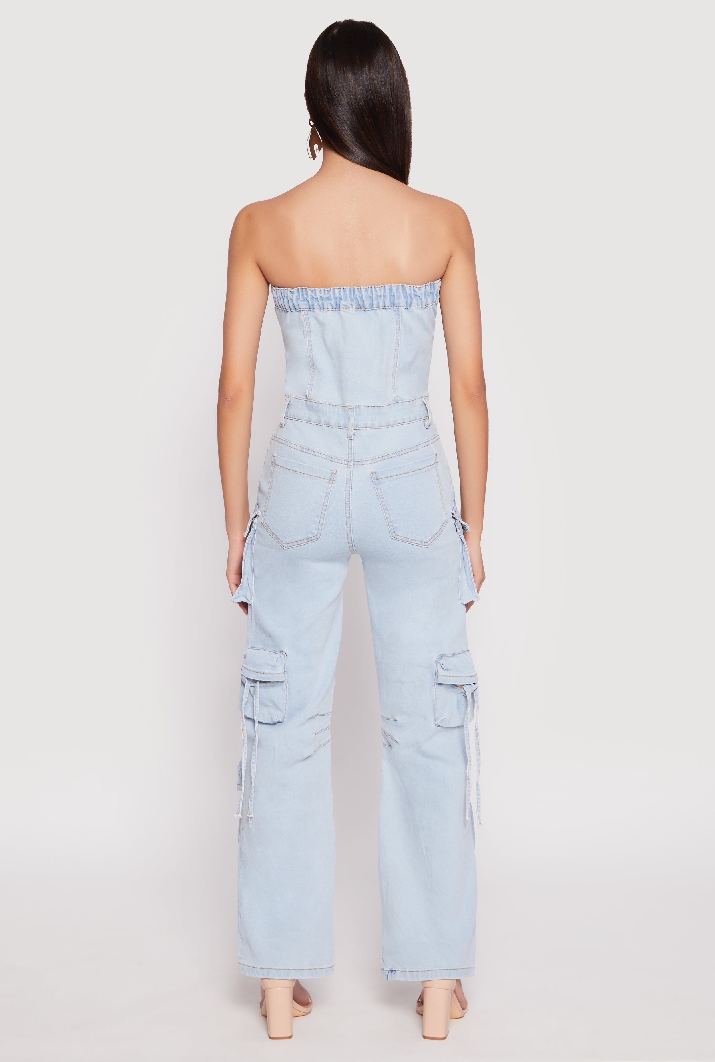 Meet your new go-to outfit: the Daisy Denim Straight Leg Cargo Jumpsuit. Perfect for those days when you want to look effortlessly chic without trying too hard. Its strapless design and sleeveless cut keep things cool and flirty, while the button front adds a touch of vintage vibe. With practical cargo pockets, decorative stitching, tassels, and zippers, this jumpsuit is as stylish as it is functional. Whether you're heading out with friends or running errands in style, this denim piece has got you covered.