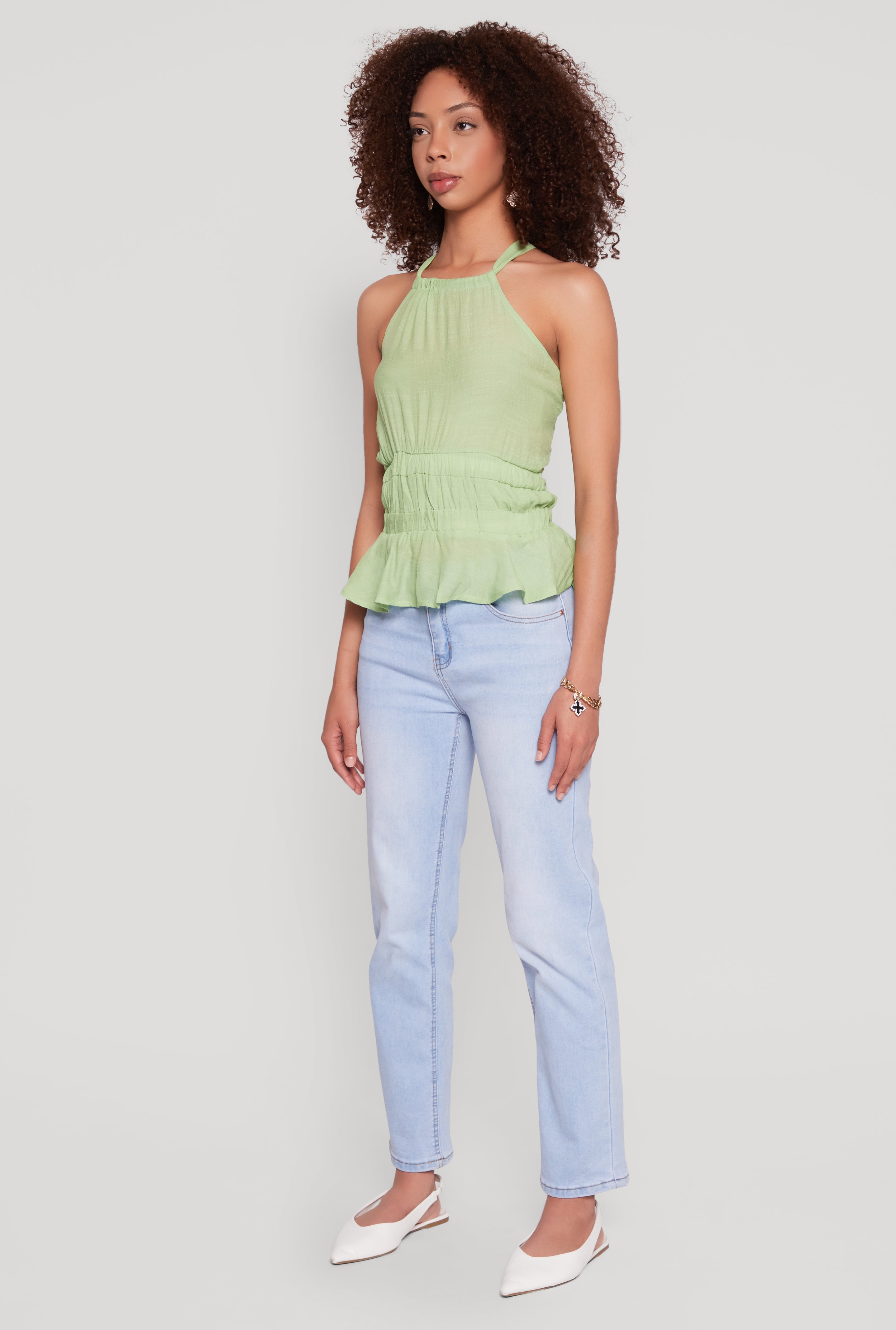 Upgrade your wardrobe with the Gauze Knit Halter Peplum Top, a perfect blend of comfort and style that will make you stand out effortlessly. Its lightweight gauze knit fabric feels breezy and soft against your skin, while the classic fit and timeless silhouette ensure you look chic from every angle. The playful keyhole detail and ruffles add a flirty touch, making it ideal for casual outings or a fun night out. The elastic waist and tie-back design give you a customizable fit that moves with you, so you can stay comfortable and confident all day long.