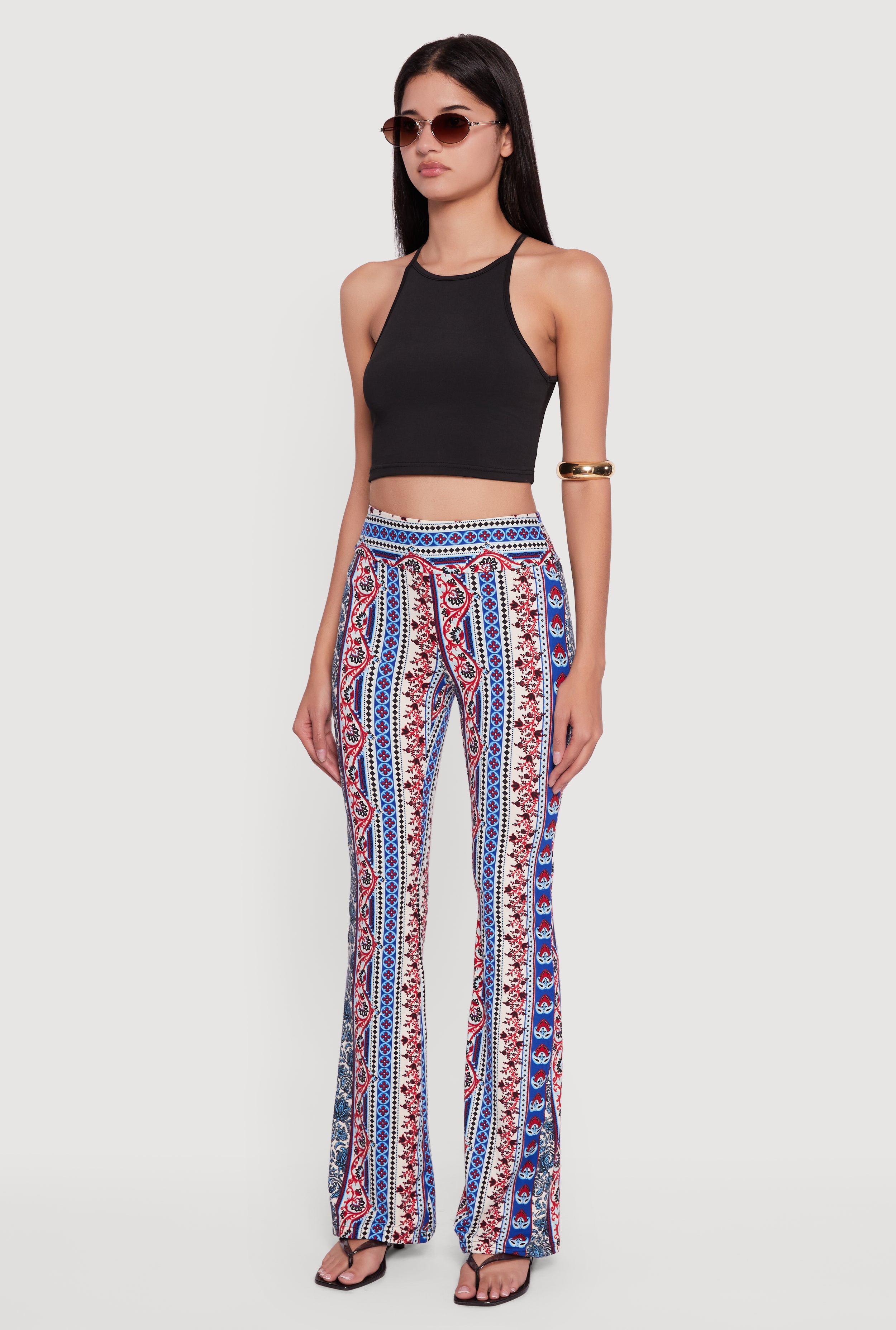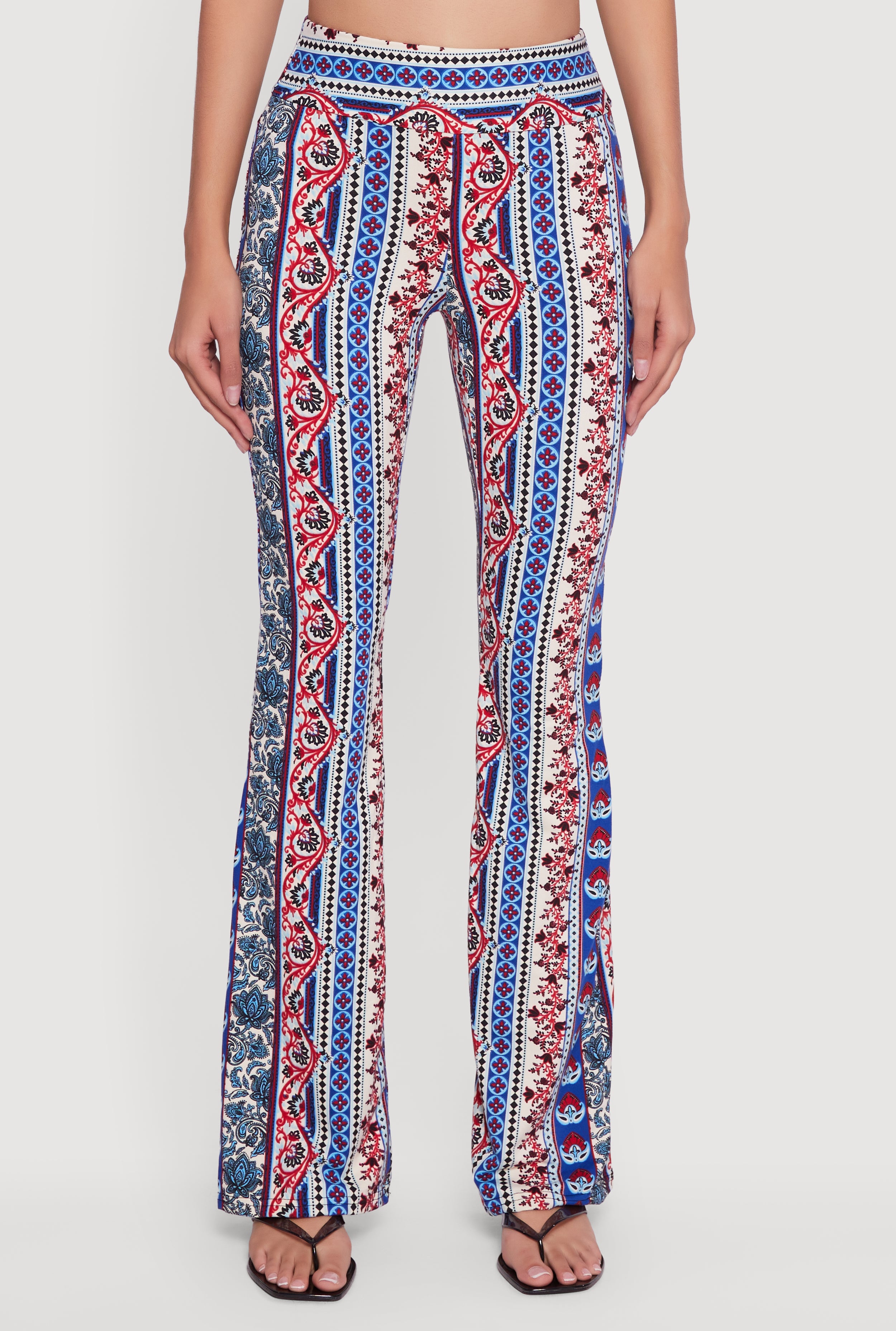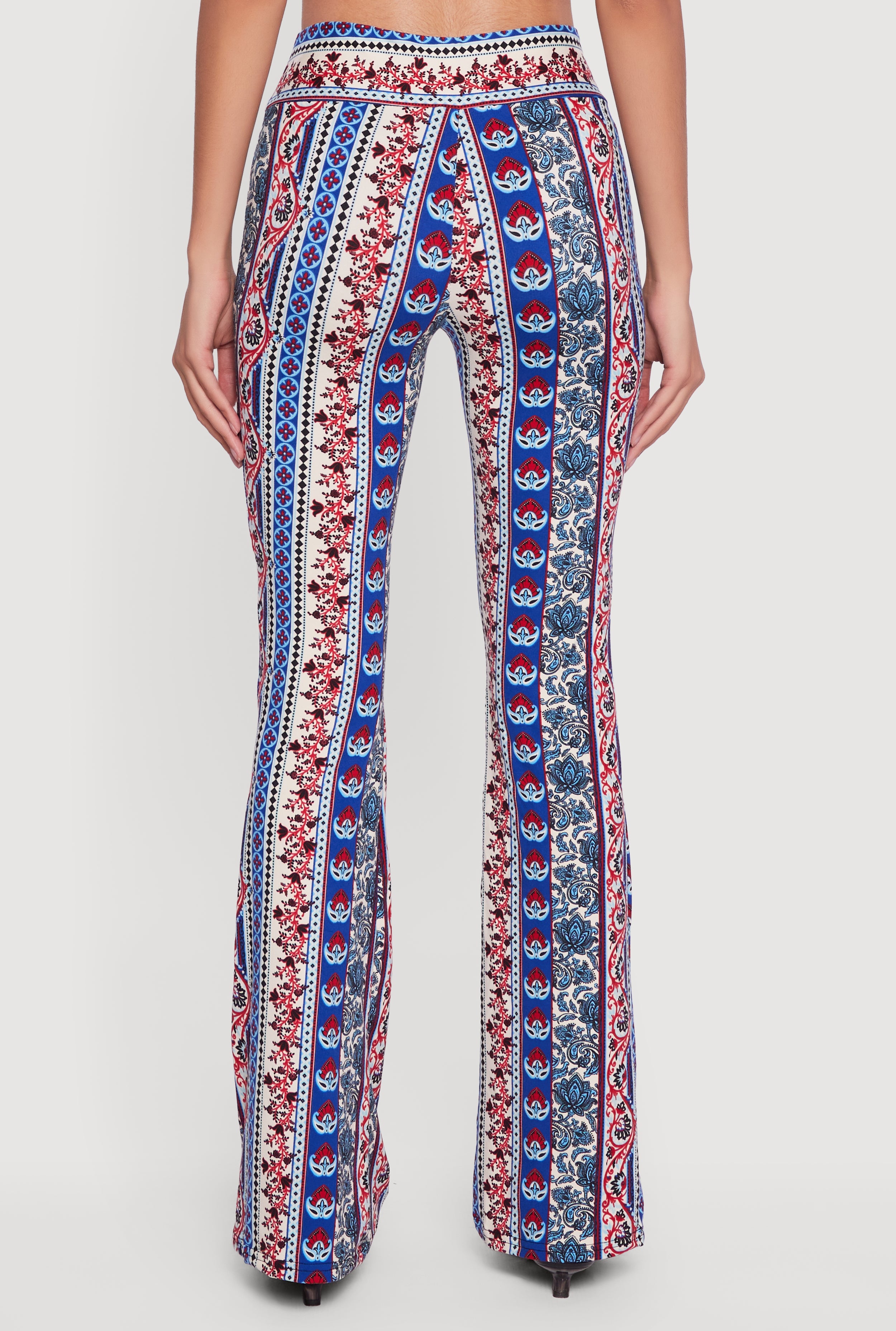 Boho Border Print High Waisted Flare Leg Pants