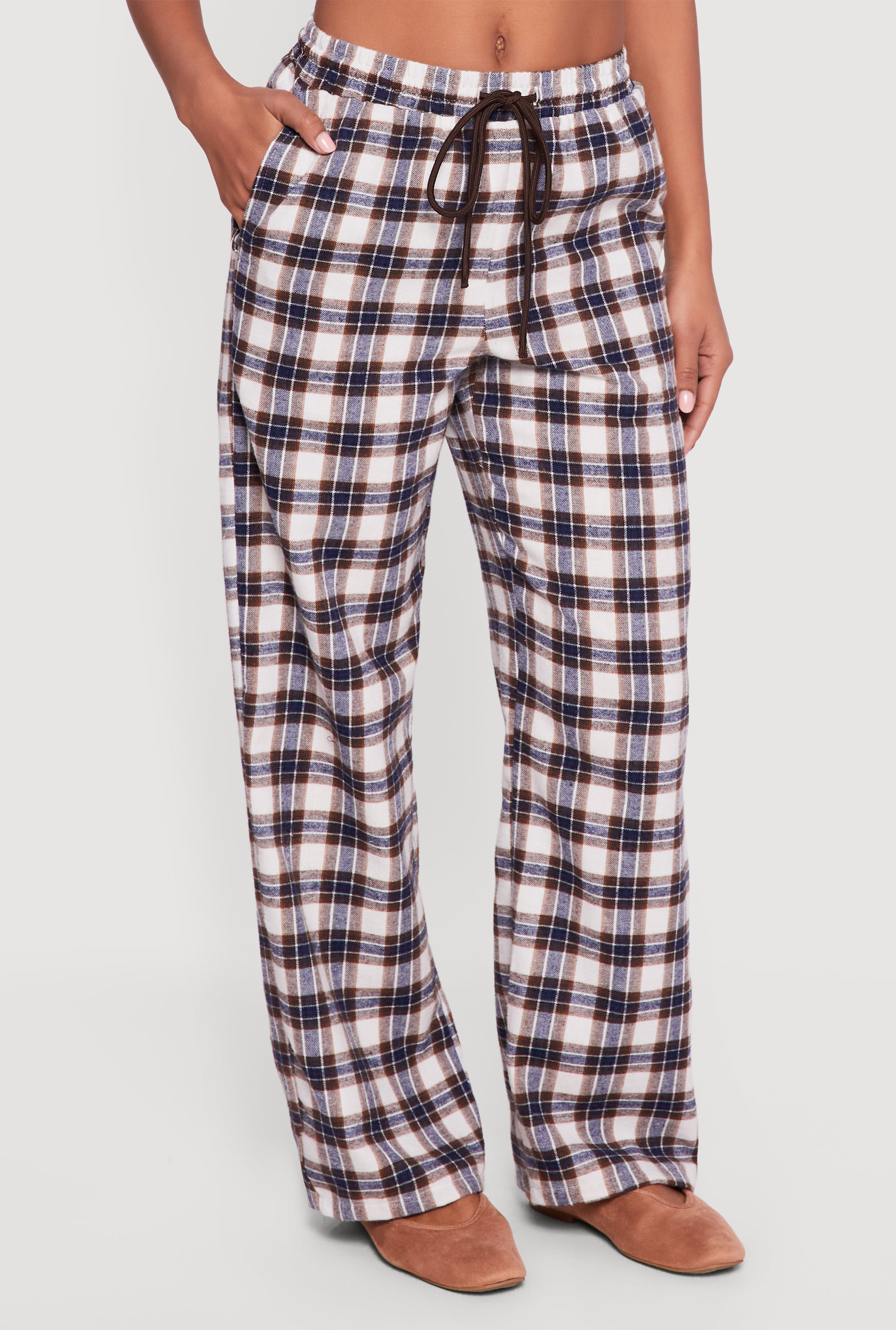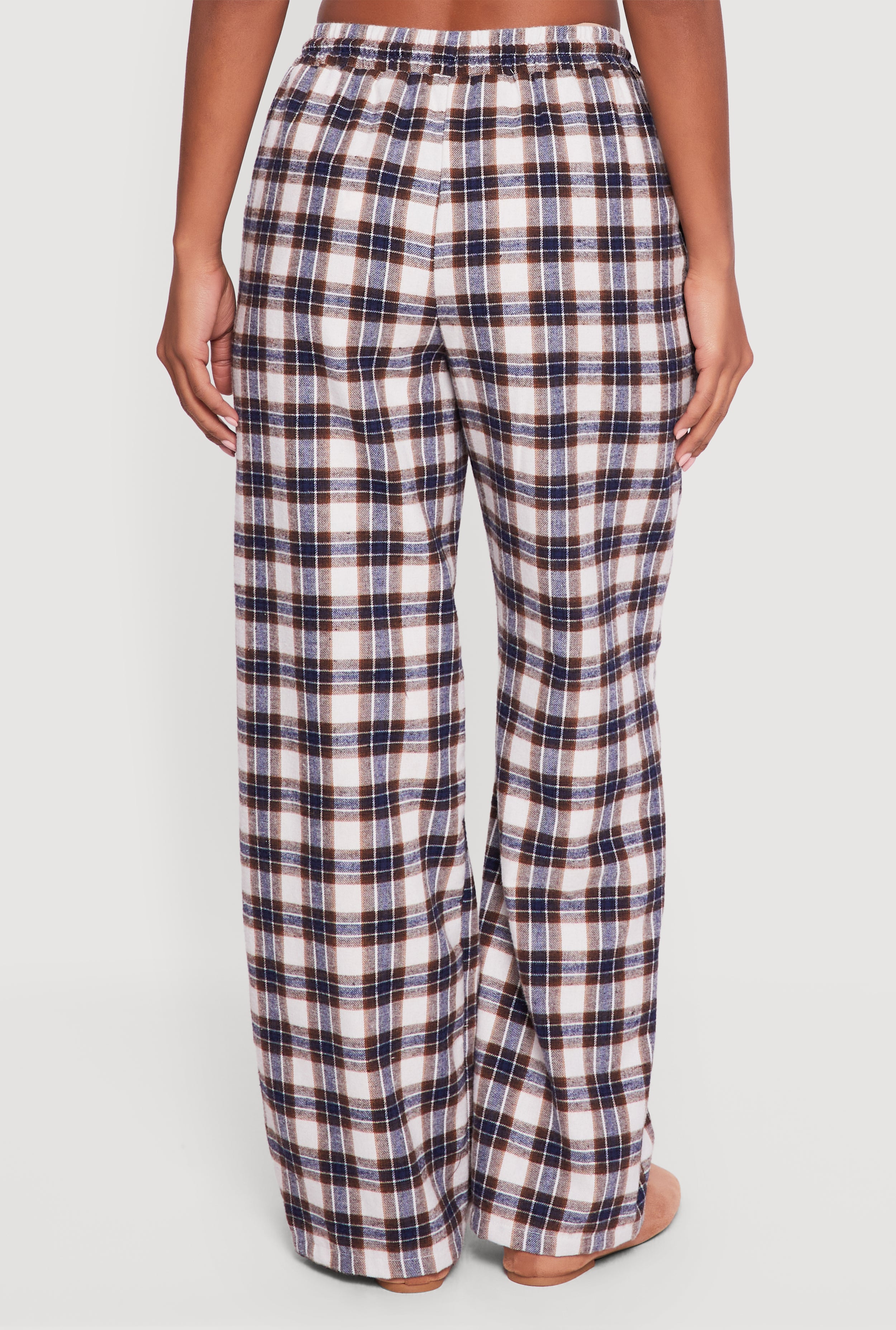 Plaid Flannel Drawstring Waist Wide Leg Pants