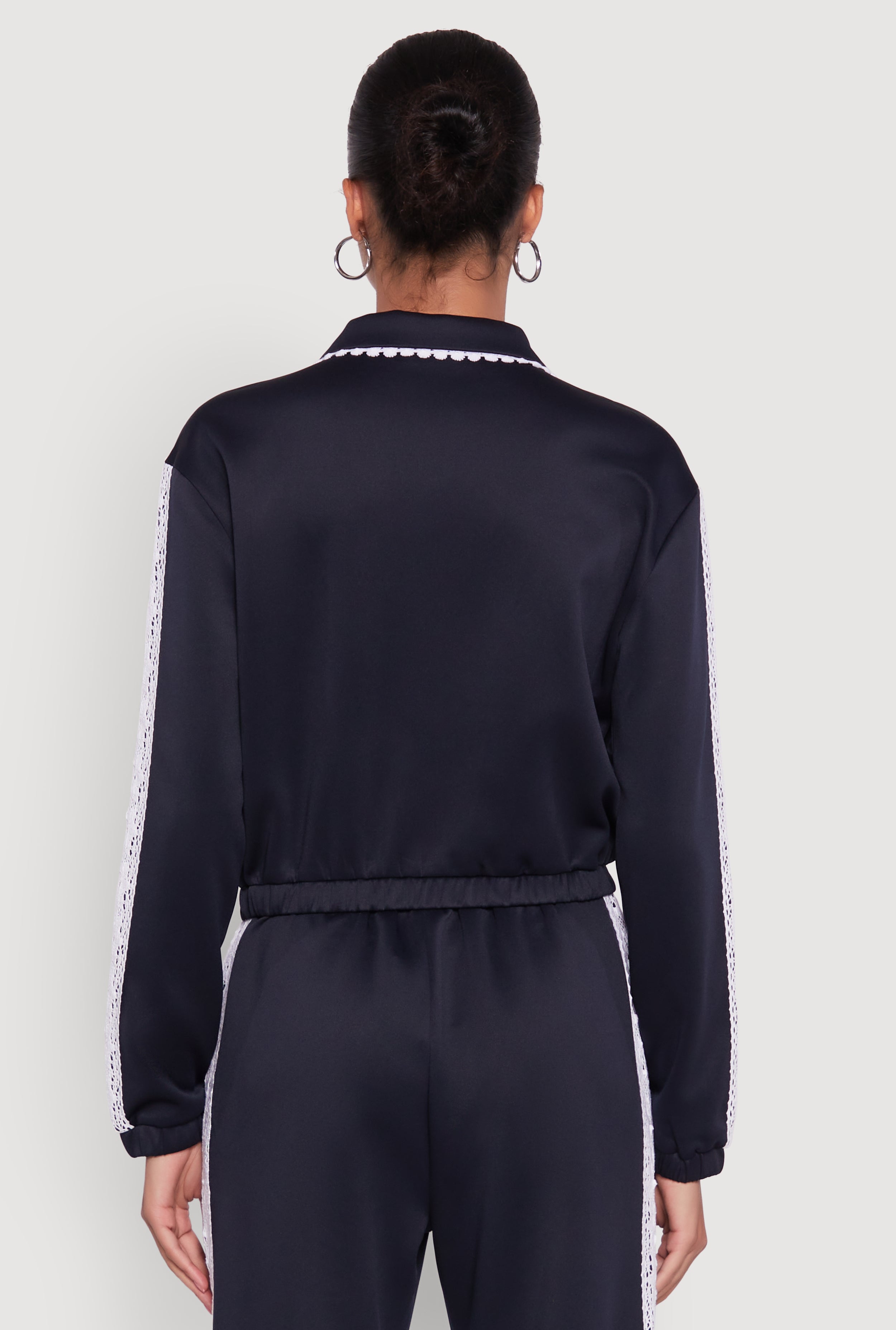 Collared Crochet Trim Graphic Track Jacket