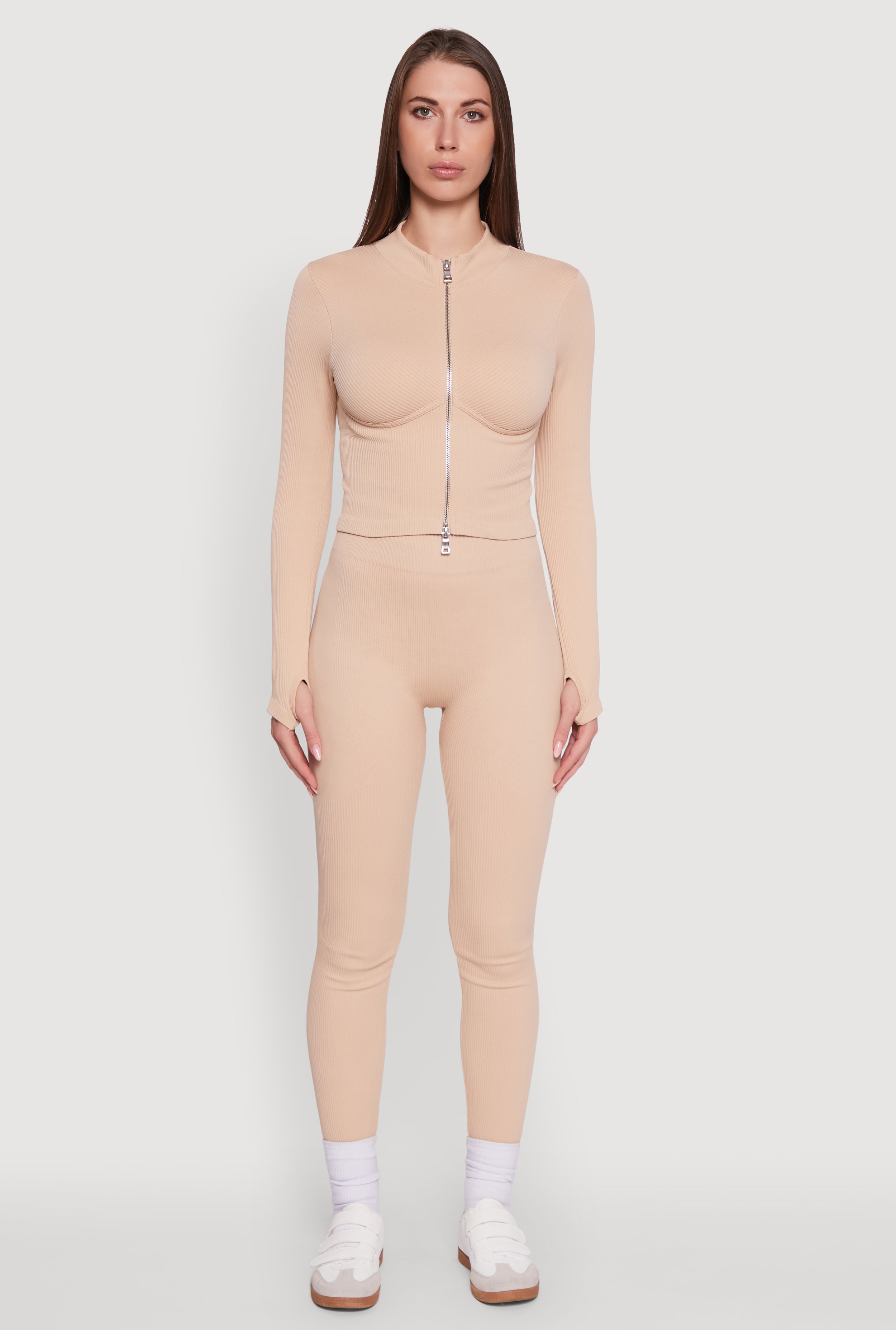 Upgrade your activewear game with the Seamless Ribbed Bustier Detail Cropped Track Jacket. This sleek, cropped jacket is designed to hug your curves with its compression rib fabric while keeping you effortlessly cool and stylish. The mock neck adds a touch of sporty chic, and the zip front lets you customize your look from fully zipped to laid-back open. Thumb holes keep sleeves in place during your moves, making it perfect for everything from morning jogs to casual hangouts. Who says comfort and style can't be besties?