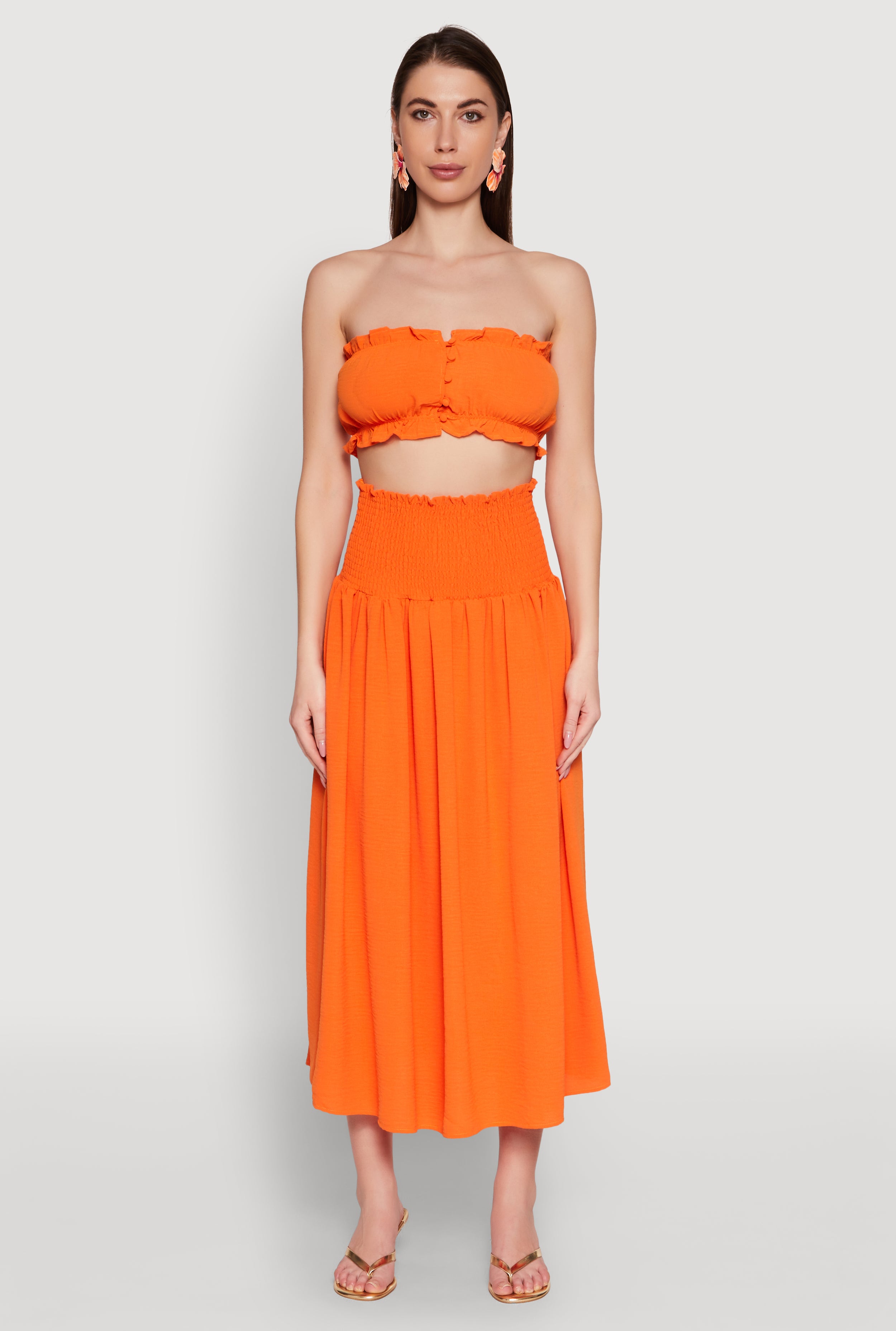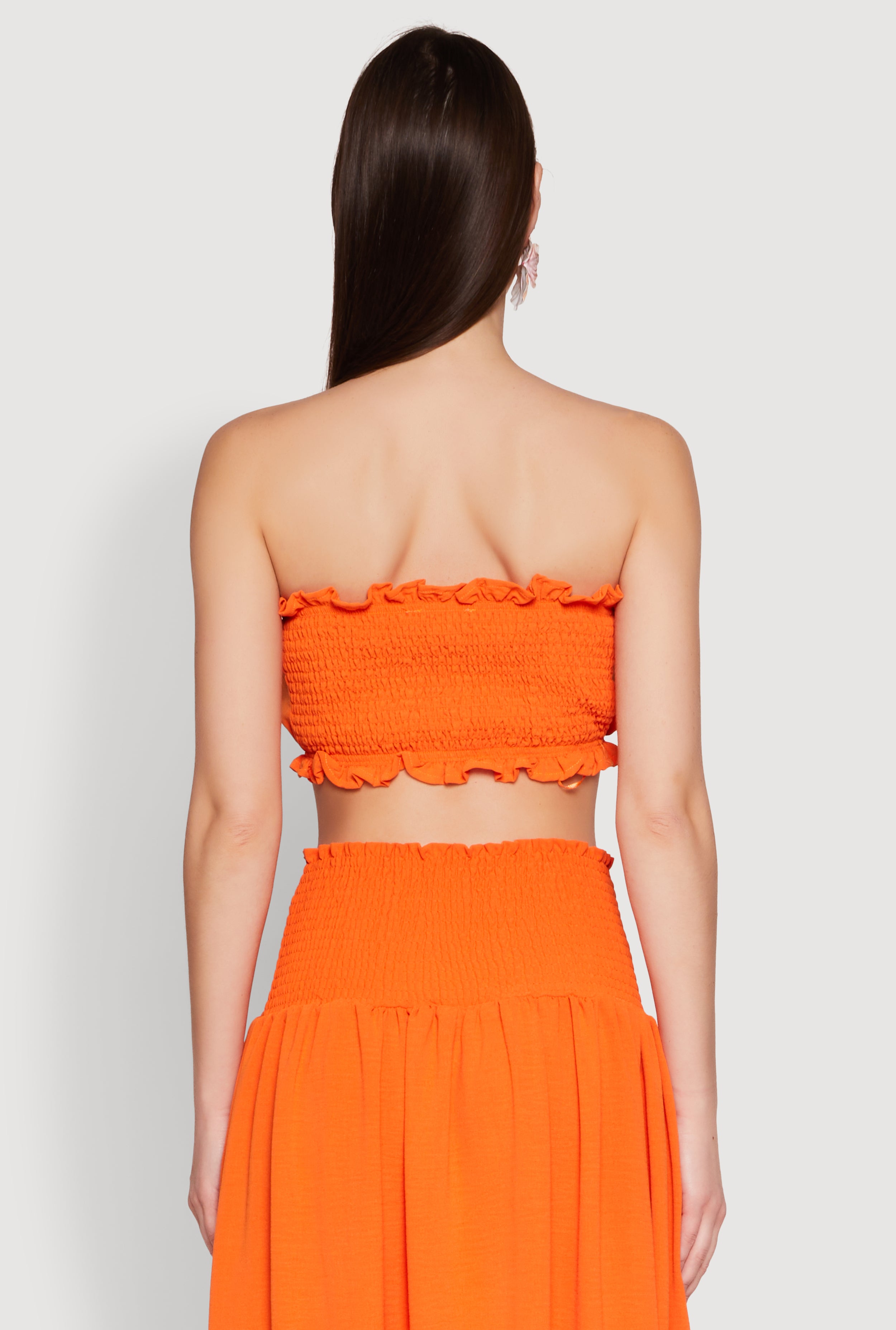 Get ready to turn heads with the Airy Ruffled Button Front Tube Top, the perfect blend of effortless style and comfort. Crafted from soft crepe knit, this sleeveless, strapless top features charming ruffles and a classic fit that flatters every shape. Its cropped hem makes it ideal for pairing with your favorite high-waisted jeans or skirts, creating a look that's both playful and chic. Whether you're hitting the beach, brunch, or just lounging in style, this top is your new go-to for a fresh, trendy vibe that won't break the bank.