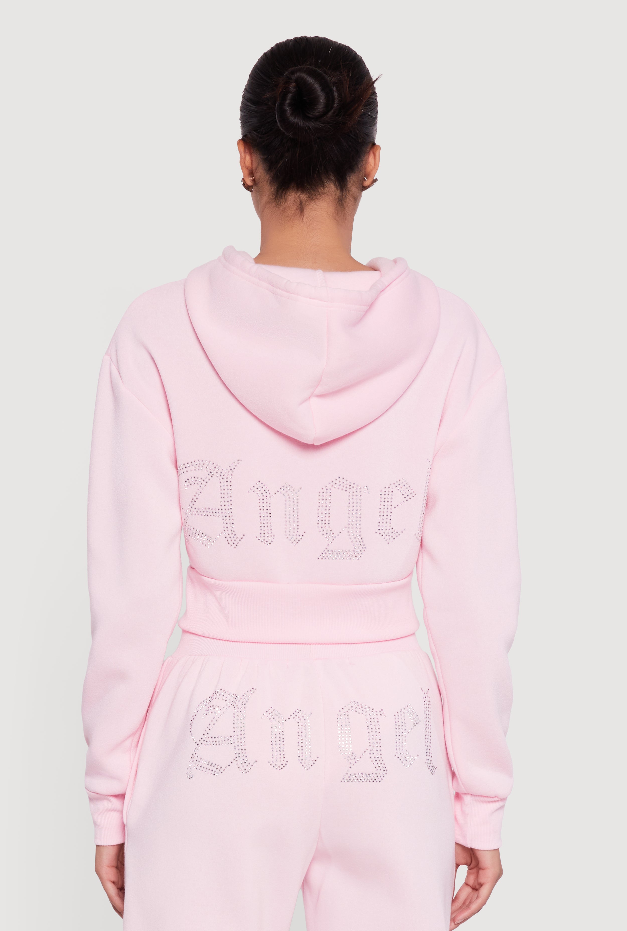 Upgrade your casual wardrobe with the Angel Rhinestone Zip Front Cropped Hoodie. This relaxed fit, fleece-lined hoodie features a chic angel graphic adorned with sparkling rhinestones, making it the perfect blend of cozy and cool. Whether you're running errands or lounging with friends, its zip front and cropped silhouette add a trendy edge to your everyday style.