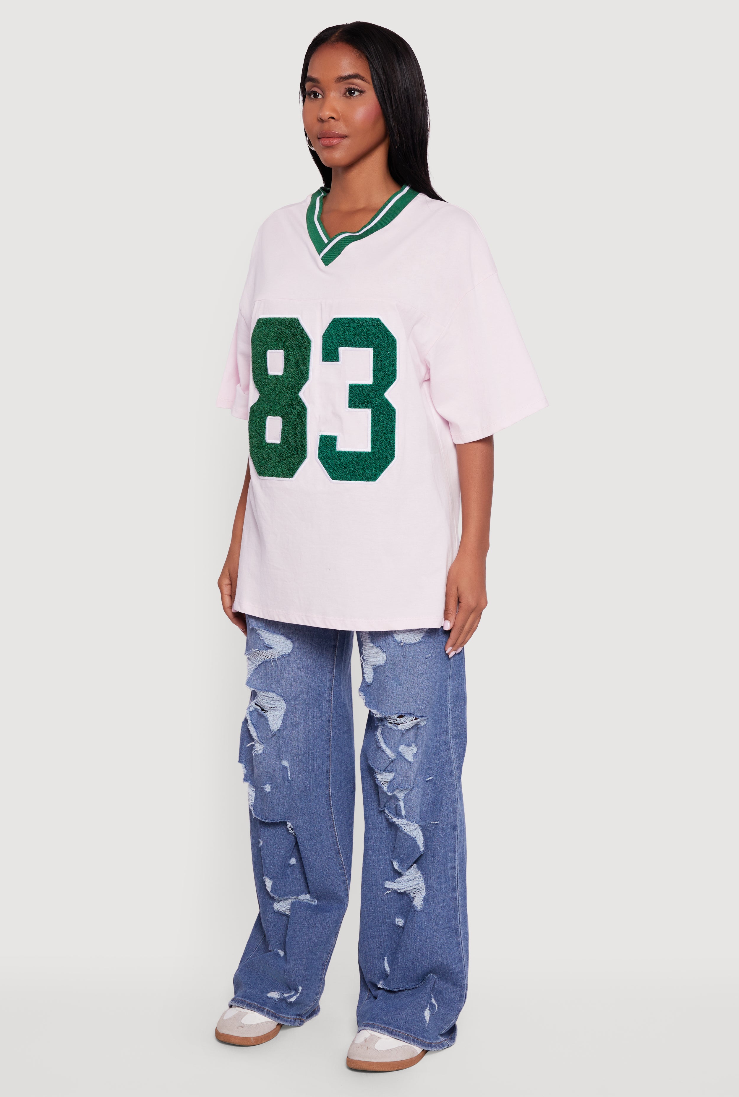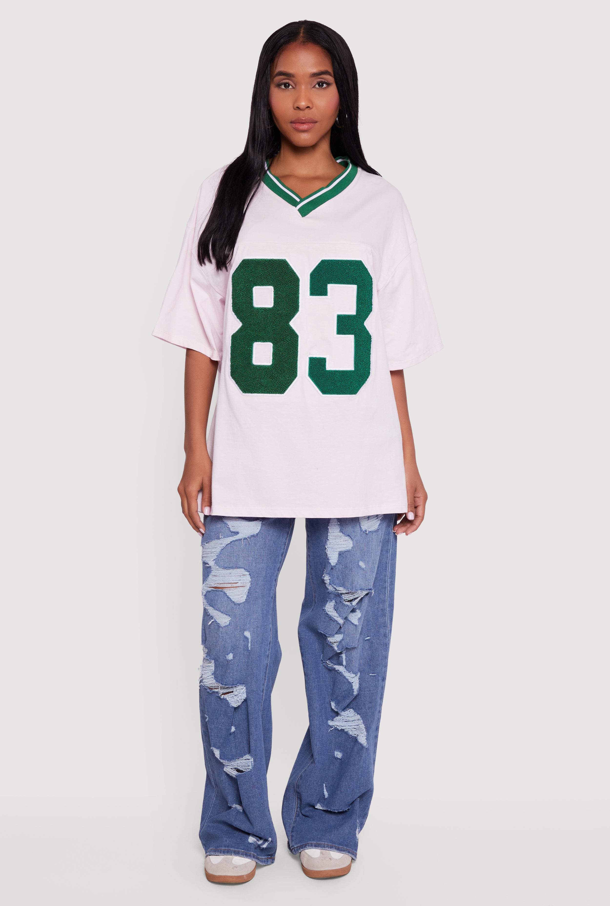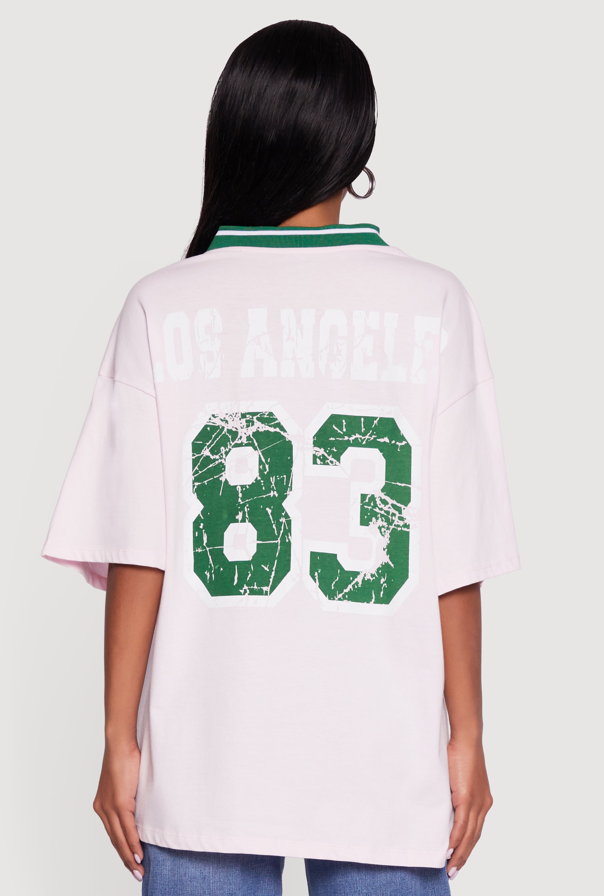 Step up your casual game with the Los Angeles 83 Chenille Patch Graphic Oversized Tee. This classic fit tee brings streetwear vibes with a cozy chenille patch that pops against the soft fabric. The relaxed oversized silhouette and drop shoulder design keep it effortlessly cool and comfy, while the V-neck adds a flattering touch. Perfect for laid-back days or weekend hangouts, this tee is your new go-to for easy style that stands out.
