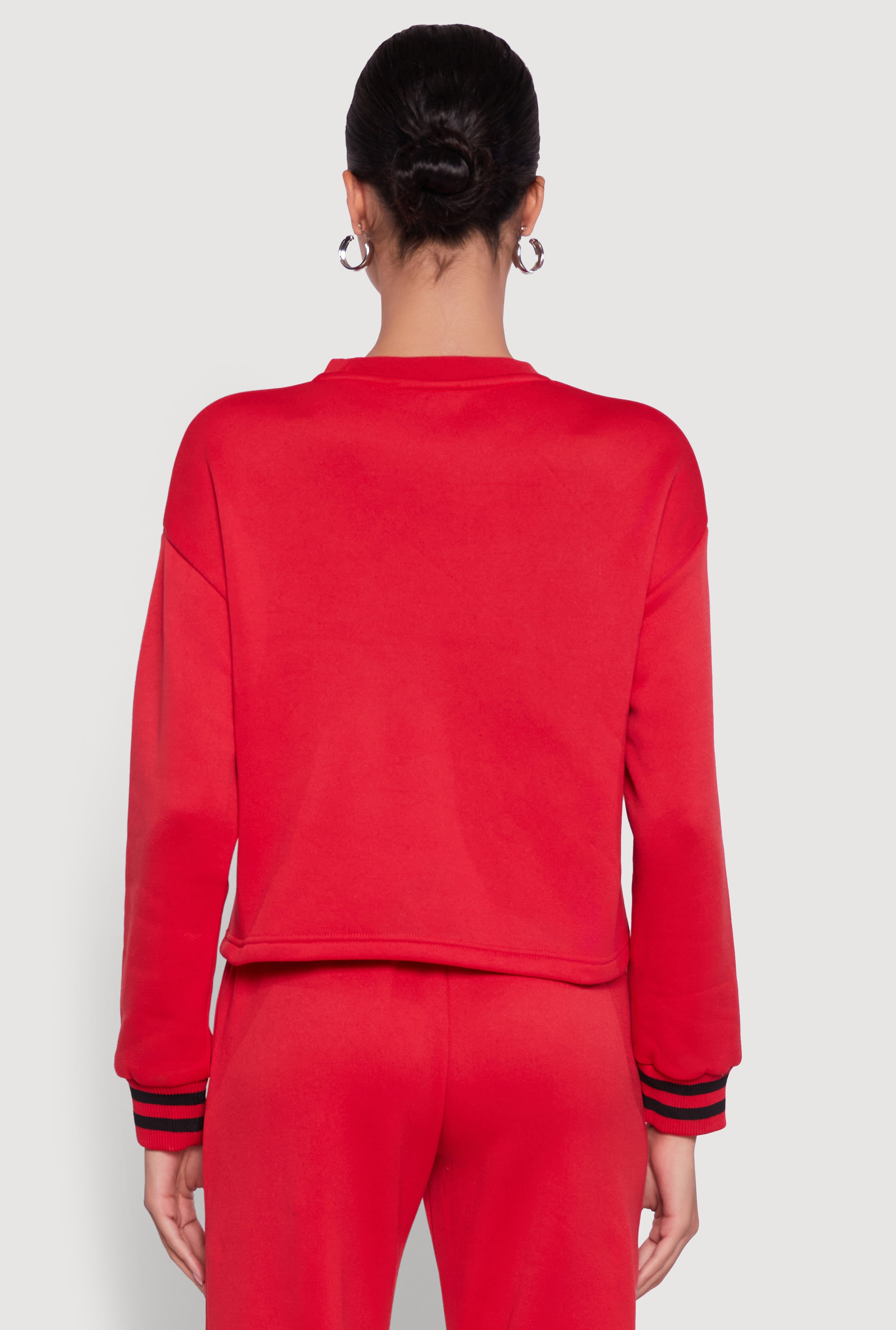 Stay cozy and cool with the 83 Graphic Long Sleeve Pullover Sweatshirt. This classic fit sweatshirt blends timeless style with a fresh varsity vibe, making it your new go-to for casual days and athleisure looks. The bold "83" graphic adds just the right amount of edge without trying too hard. Whether you're lounging at home or stepping out with friends, this fleece-lined pullover has your comfort and style covered.