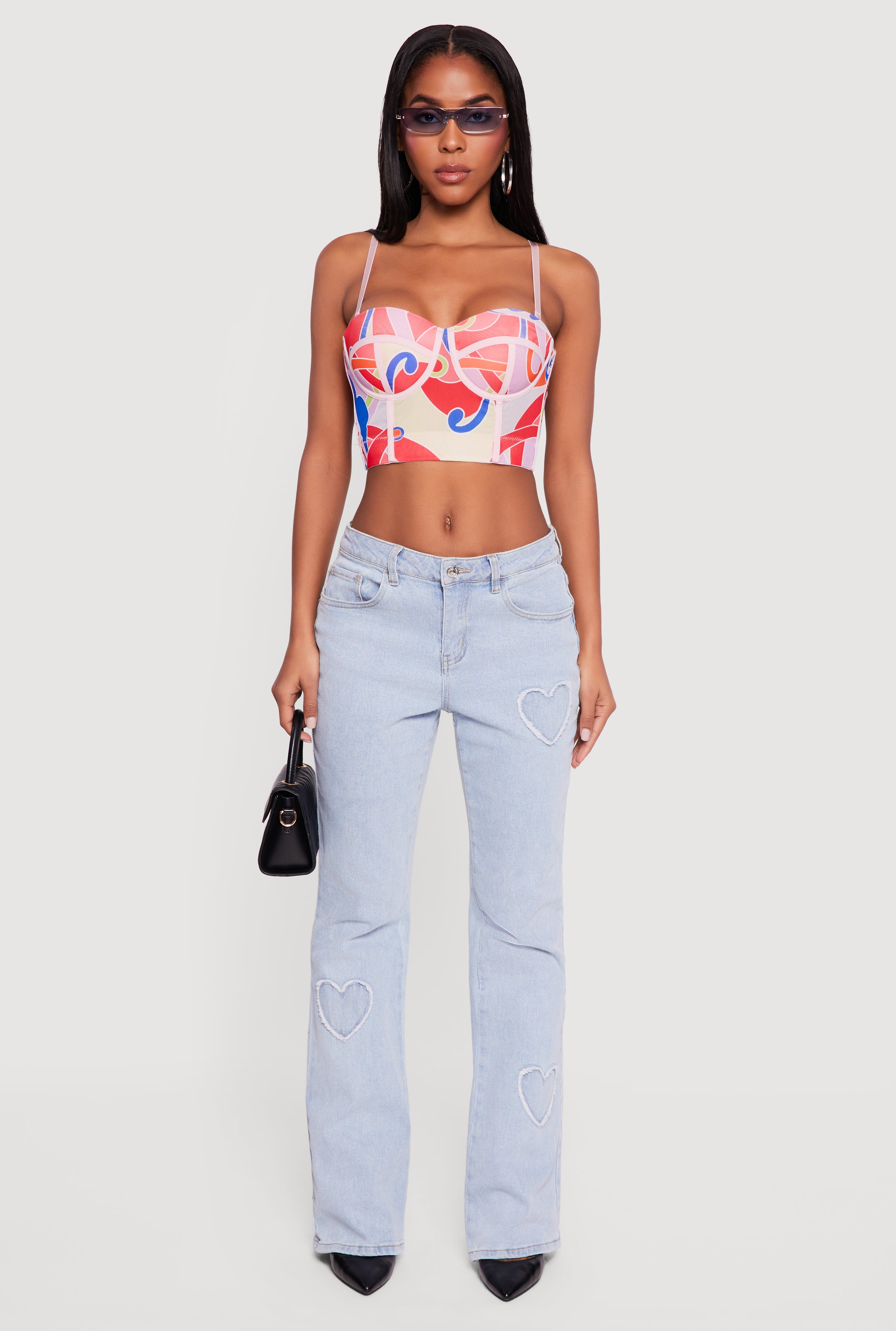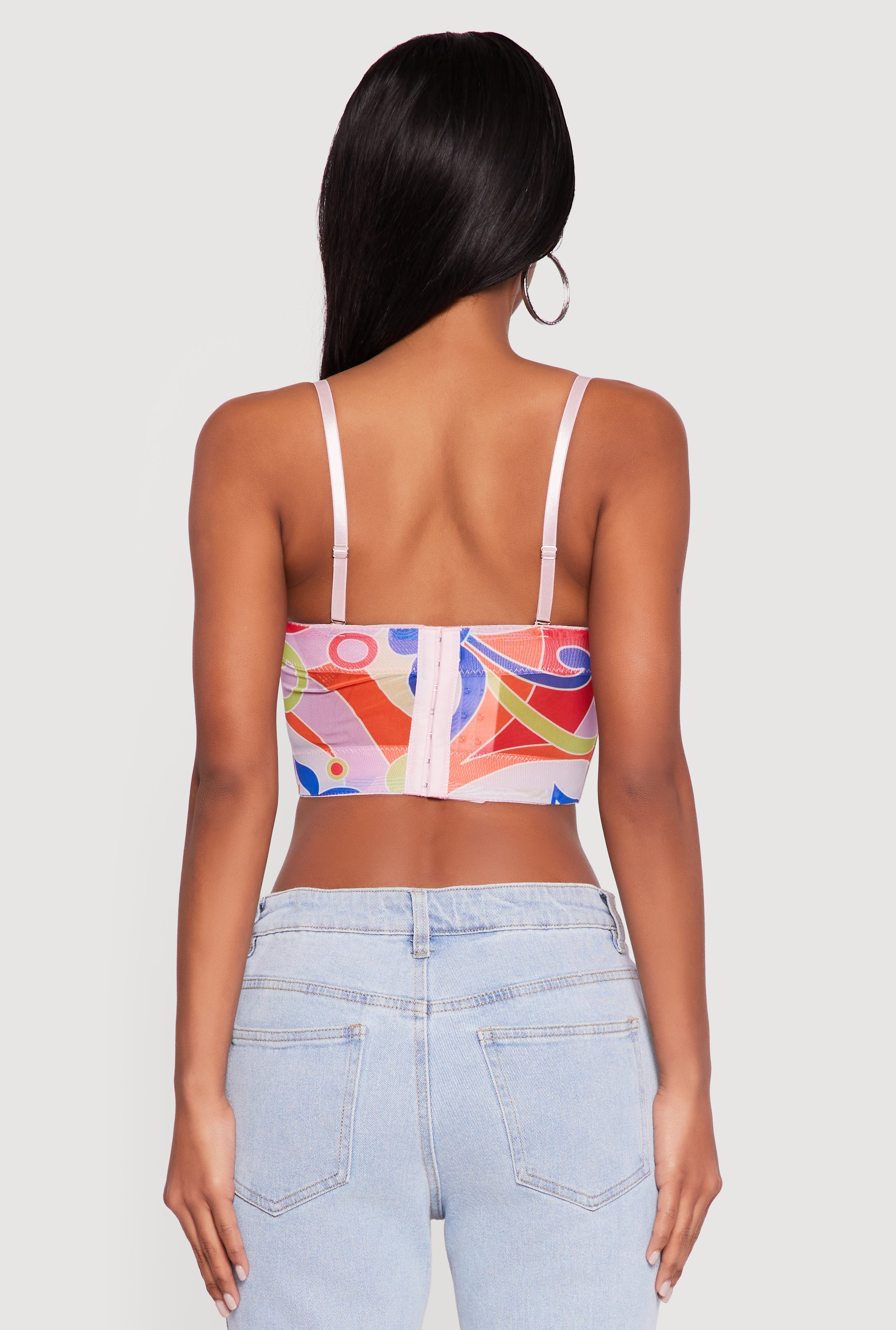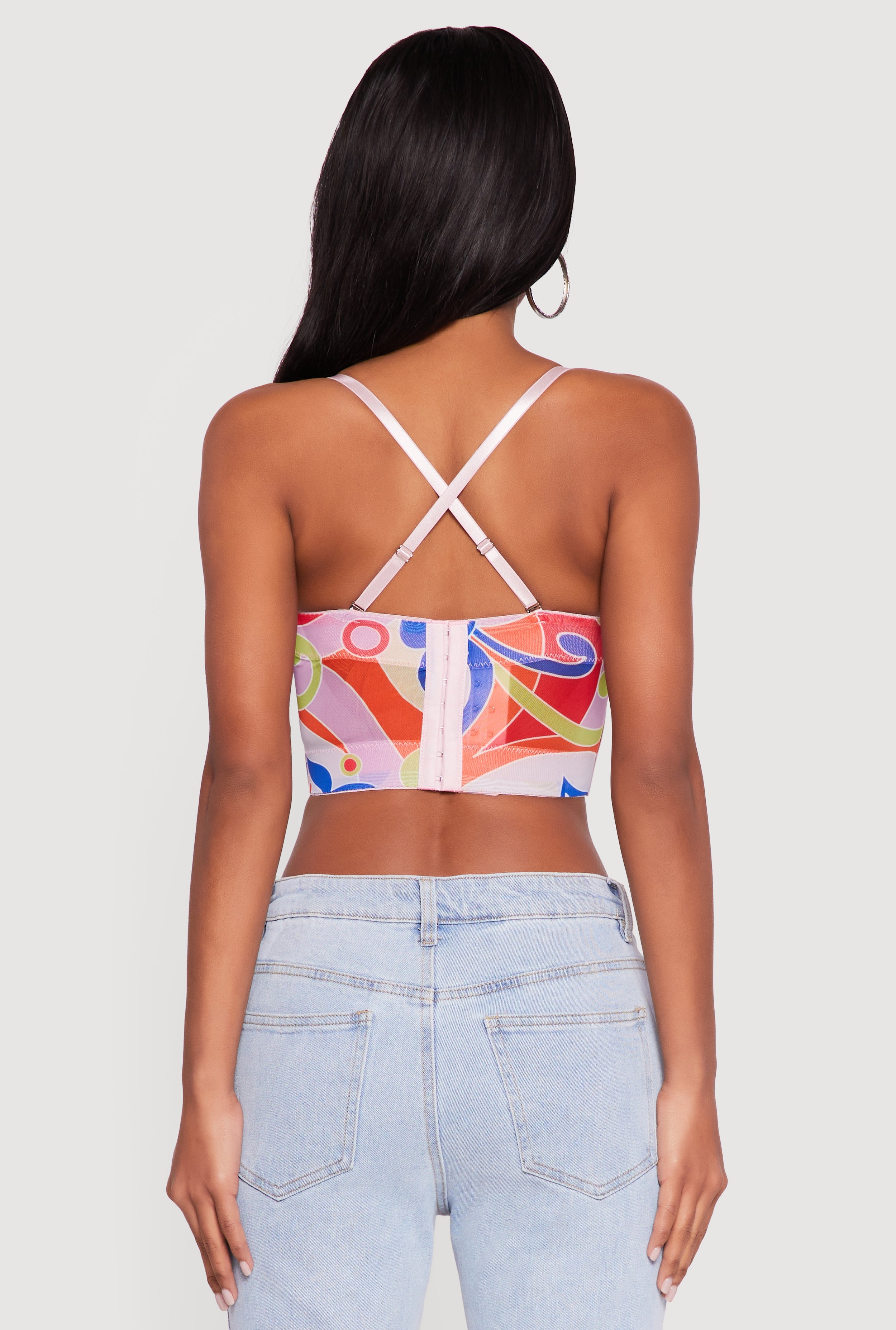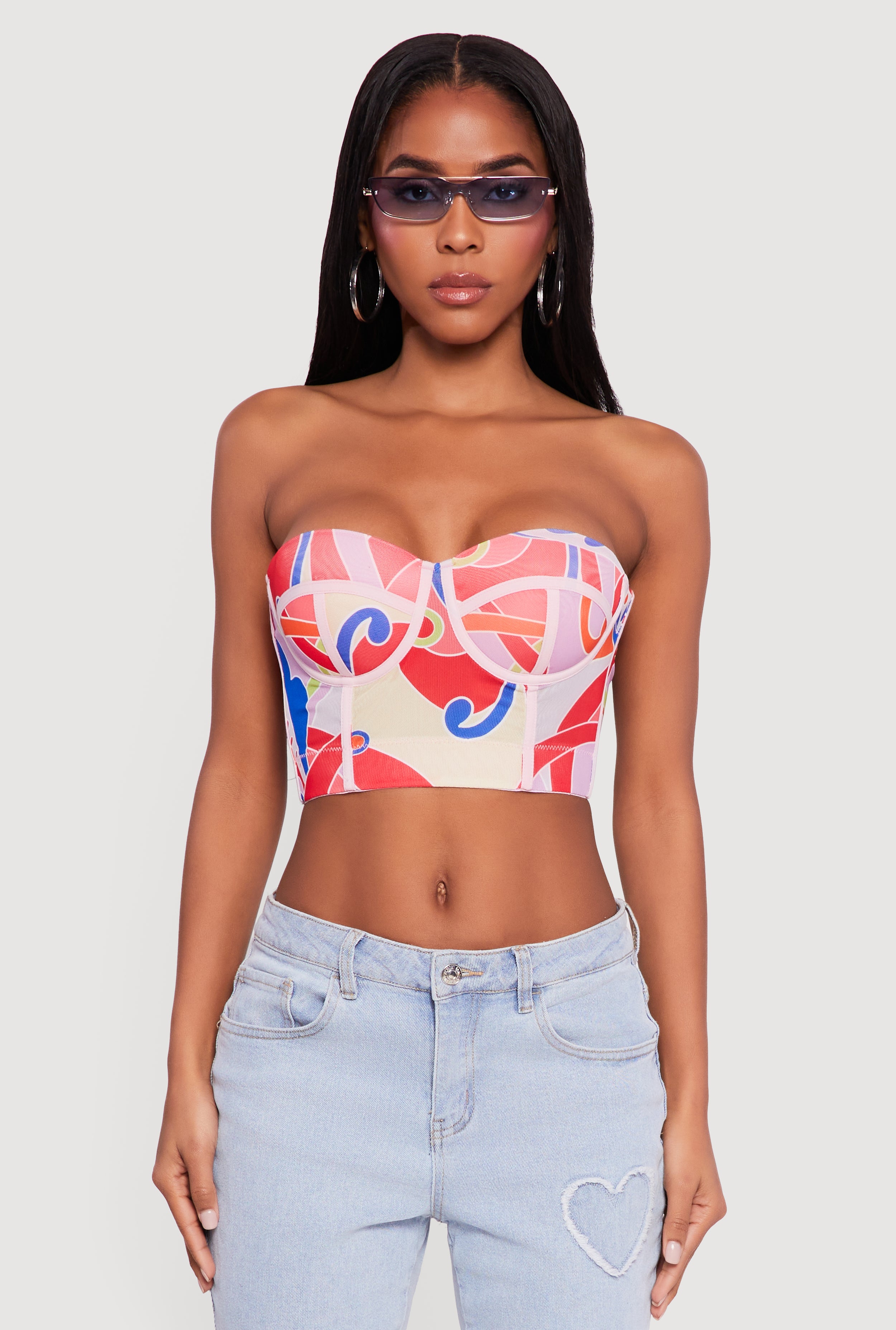 Turn heads and embrace your bold side with the Abstract Print Convertible Bustier Top. This cropped curve-hugging, mesh beauty features a flirty sweetheart neckline and a vibrant printed pattern that’s perfect for festivals, parties, or a night out. Designed with padded cups, underwire support, and boning, it offers shape and lift while keeping you comfortable. Plus, the adjustable straps convert it to strapless, giving you versatile styling options to match your mood and occasion.