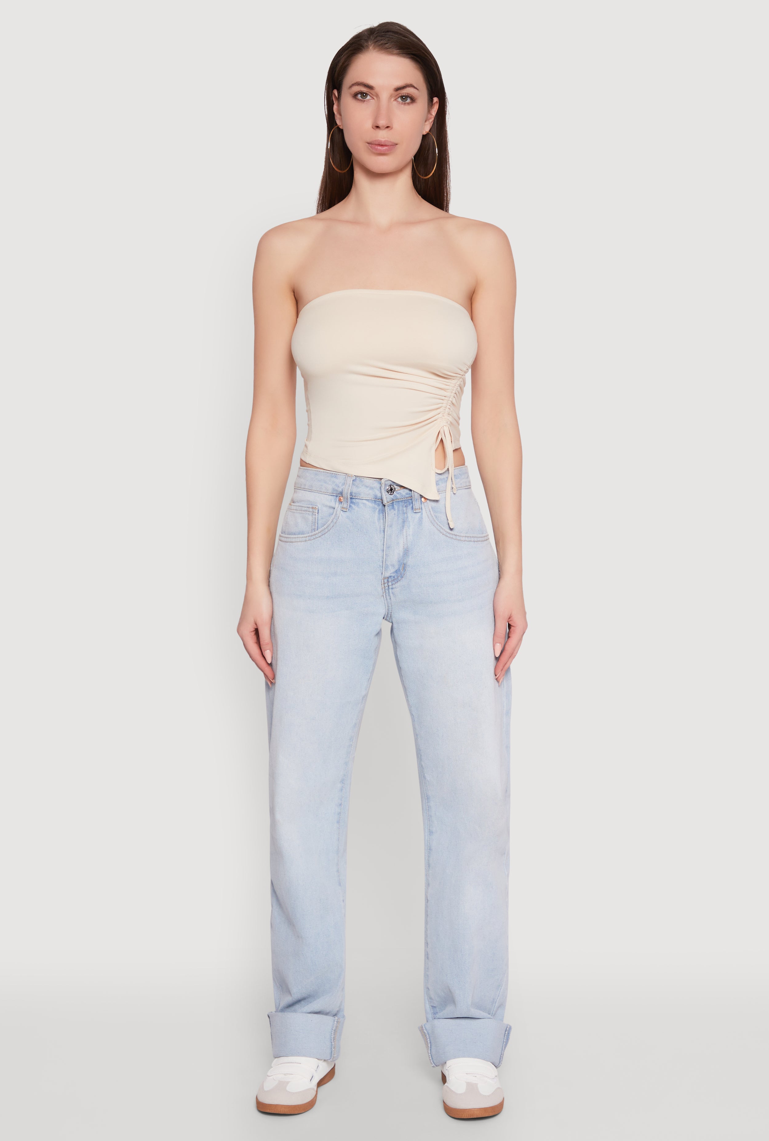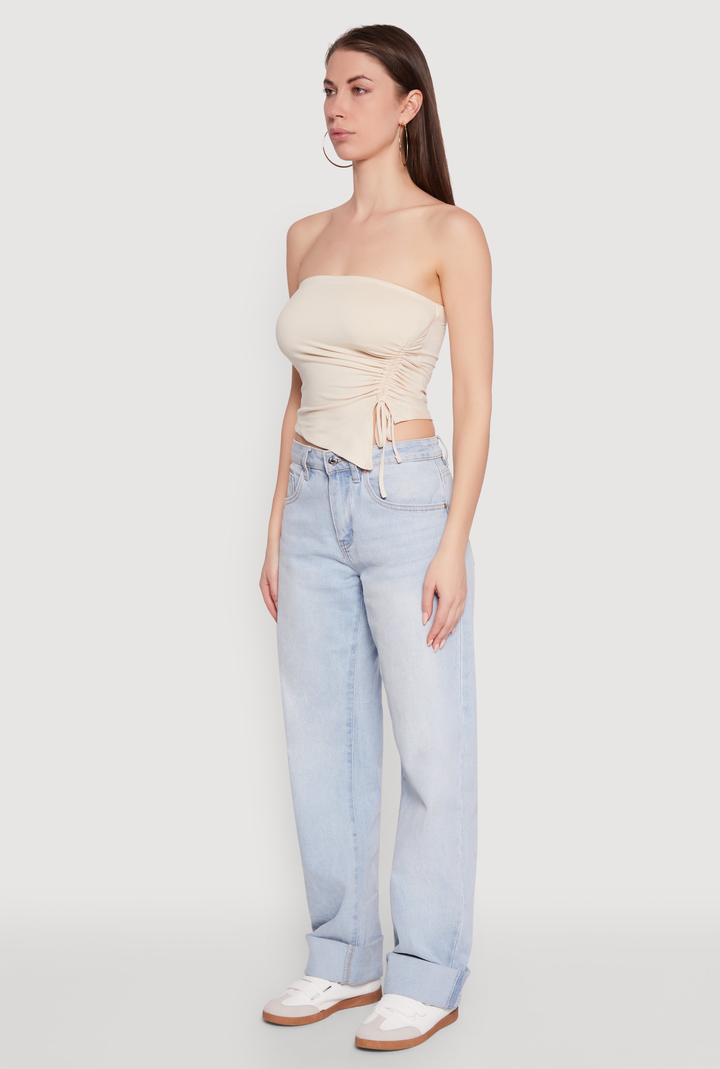 Elevate your wardrobe with the chic tube top, a trendy asymmetrical design, and flattering ruching details. Perfect for turning heads on a night out or adding a fresh vibe to your casual look, this sleeveless, strapless piece is a must-have for fashion-forward women who love to stand out. Its classic fit and cropped hem give you effortless, chic, and comfortable style—because looking good should never be complicated.
