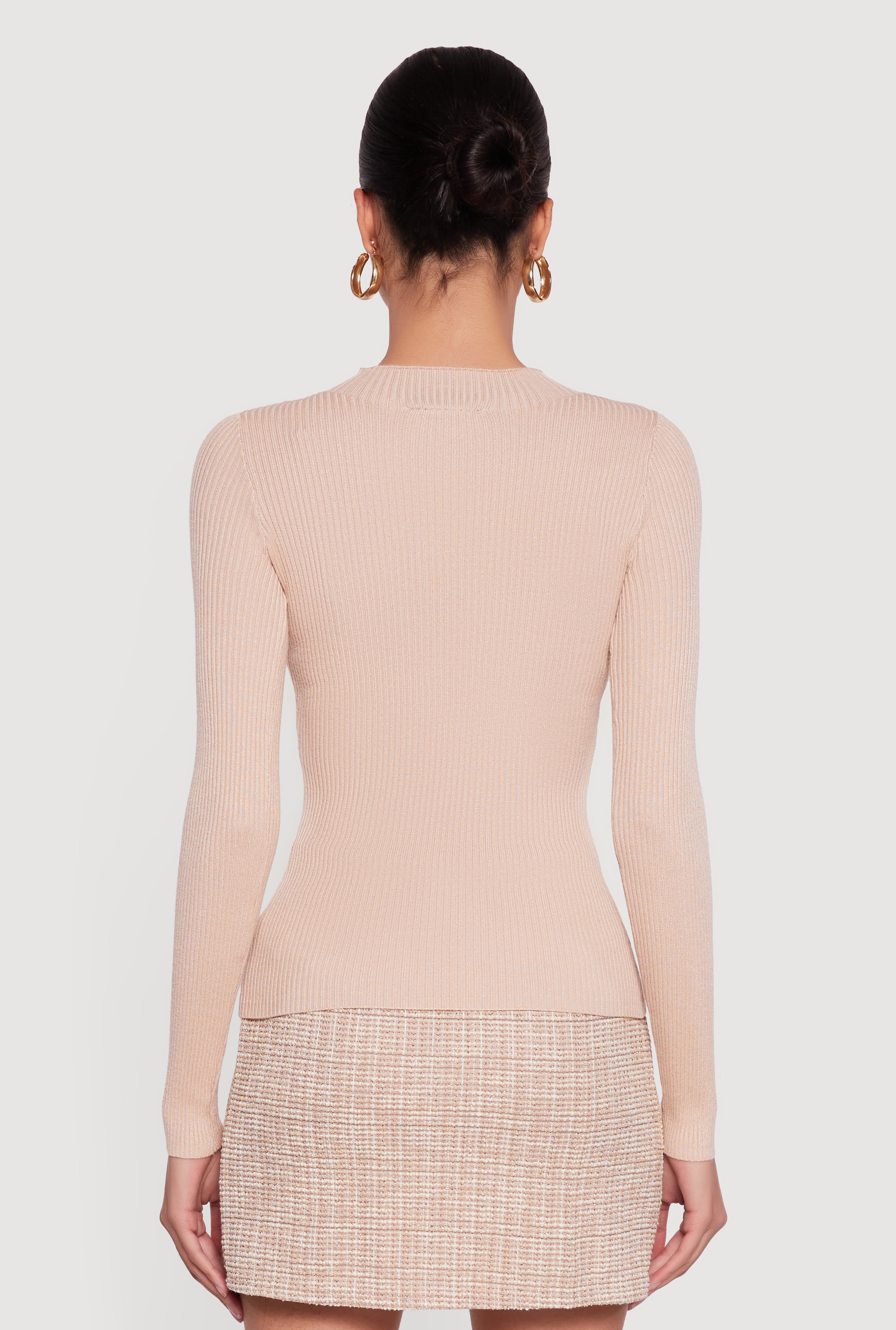 Step up your casual wardrobe with this Metallic Button Detail Rib Knit High Neck Sweater. Featuring a classic fit and a sleek high neck, this ribbed knit pullover combines cozy comfort with subtle style. The metallic button accents add a touch of shine that makes this sweater a standout piece without trying too hard. Perfect for layering or wearing solo, it’s your go-to for effortless everyday chic.