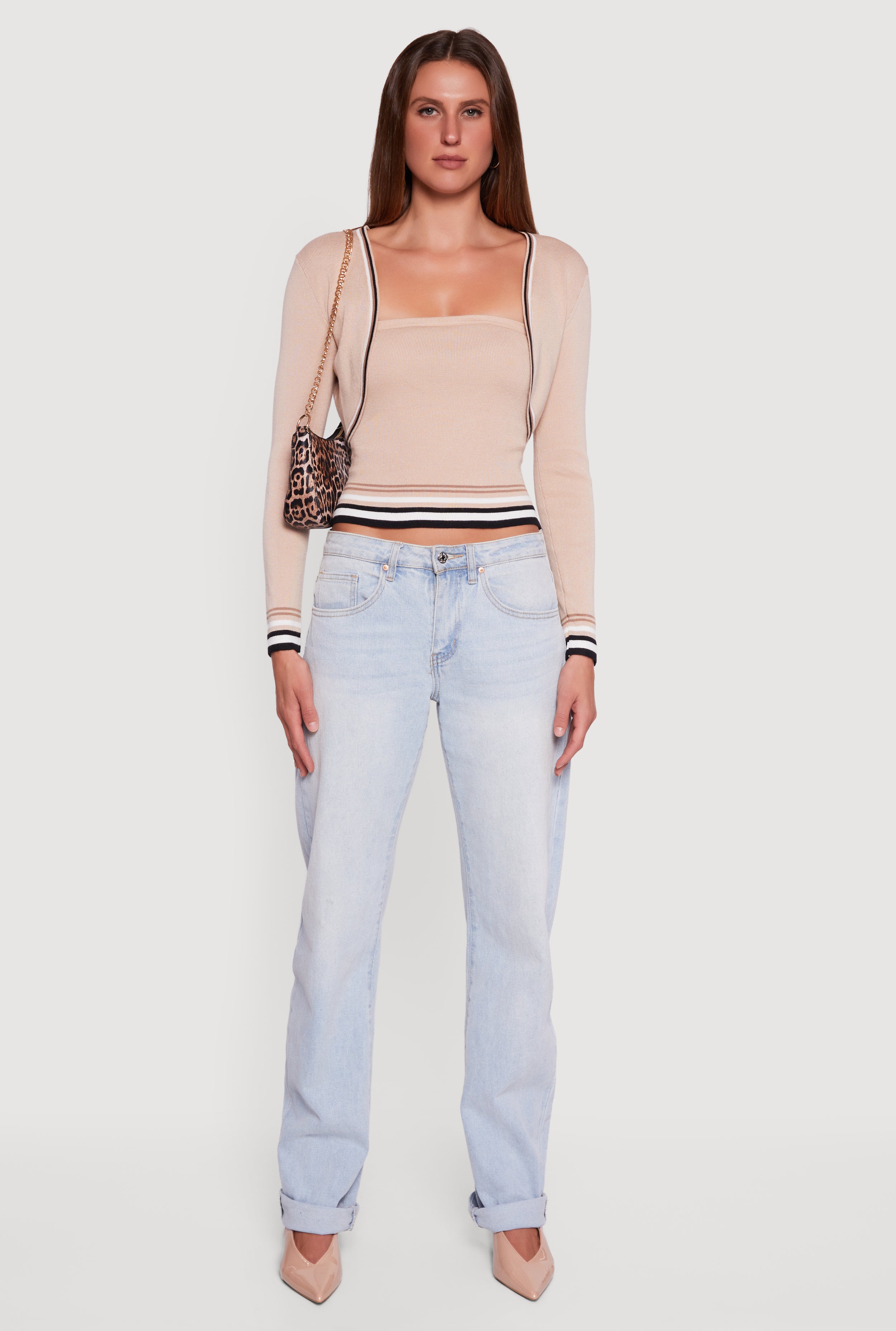 • Contrast Trim Bolero Cardigan and Sweater Tube Top