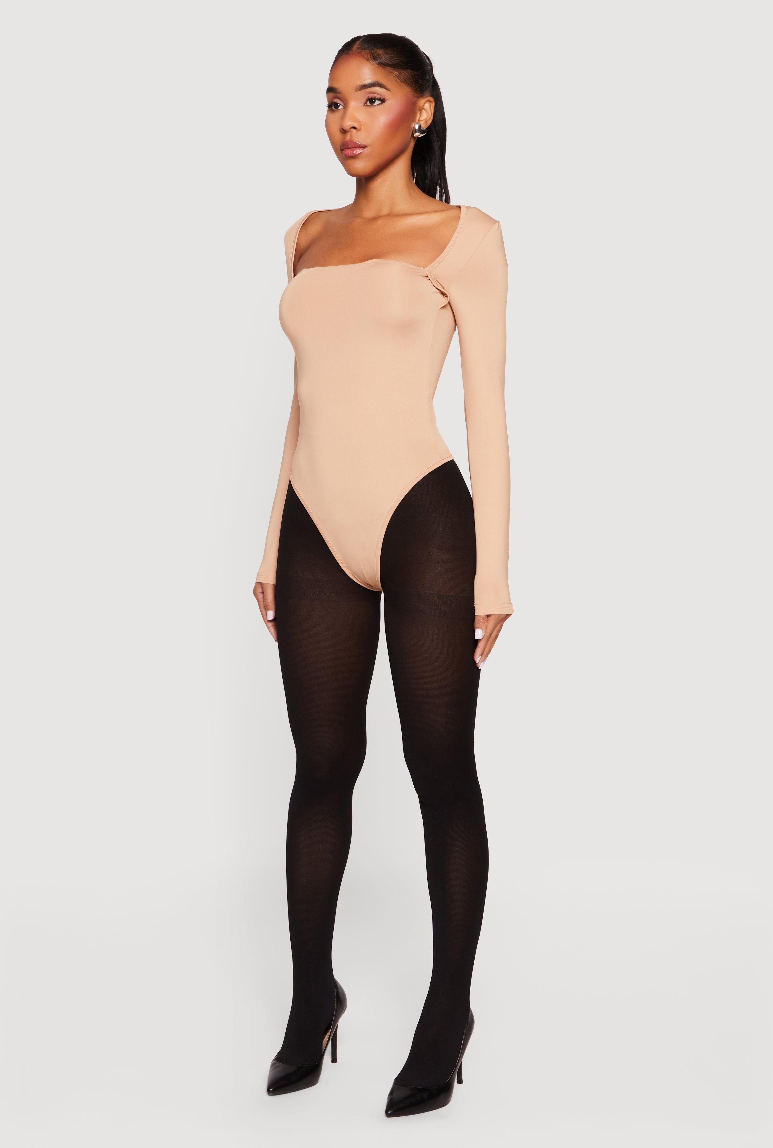 Step up your style game with this Solid Long Sleeve Square Neck Bodysuit designed to hug your curves and keep you looking effortlessly chic. Perfect for casual days, festivals, nights out, or parties, this bodysuit combines comfort and style with a sleek square neckline and a thong snap closure for a seamless fit you can move in all day and night.