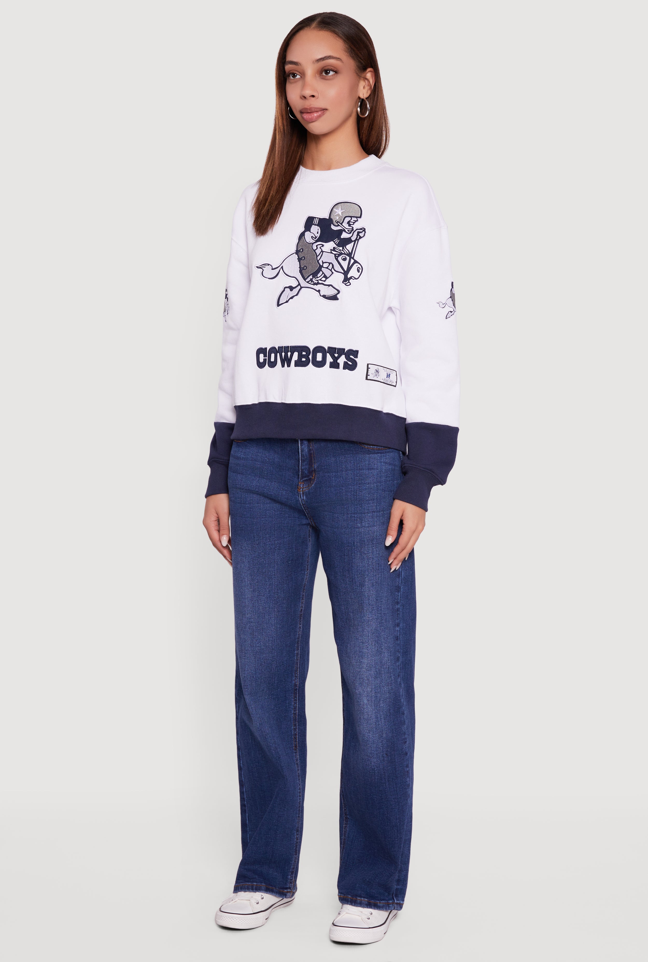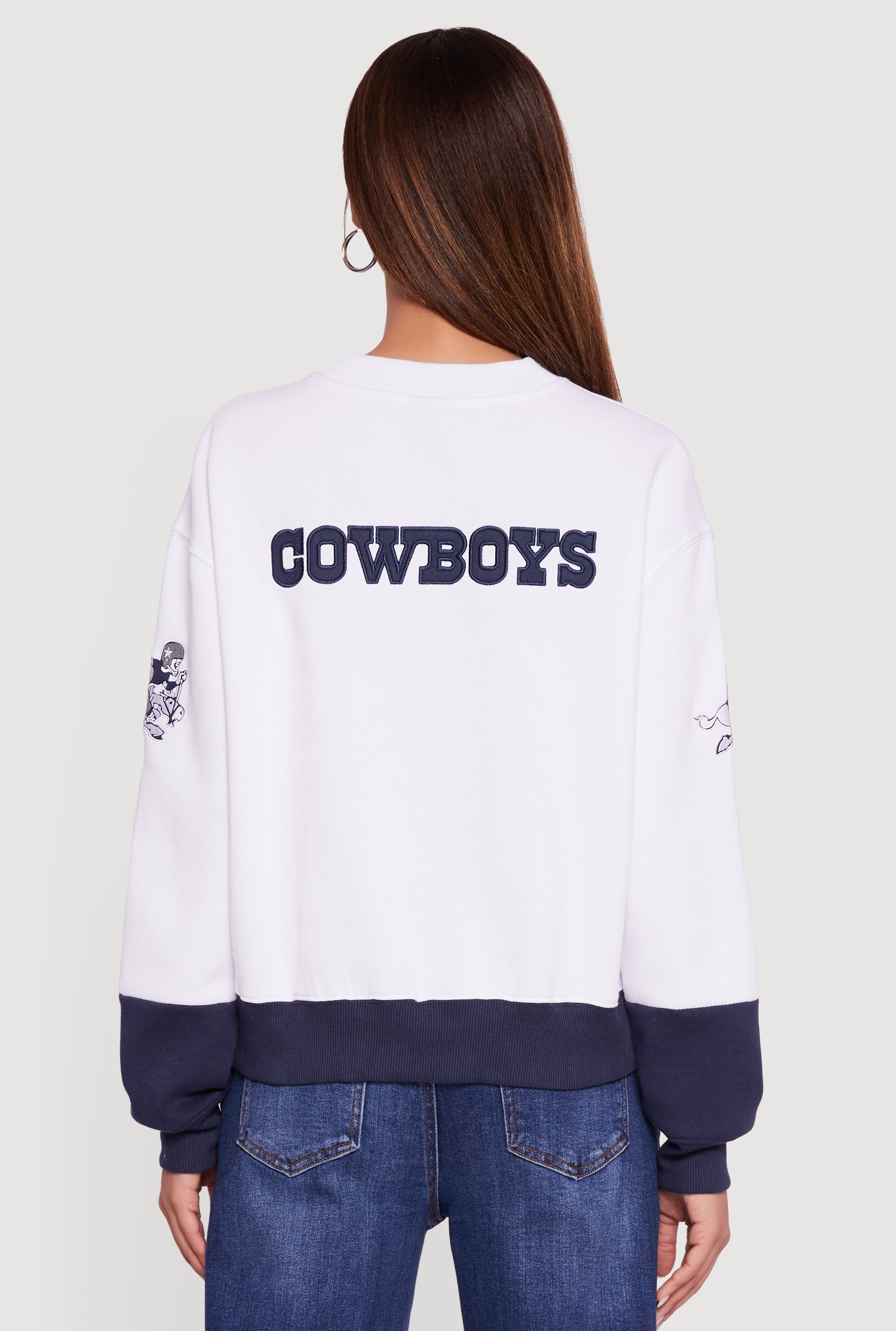 Show off your team spirit with the Dallas Cowboys Pullover Sweatshirt, designed for comfort and style. This relaxed fit, long sleeve crew neck sweatshirt is perfect for casual days or athleisure looks. Made from cozy fleece, it keeps you warm while the contrast trim and the Cowboys embroidered logo add a sporty edge. Whether you're cheering from the couch or out with friends, this sweatshirt has your back in style and comfort.