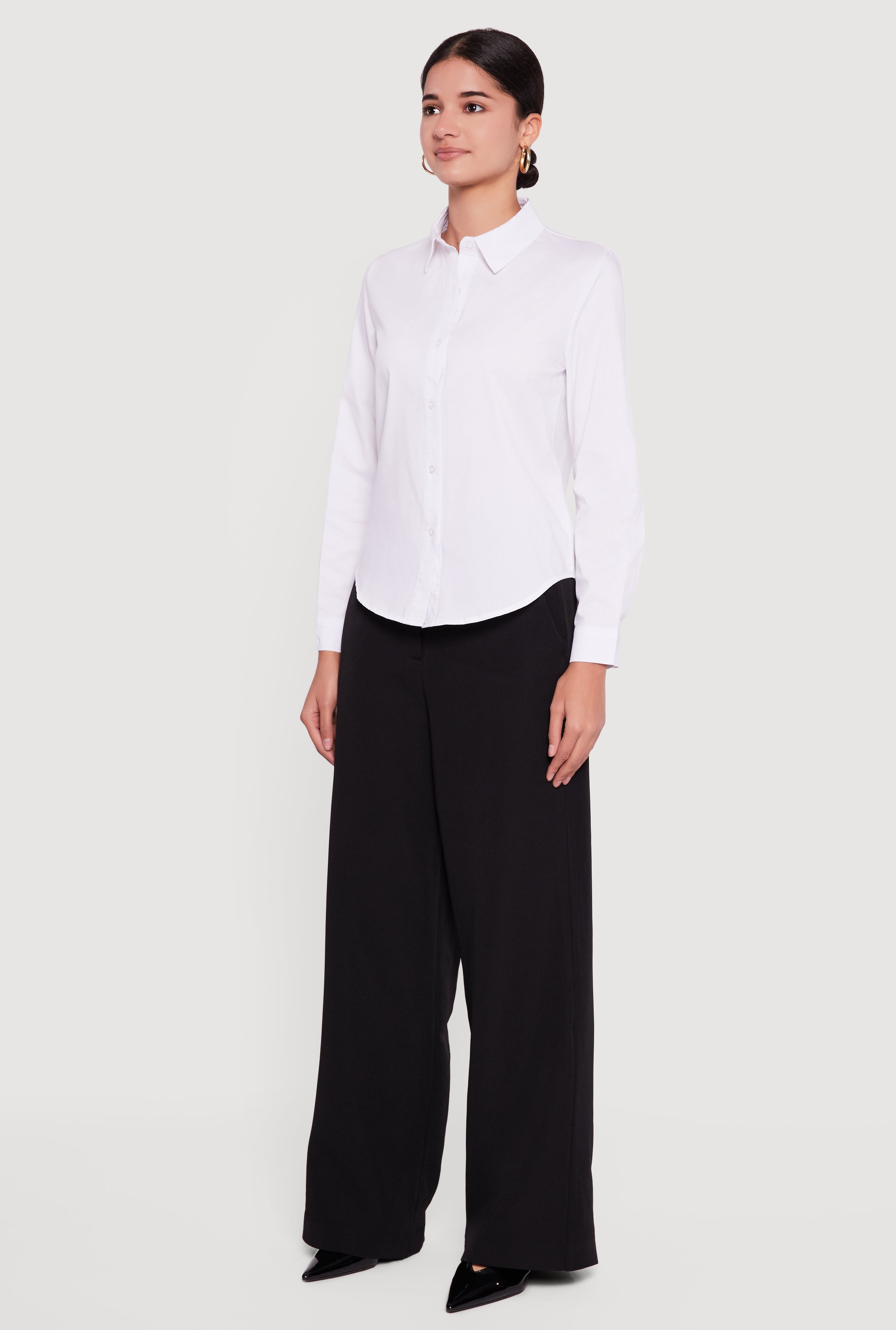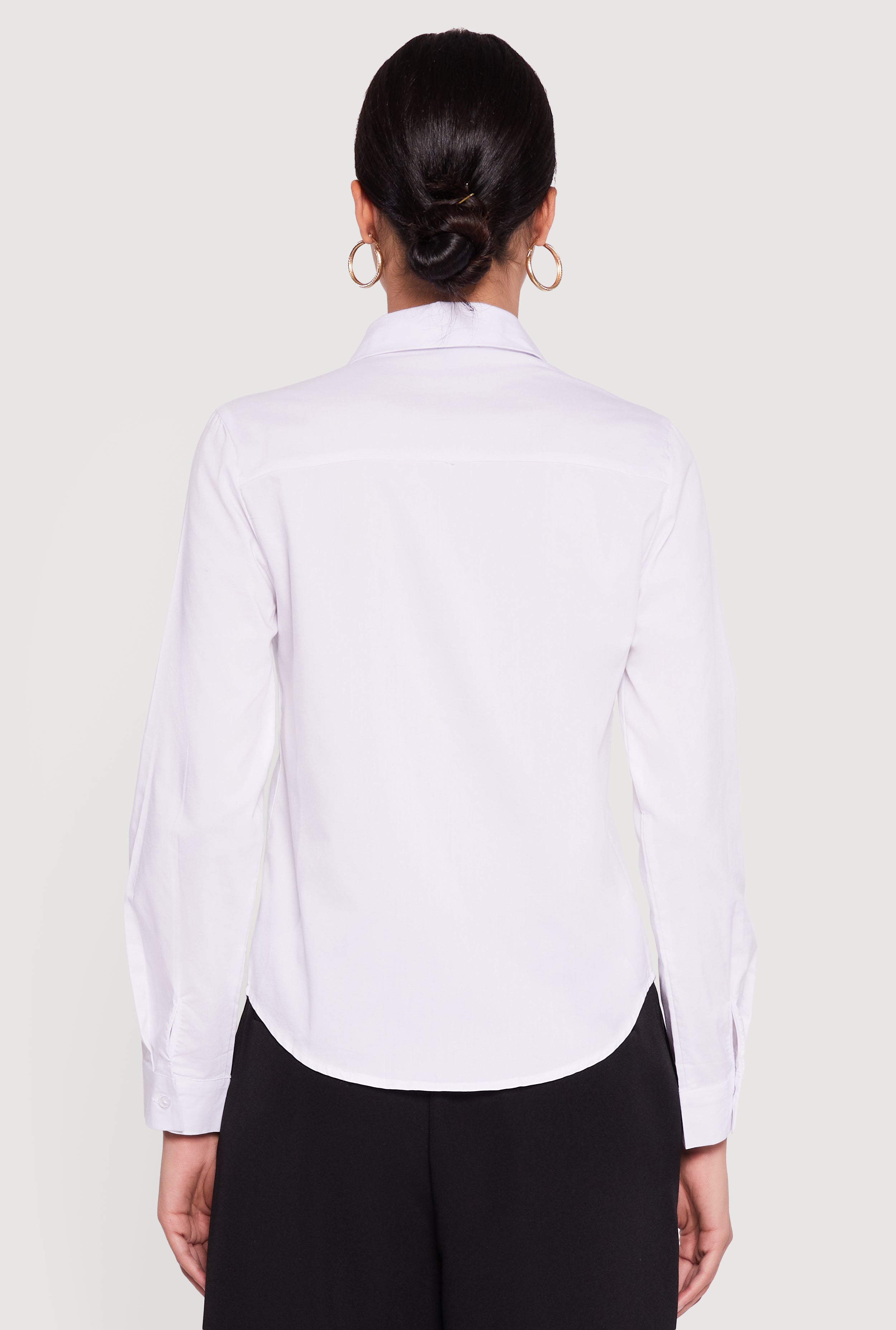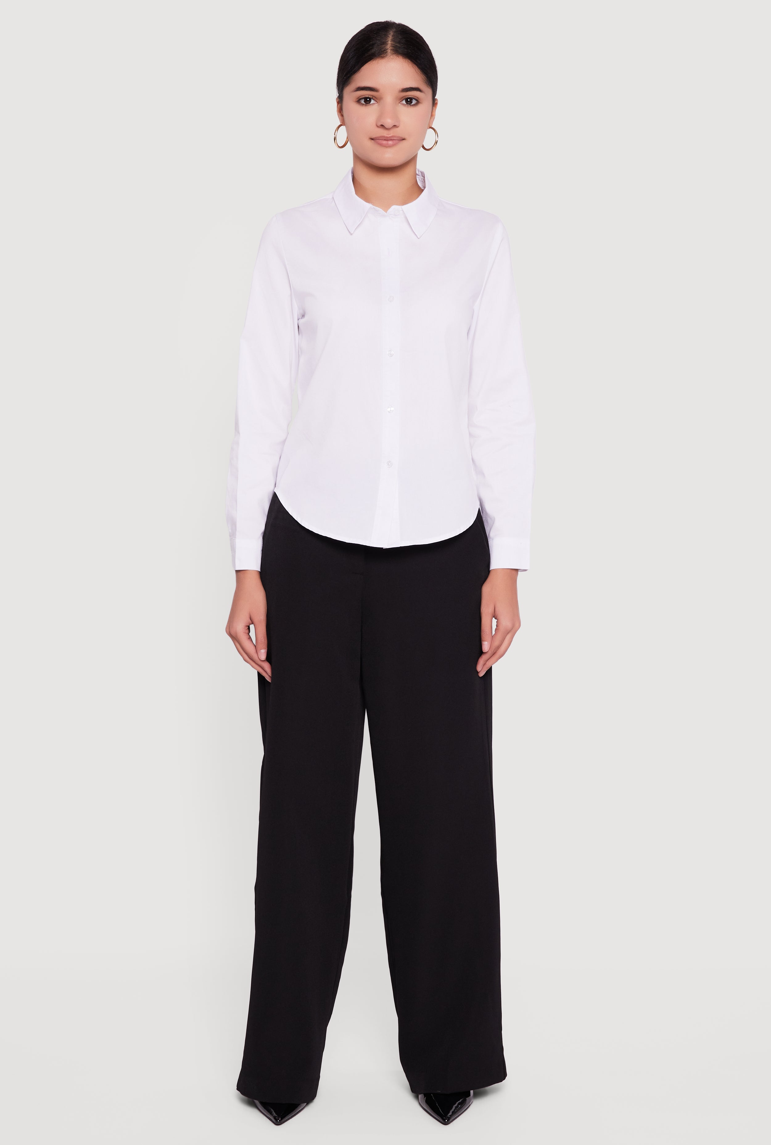 Upgrade your wardrobe with the Poplin Long Sleeve Button Front Shirt, a perfect blend of classic style and everyday comfort. Crafted from smooth poplin fabric, this shirt features a timeless classic fit and a sharp shirt collar that effortlessly transitions from casual hangouts to office vibes. The rounded hem adds a subtle twist to the traditional button-front design, making it a versatile staple you'll reach for again and again.