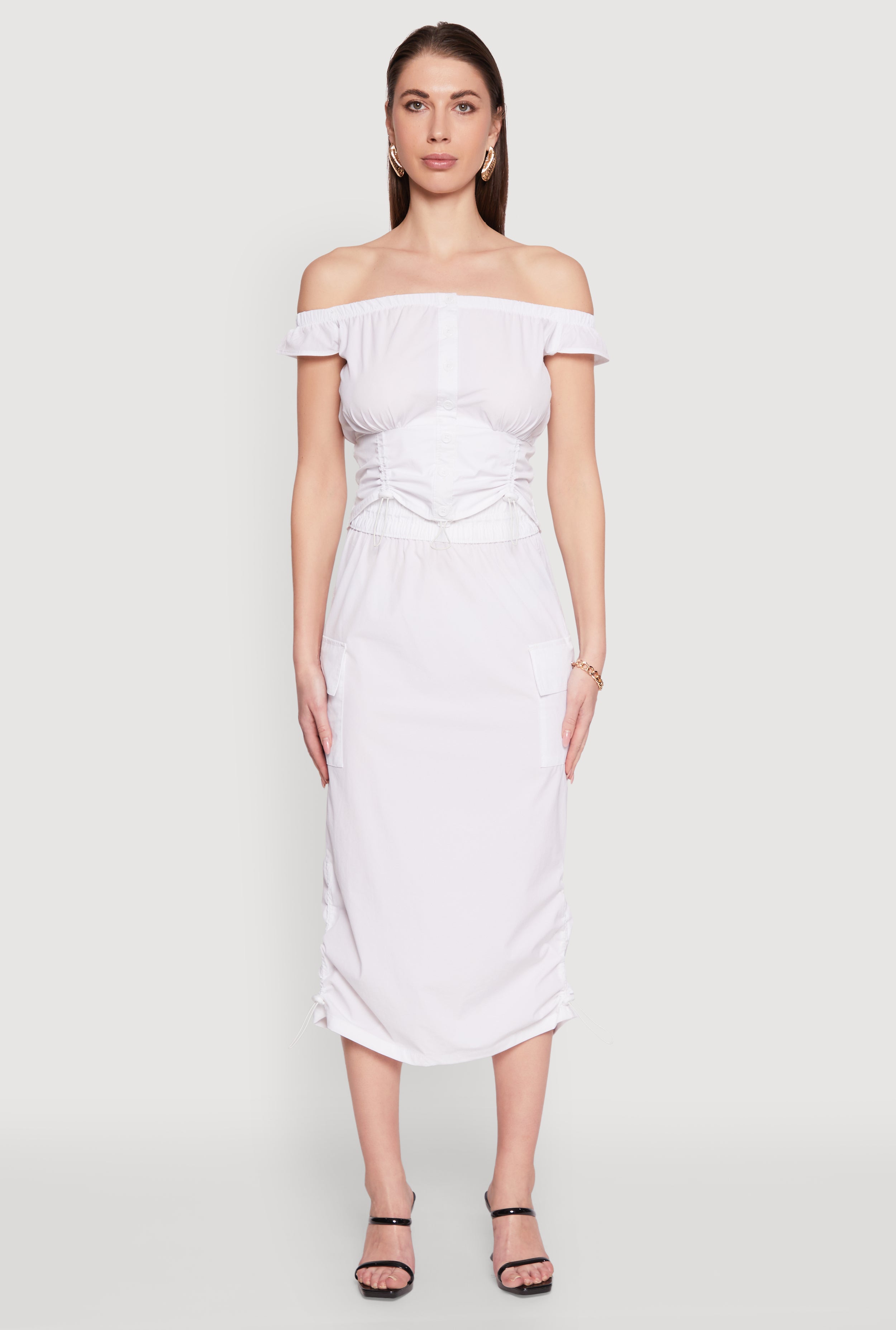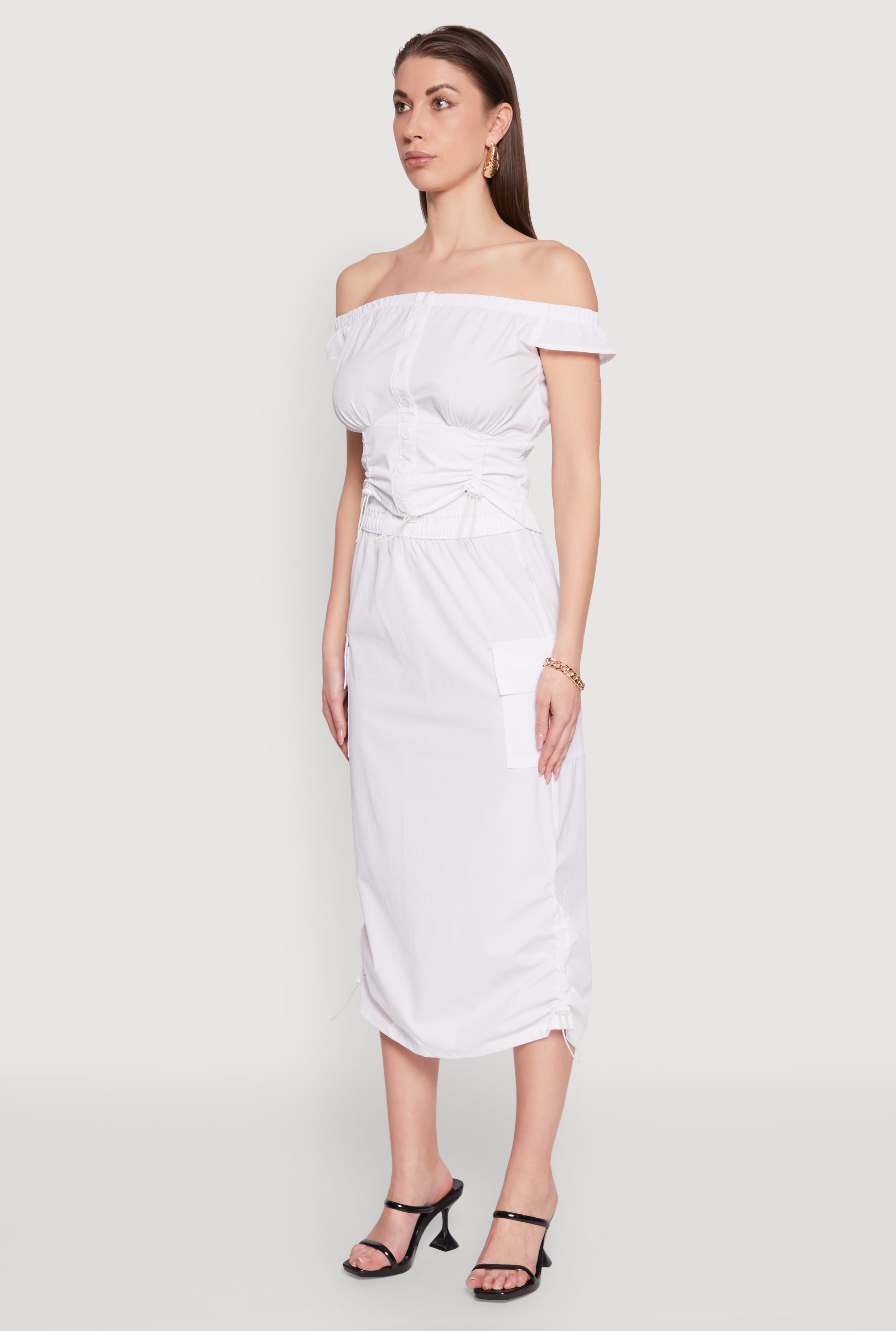 Toggle Drawstring Off The Shoulder Crop Top