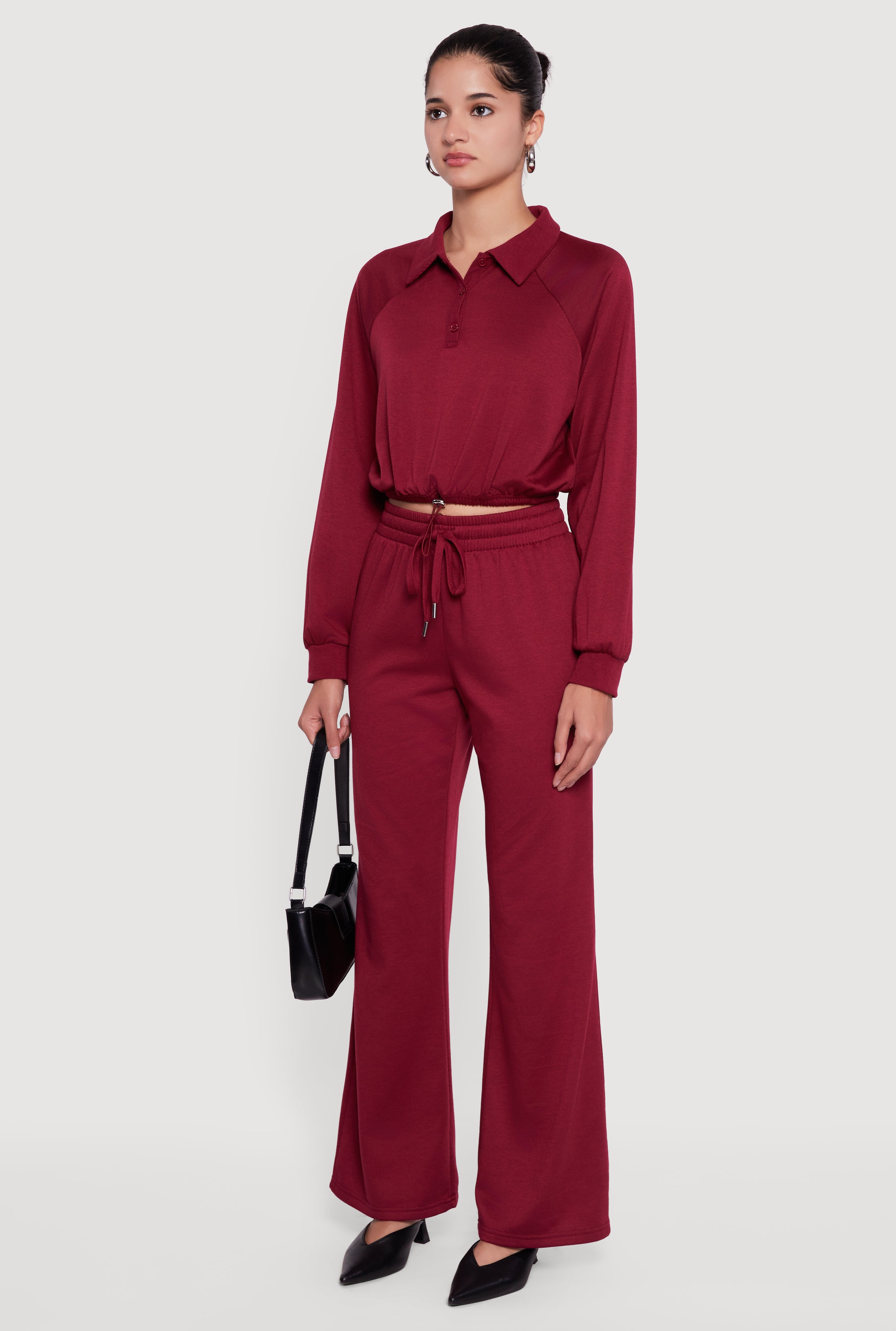 Step up your casual game with the Almost Famous Drawstring Hem Cropped Polo Sweatshirt. This cozy fleece sweatshirt features a classic polo collar and long raglan sleeves for a laid-back yet stylish vibe. The adjustable drawstring hem lets you customize your fit, making it perfect for layering or rocking solo. Whether you're chilling at home or out with friends, this cropped pullover combines comfort and cool effortlessly.