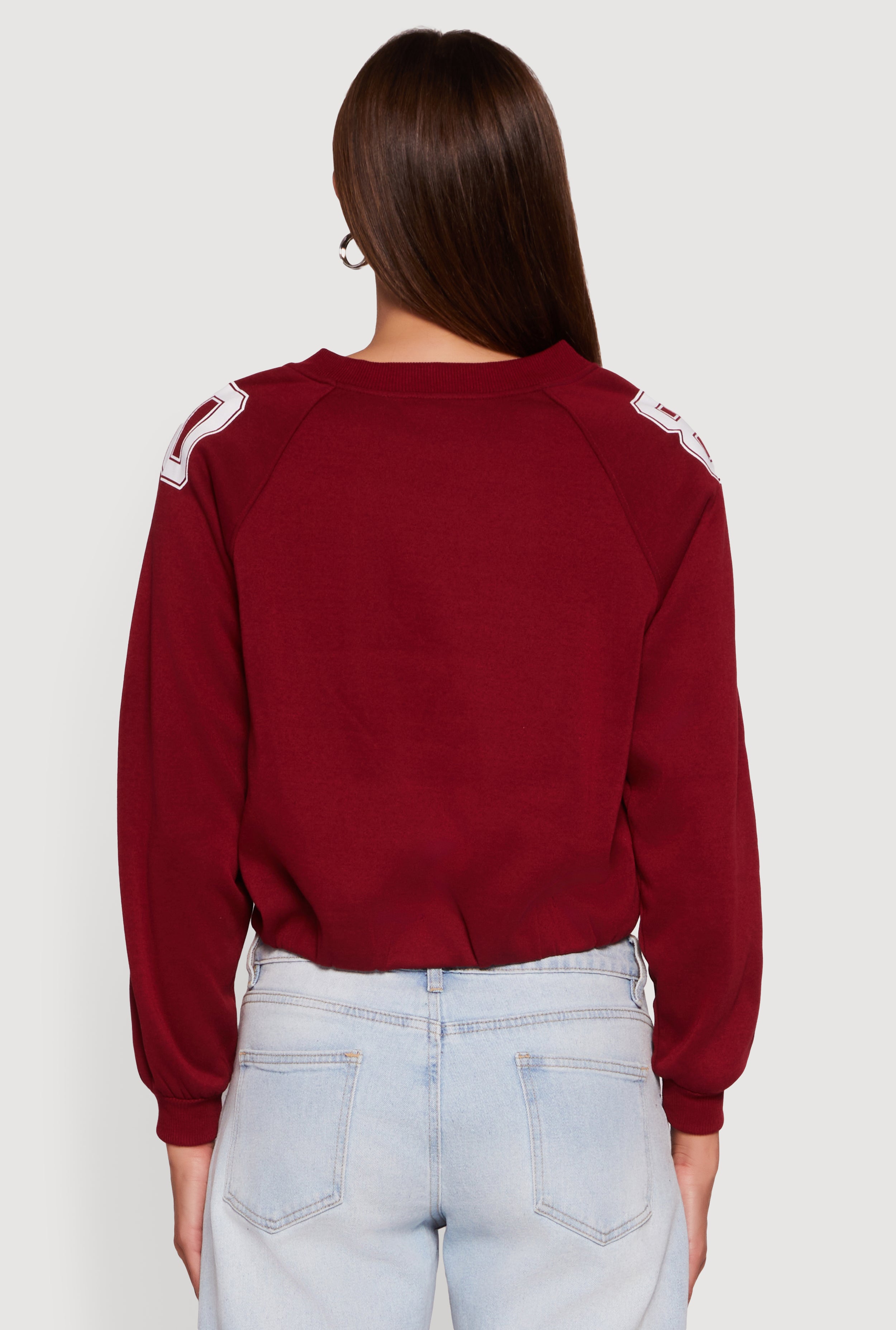 Step up your casual style game with the Almost Famous Elastic Hem Cropped Graphic Sweatshirt. Designed for those who love a laid-back vibe with a trendy twist, this fleece sweatshirt features a flattering cropped cut and a snug elastic hem that keeps your look fresh and comfy. The classic fit combined with balloon raglan sleeves and a cool V-neckline makes it your go-to for effortless athleisure or casual days out. Whether you're pairing it with high-waisted jeans or leggings, this graphic pullover adds just the right amount of edge to your everyday wardrobe.