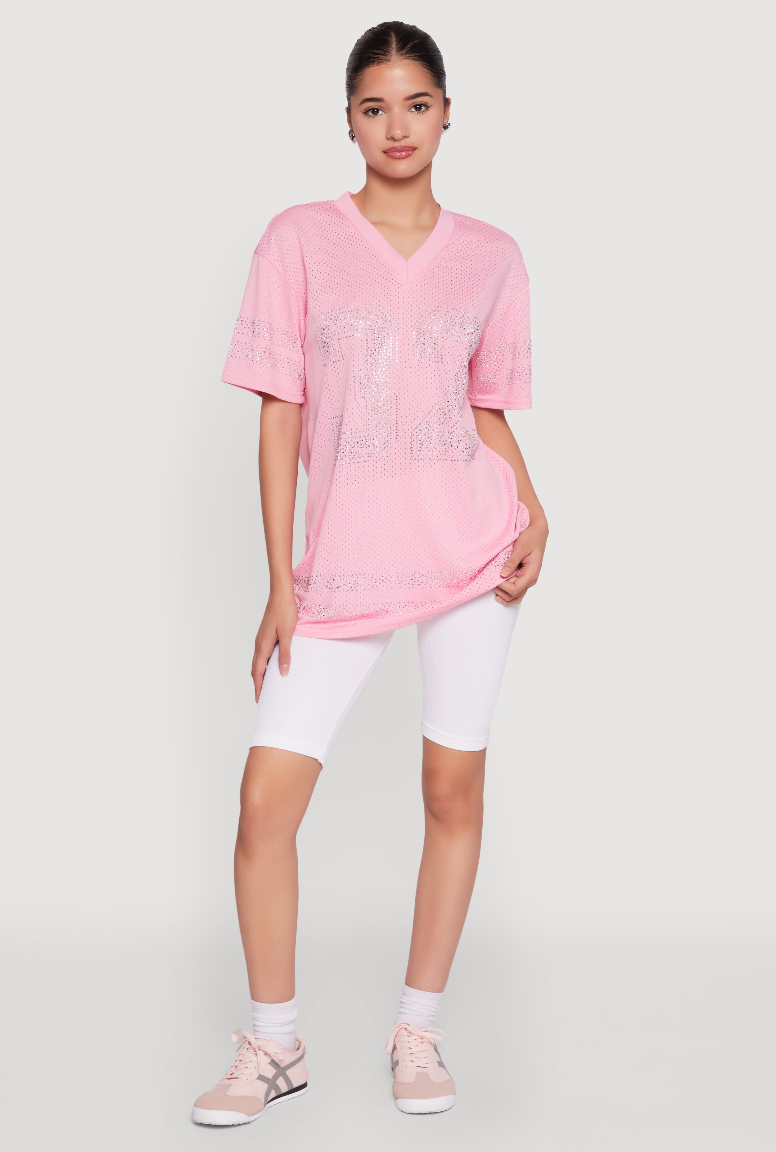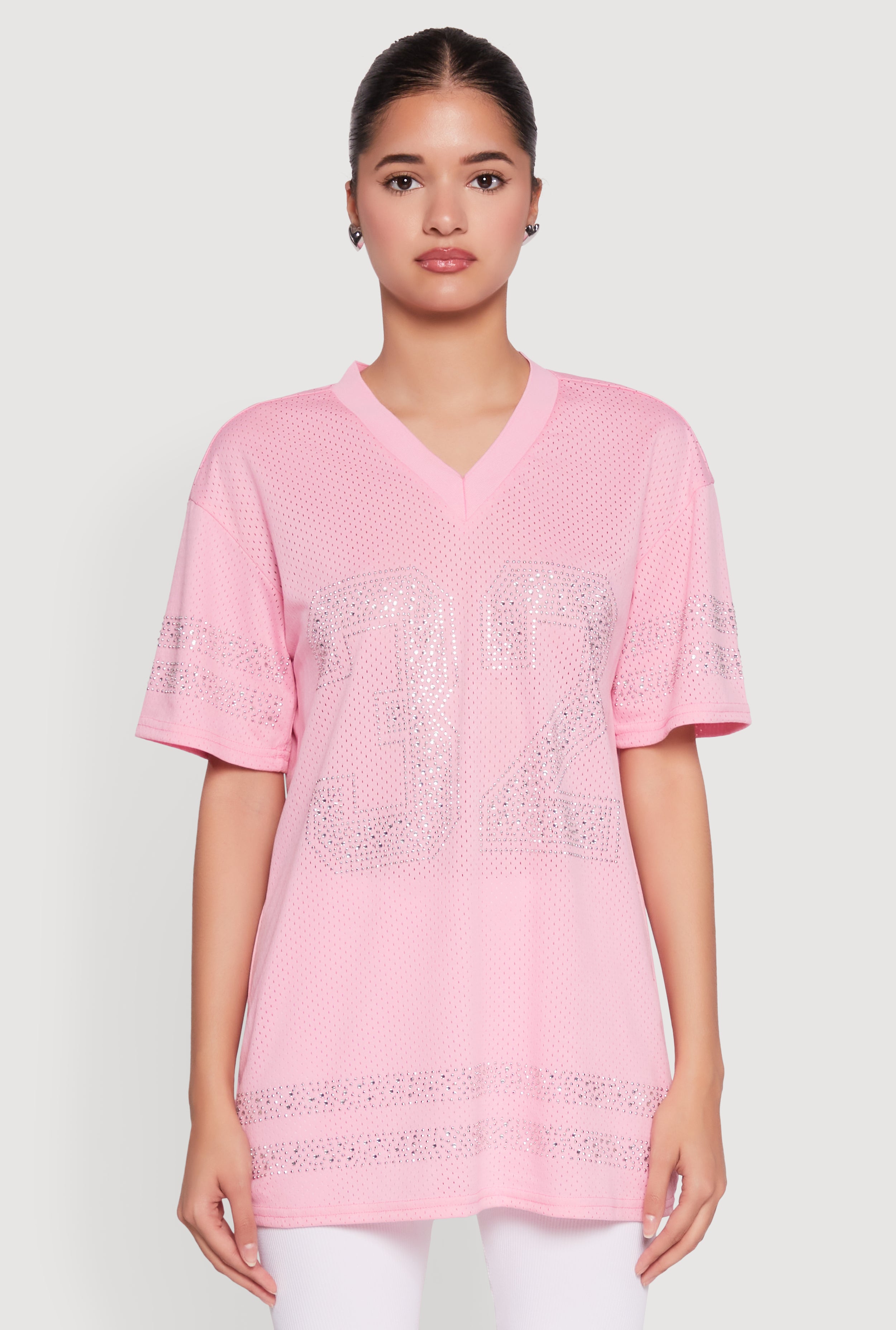 Rhinestone Graphic Short Sleeve Jersey Top
