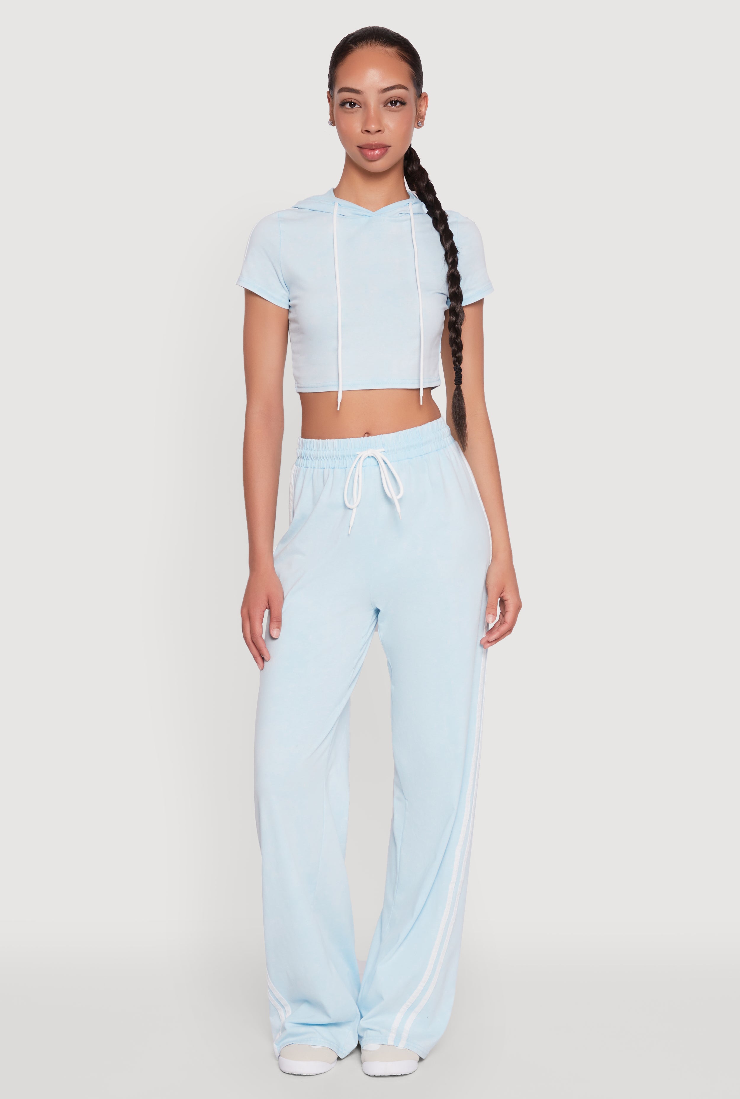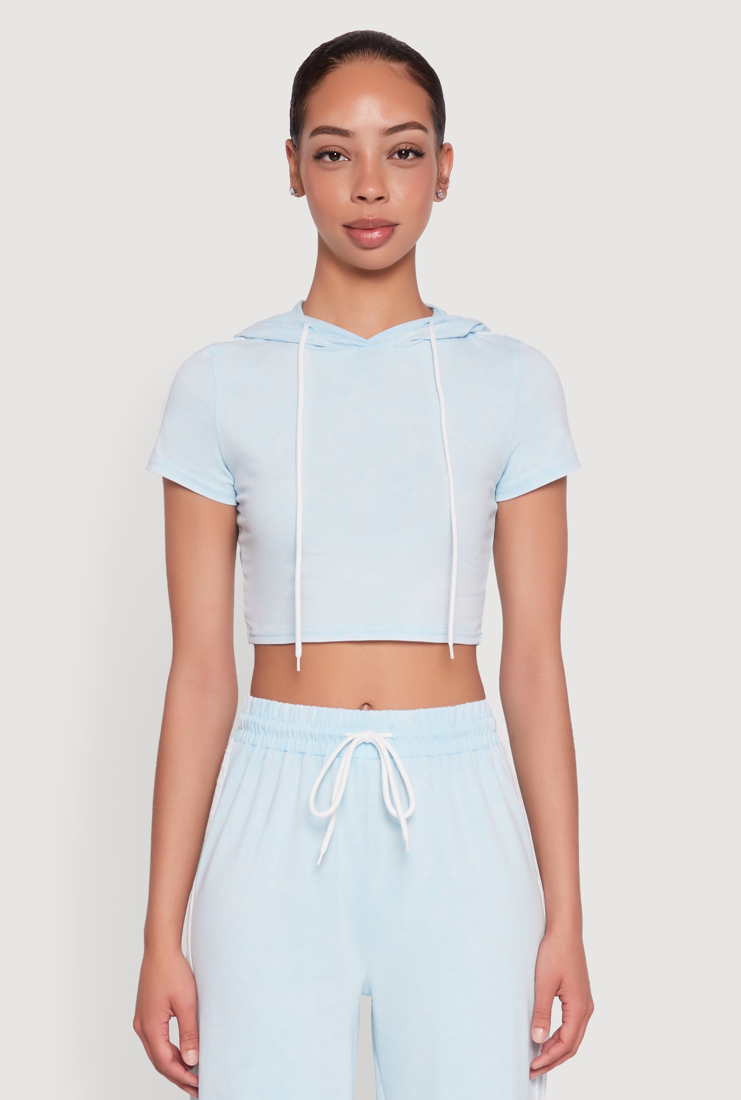 Daisy Mineral Wash Varsity Stripe Hooded Crop Top