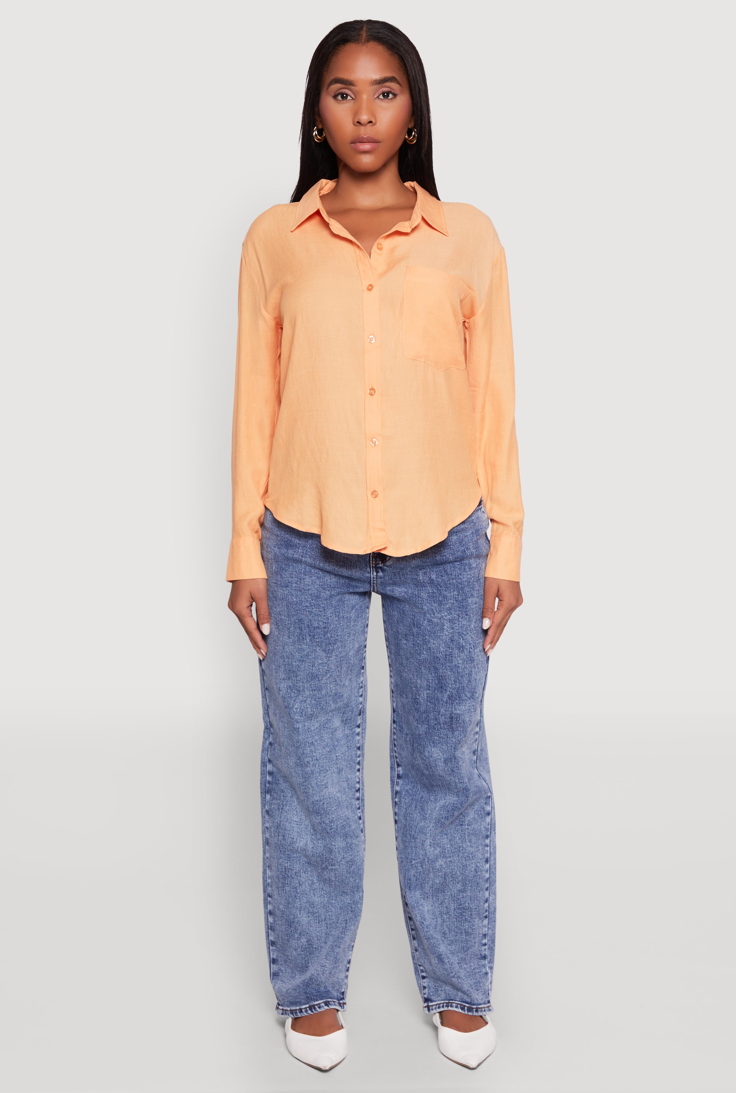 Chic Crepe Knit Button Front Shirt with Flap Pockets