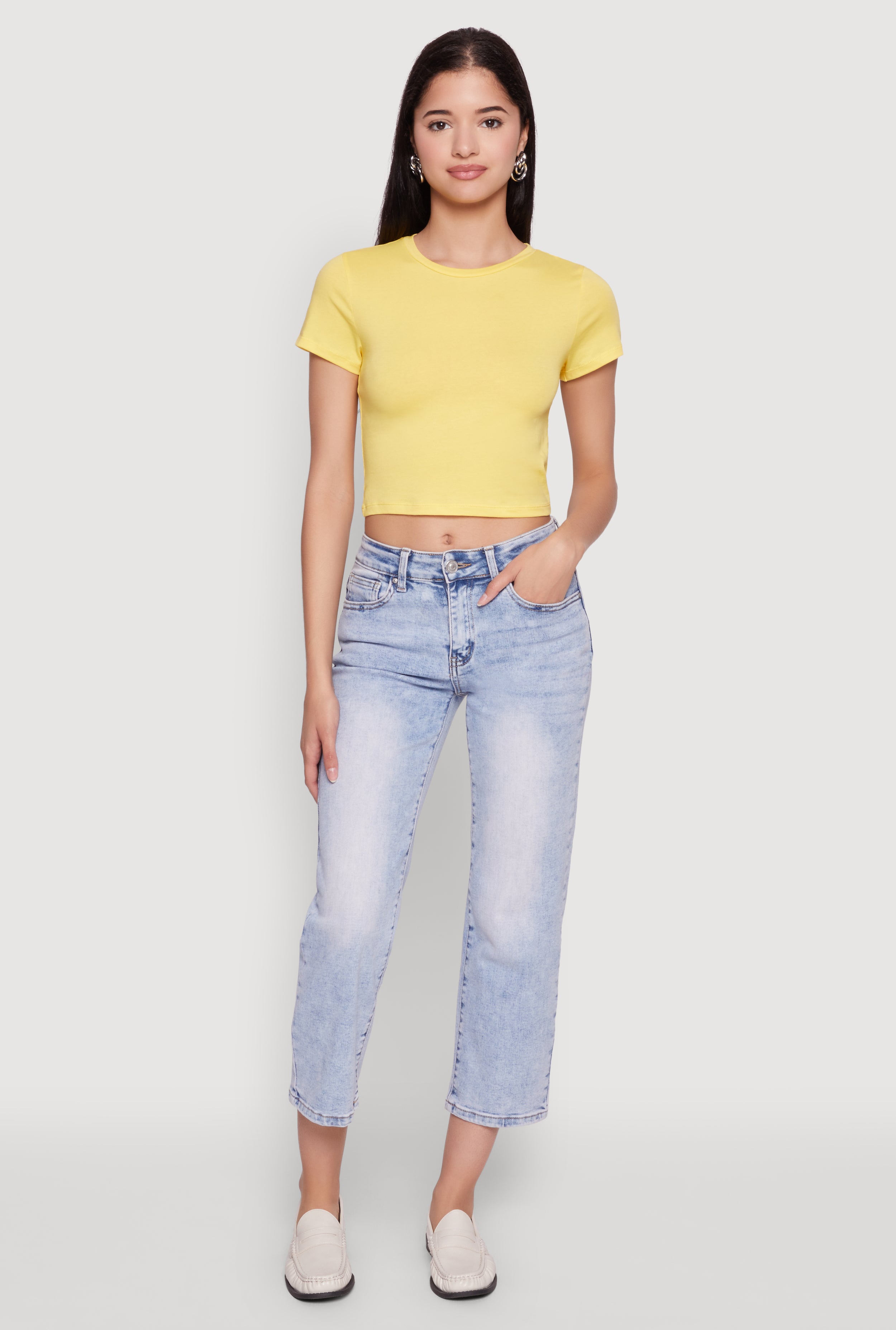 Cropped Short Sleeve Crew Neck Tee