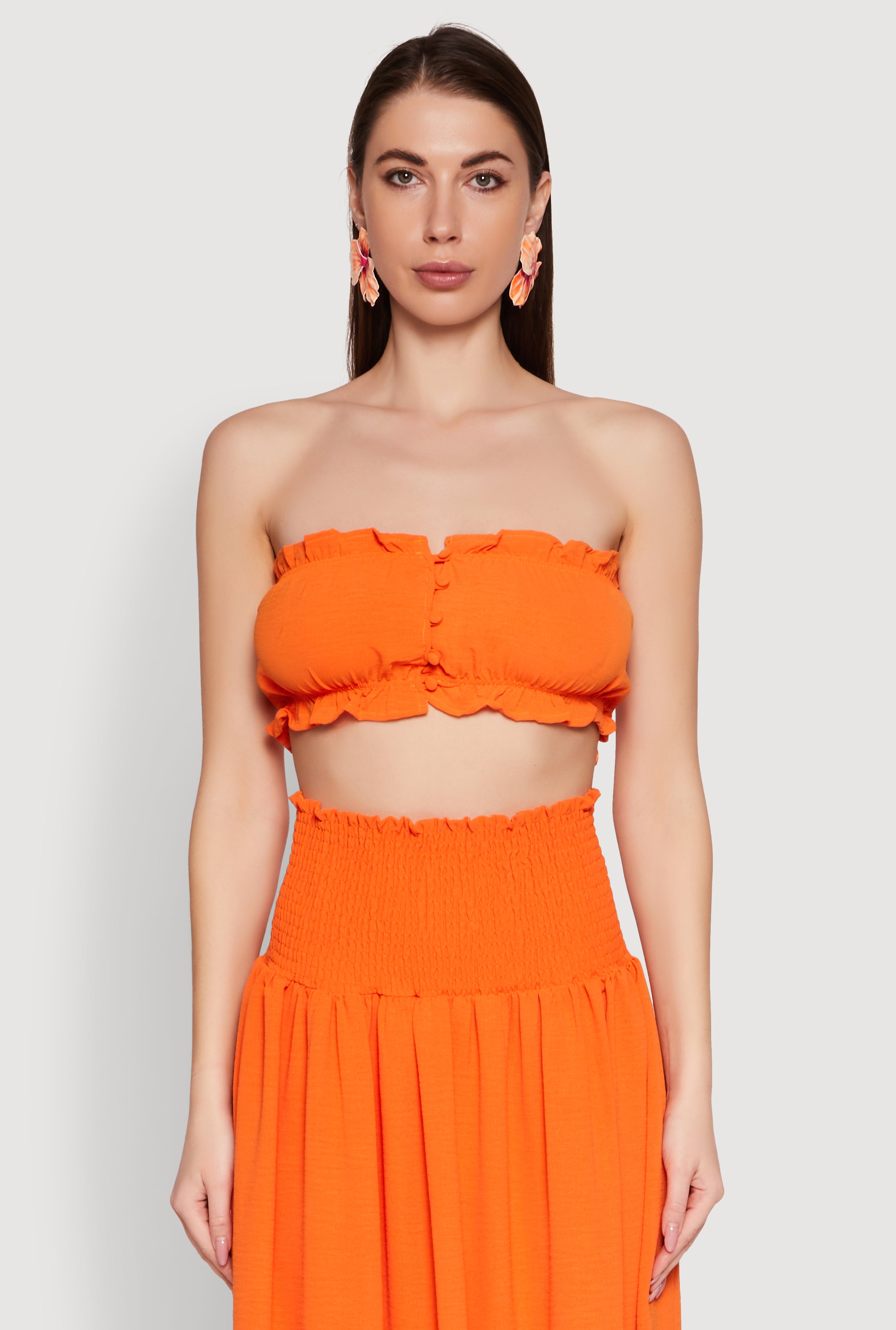 Airy Ruffled Button Front Tube Top